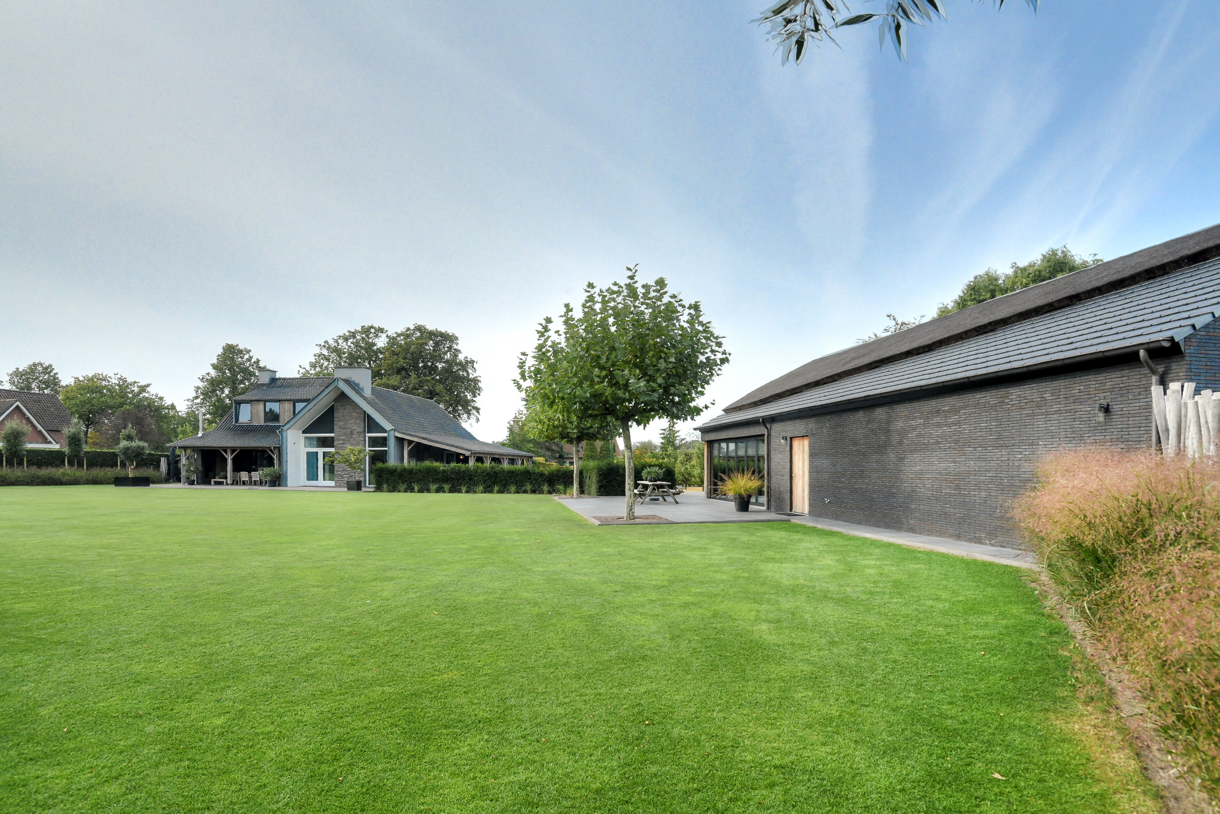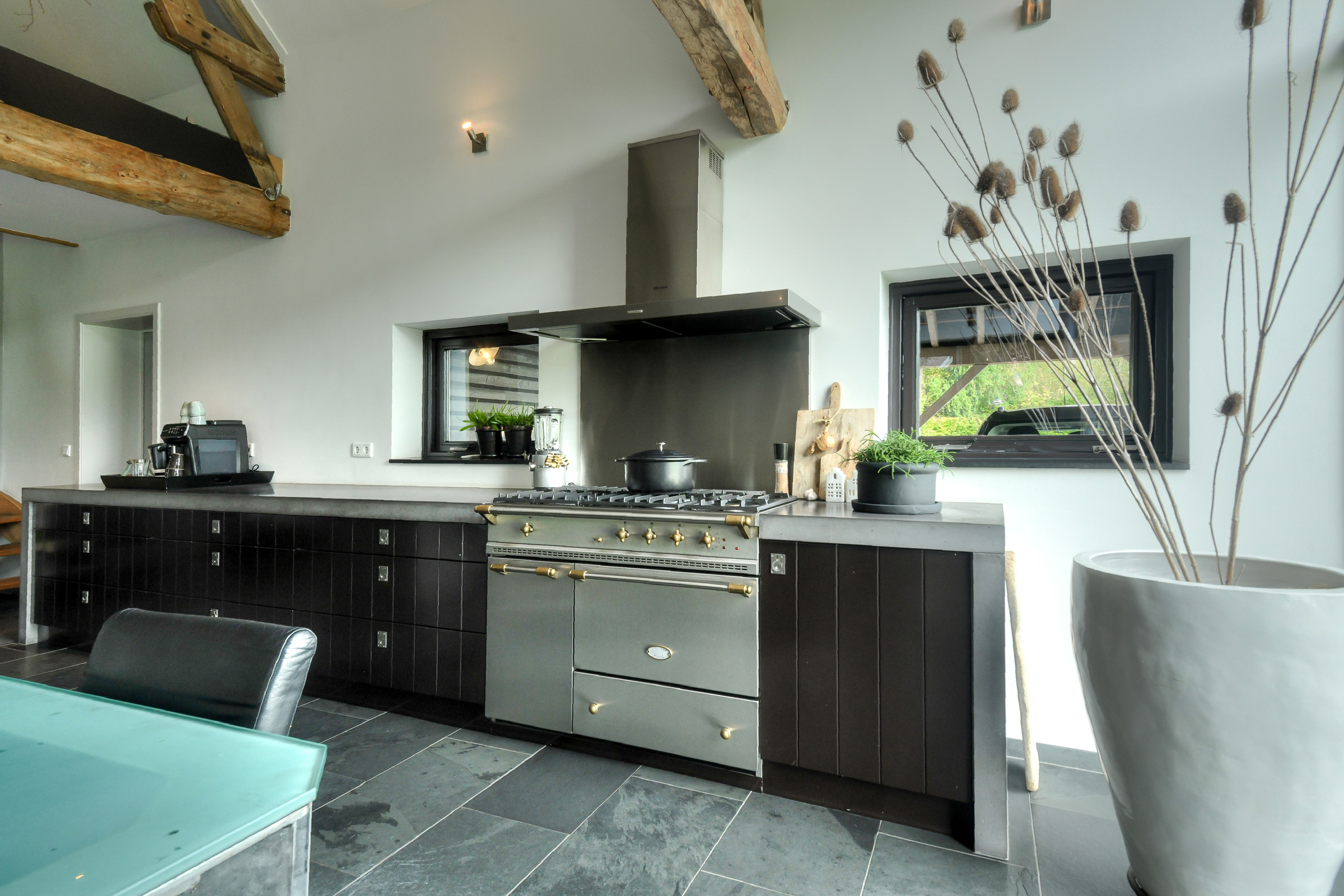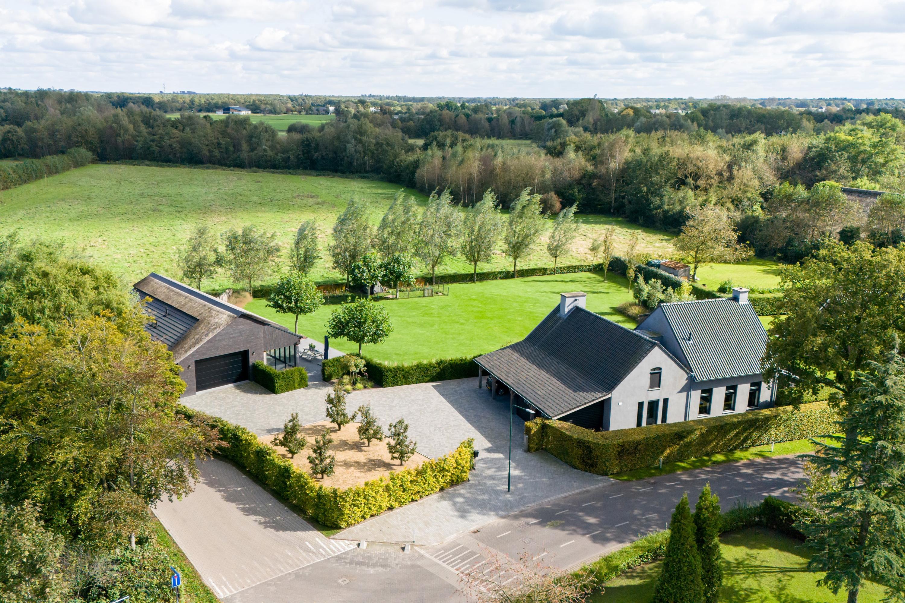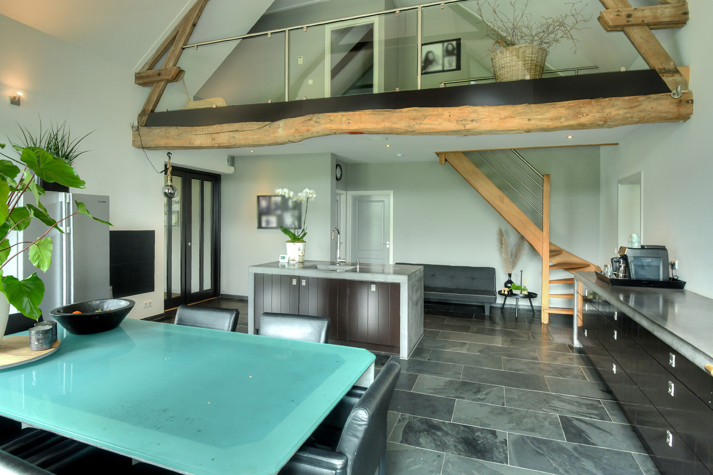 Esta villa independiente en Galder se alza sobre una extraordinaria finca de 25.110 m² lindando con la reserva natural Markdal. Rodeada de vegetación intacta y prados, la propiedad garantiza total privacidad en un entorno natural poco común al sur de Breda. La vivienda principal se despliega sobre 224 m², ofreciendo tres dormitorios completos y una sucesión fluida de espacios de estar. Los suelos de roble aportan calidez al salón con forma de L, donde chimeneas modernas y puertas francesas conducen a una veranda con amplias vistas al paisaje. La cocina-comedor se convierte en el corazón del hogar, realzada por una isla de encimera de hormigón, una cocina Lacanche a gas y puertas dobles al jardín que se abren a céspedes cuidados y a la reserva natural más allá.