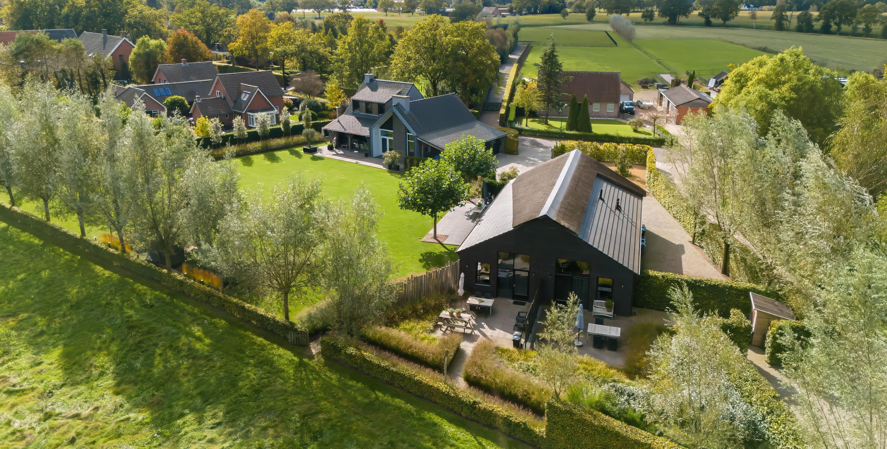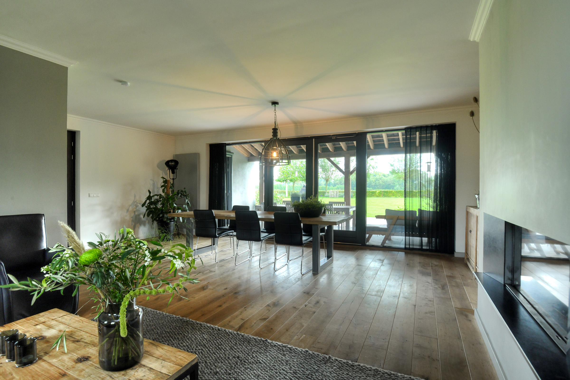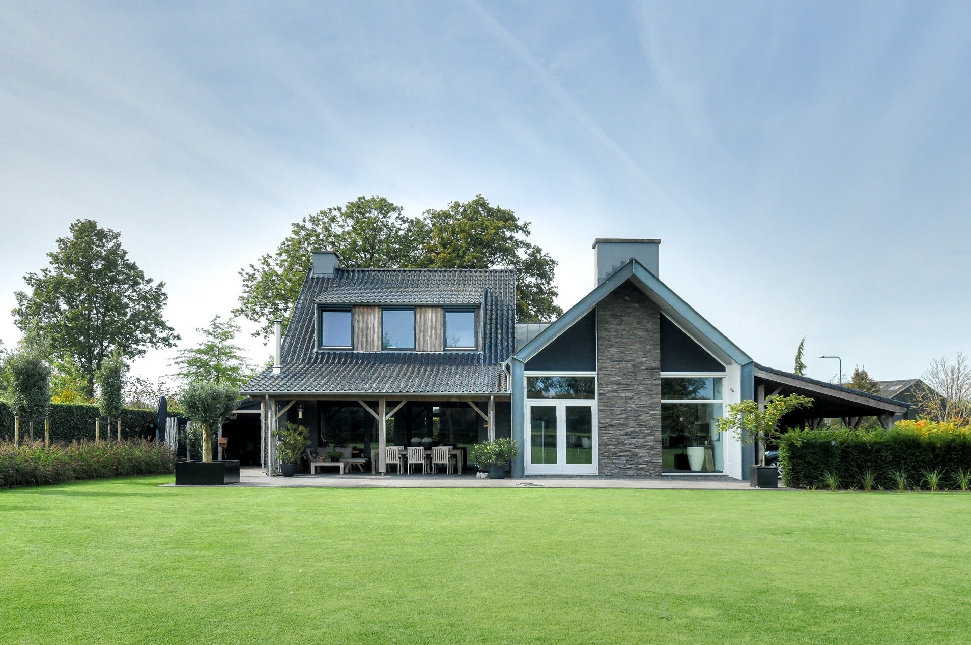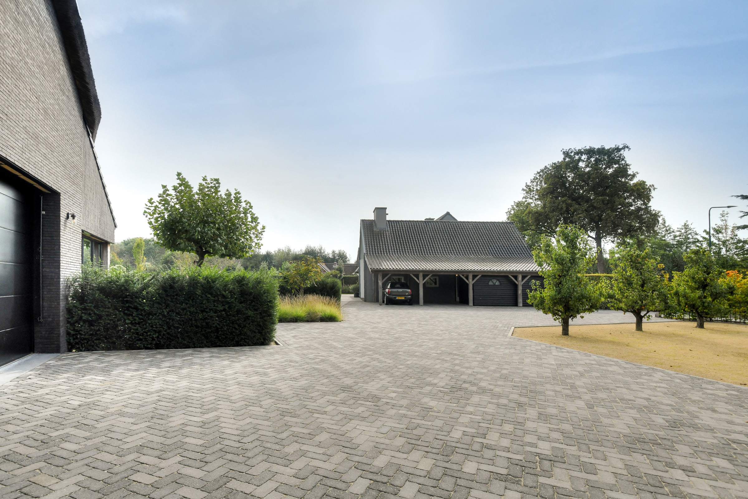 Esta villa independiente en Galder se alza sobre una extraordinaria finca de 25.110 m² lindando con la reserva natural Markdal. Rodeada de vegetación intacta y prados, la propiedad garantiza total privacidad en un entorno natural poco común al sur de Breda. La vivienda principal se despliega sobre 224 m², ofreciendo tres dormitorios completos y una sucesión fluida de espacios de estar. Los suelos de roble aportan calidez al salón con forma de L, donde chimeneas modernas y puertas francesas conducen a una veranda con amplias vistas al paisaje. La cocina-comedor se convierte en el corazón del hogar, realzada por una isla de encimera de hormigón, una cocina Lacanche a gas y puertas dobles al jardín que se abren a céspedes cuidados y a la reserva natural más allá.