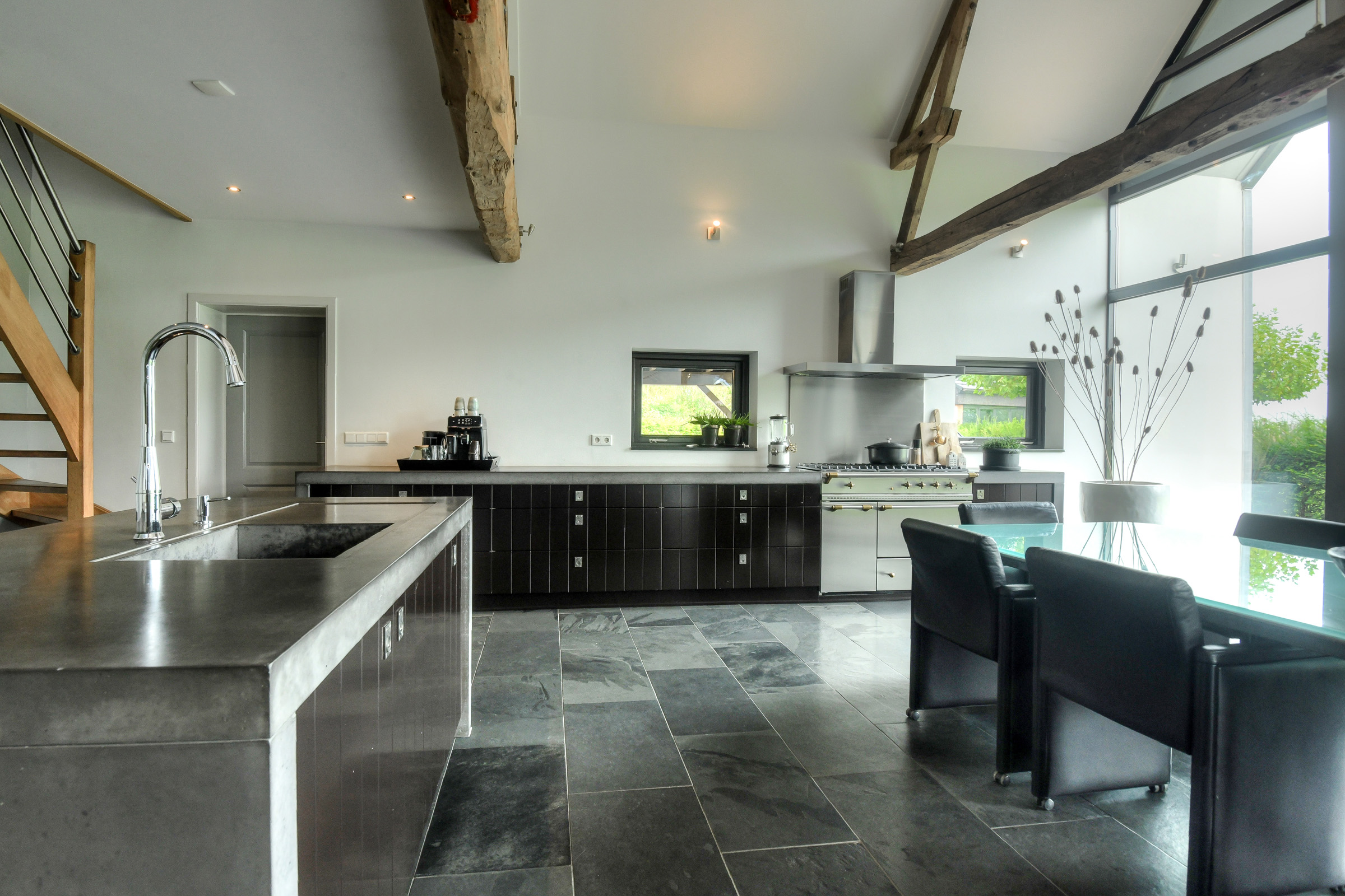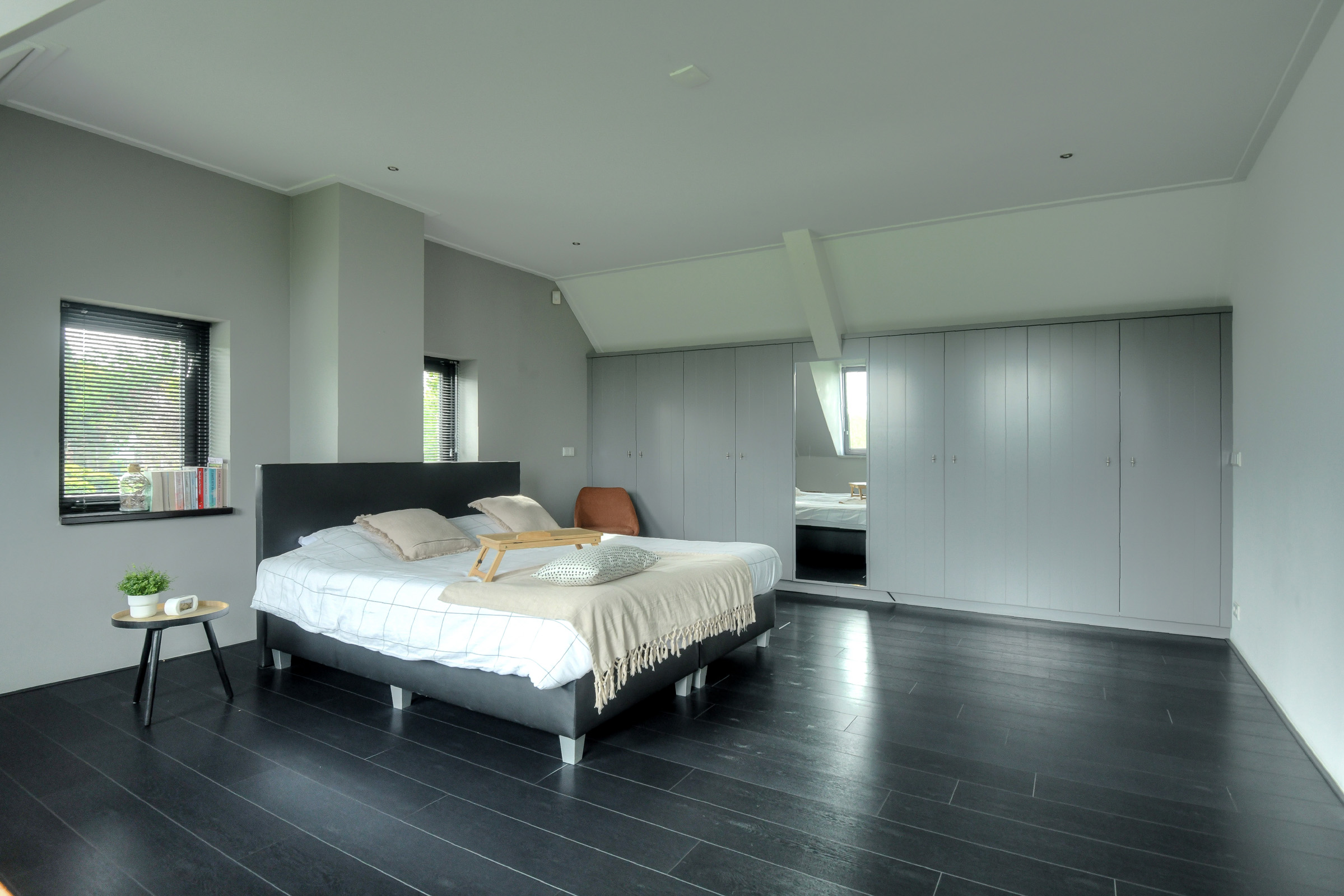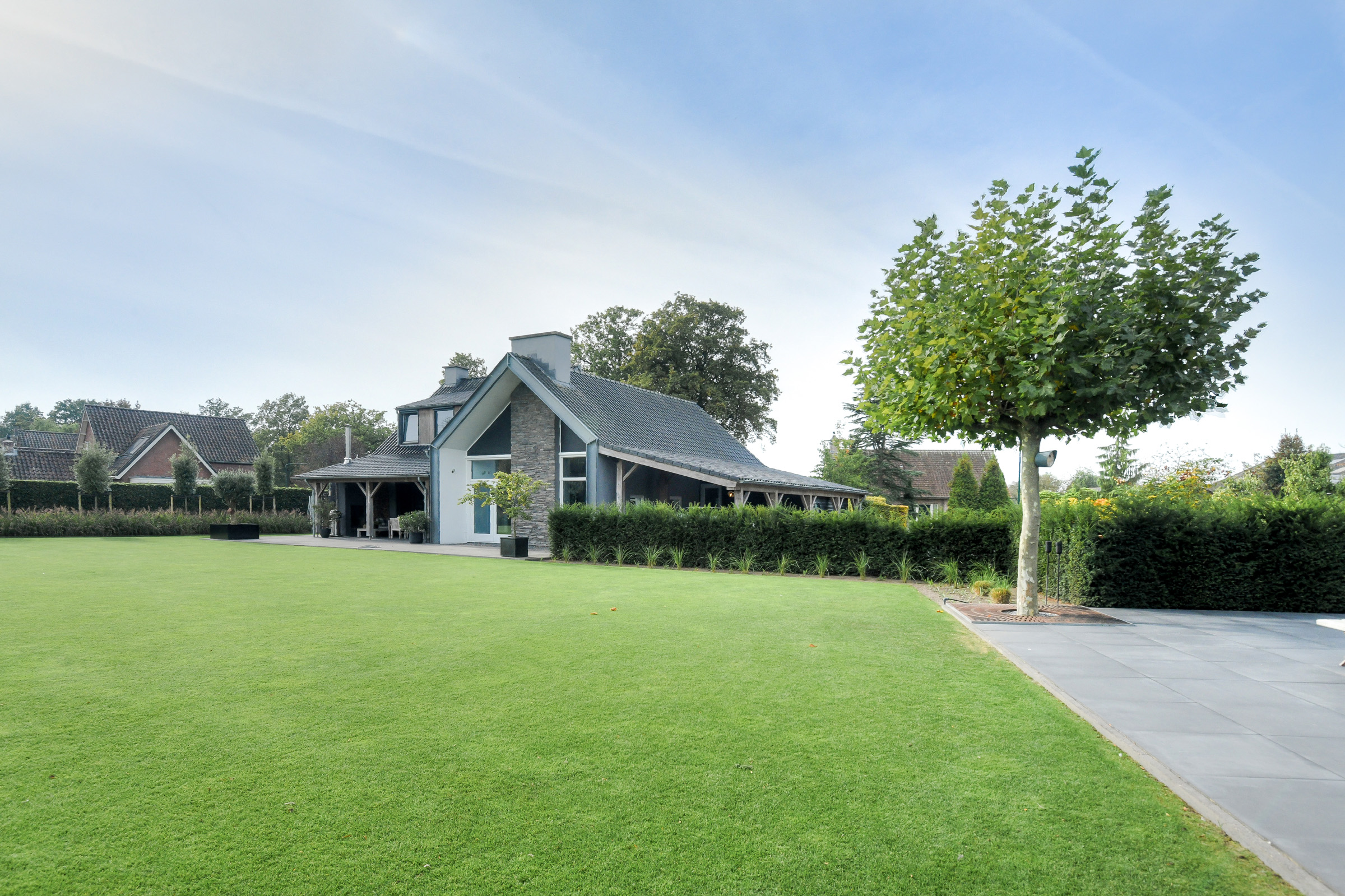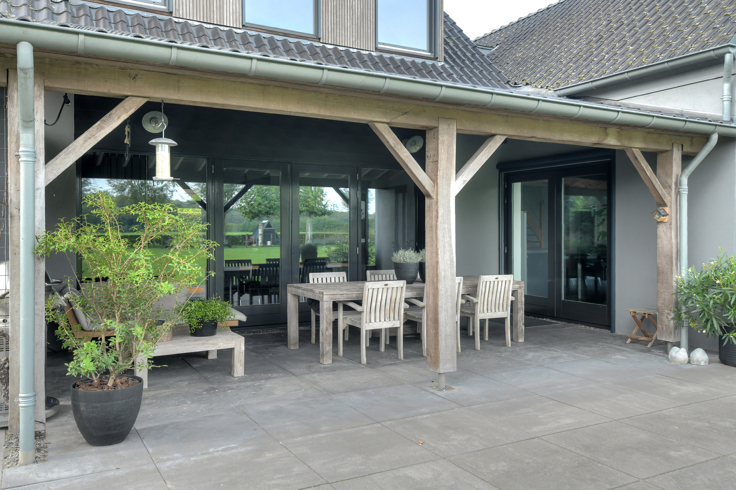 Esta villa independiente en Galder se alza sobre una extraordinaria finca de 25.110 m² lindando con la reserva natural Markdal. Rodeada de vegetación intacta y prados, la propiedad garantiza total privacidad en un entorno natural poco común al sur de Breda. La vivienda principal se despliega sobre 224 m², ofreciendo tres dormitorios completos y una sucesión fluida de espacios de estar. Los suelos de roble aportan calidez al salón con forma de L, donde chimeneas modernas y puertas francesas conducen a una veranda con amplias vistas al paisaje. La cocina-comedor se convierte en el corazón del hogar, realzada por una isla de encimera de hormigón, una cocina Lacanche a gas y puertas dobles al jardín que se abren a céspedes cuidados y a la reserva natural más allá.