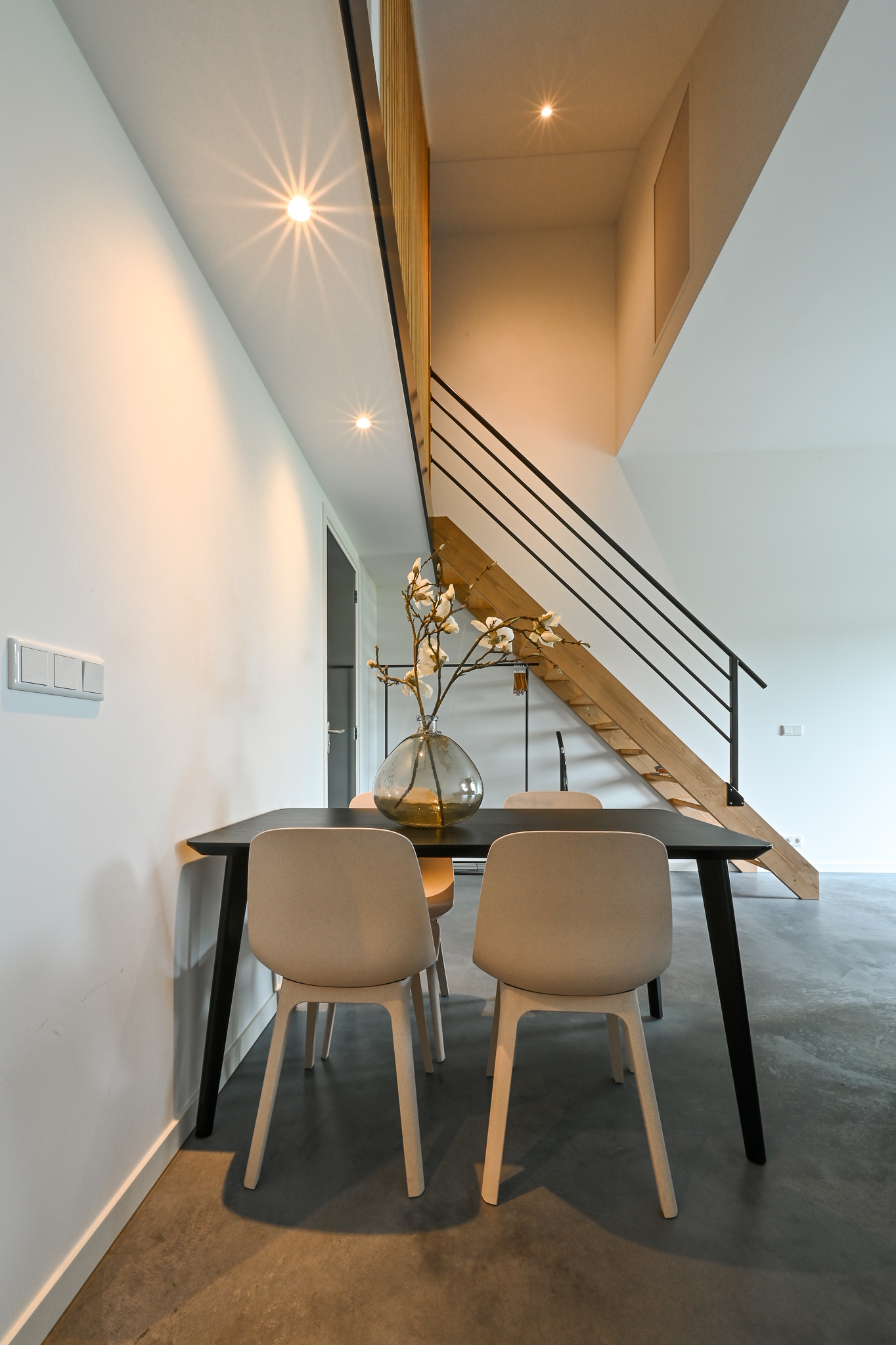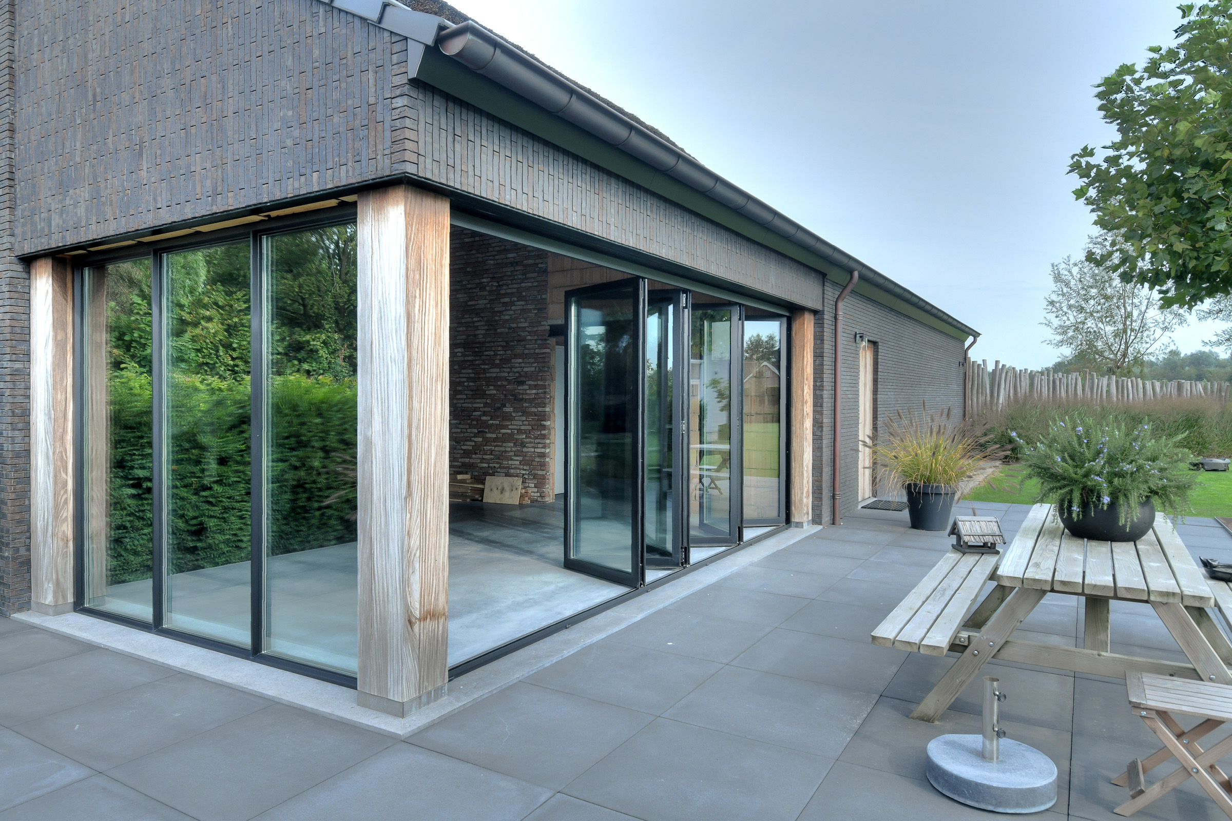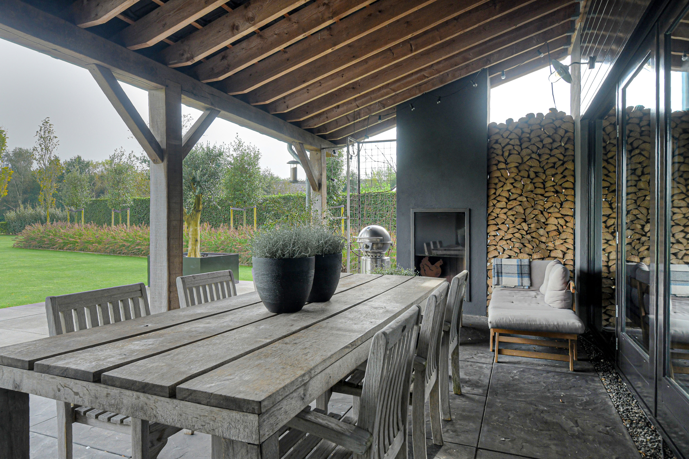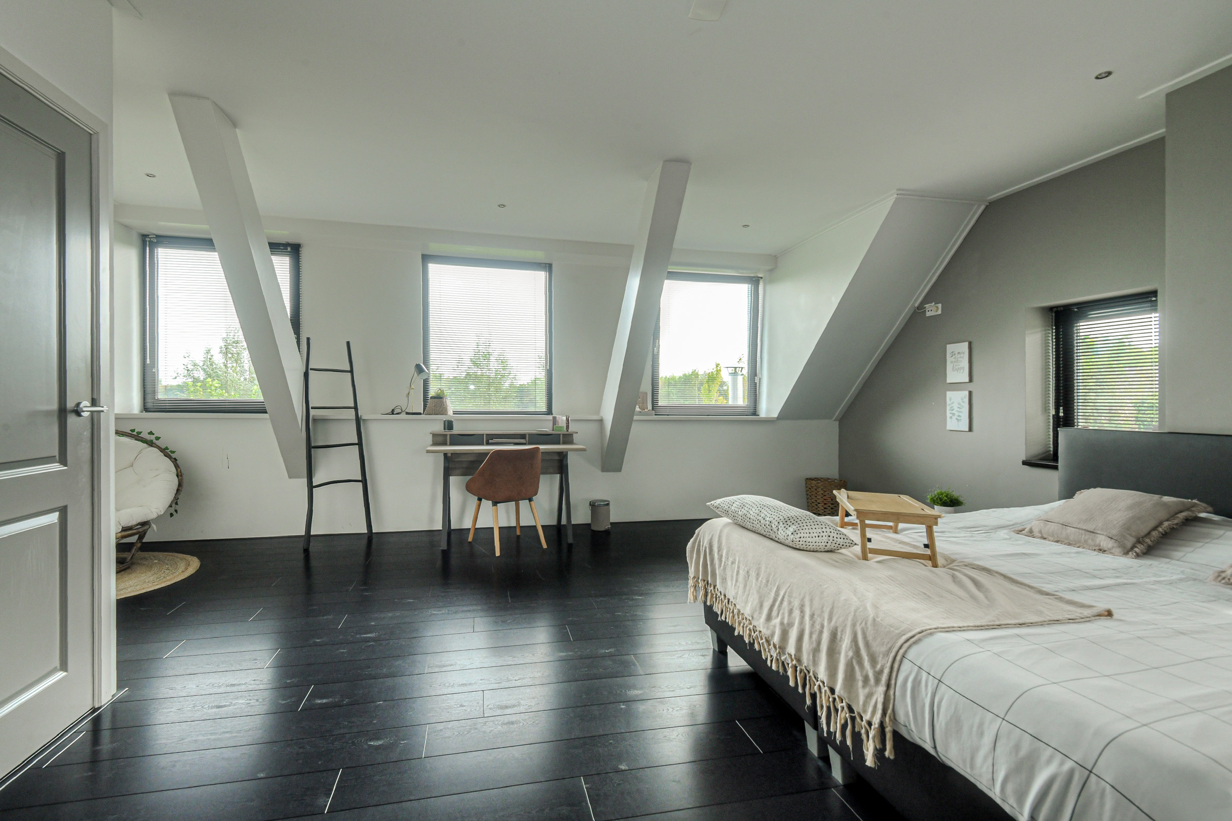 Esta villa independiente en Galder se alza sobre una extraordinaria finca de 25.110 m² lindando con la reserva natural Markdal. Rodeada de vegetación intacta y prados, la propiedad garantiza total privacidad en un entorno natural poco común al sur de Breda. La vivienda principal se despliega sobre 224 m², ofreciendo tres dormitorios completos y una sucesión fluida de espacios de estar. Los suelos de roble aportan calidez al salón con forma de L, donde chimeneas modernas y puertas francesas conducen a una veranda con amplias vistas al paisaje. La cocina-comedor se convierte en el corazón del hogar, realzada por una isla de encimera de hormigón, una cocina Lacanche a gas y puertas dobles al jardín que se abren a céspedes cuidados y a la reserva natural más allá.