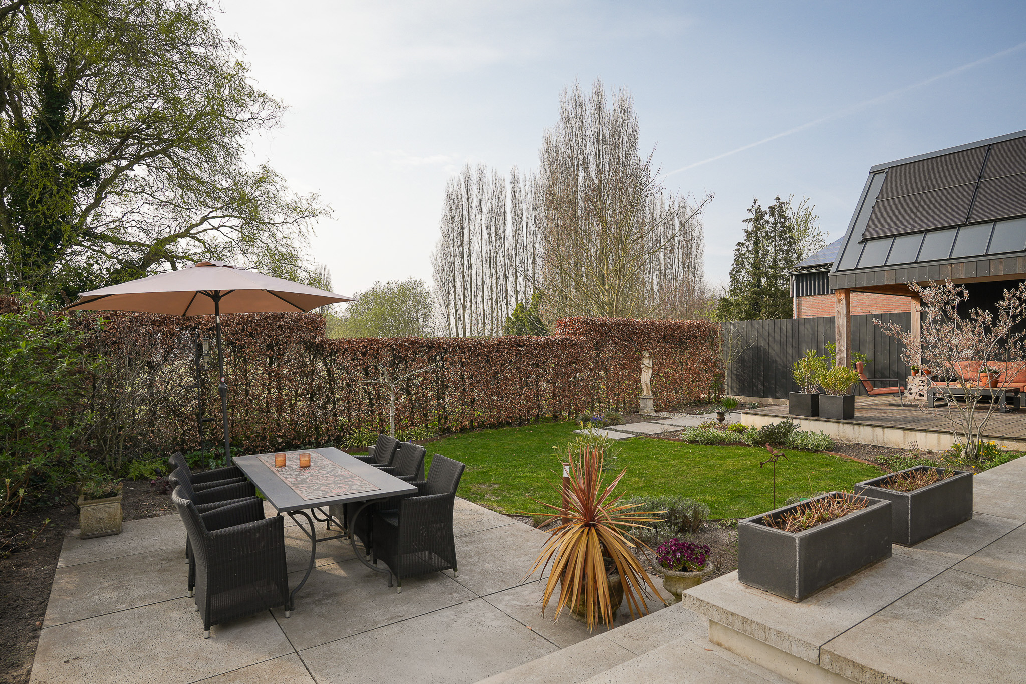Un anexo aislado con suelo radiante colinda con el jardín; actualmente se utiliza como garaje pero ofrece posibilidades como estudio o espacio de trabajo. La ubicación permite fácil acceso a actividades al aire libre, servicios del pueblo y vías principales, ofreciendo el espacio, confort y accesibilidad que definen esta casa con carácter en Hurwenen.