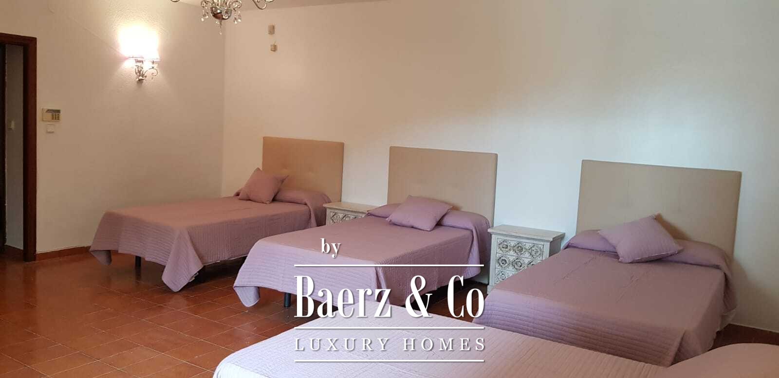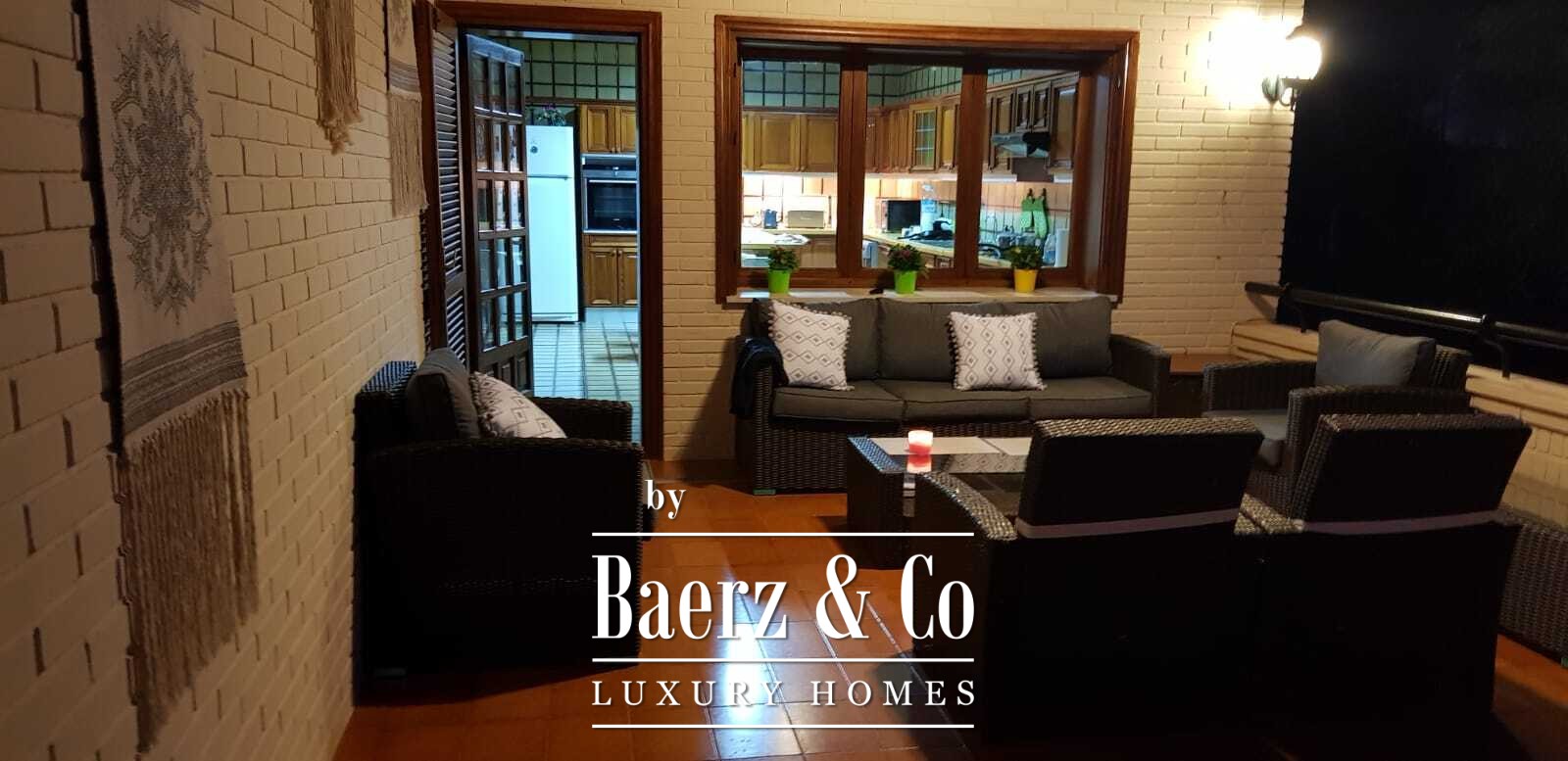 El interior se organiza en torno a cuatro amplios dormitorios dobles y cinco baños completos, además de un aseo adicional para invitados. El principal espacio de estar, de 100 m², conecta de manera fluida con la amplia cocina y el comedor, generando un ambiente natural tanto para reuniones como para momentos de tranquilidad. La villa se abre a jardines maduros y una piscina con área infantil, junto con terrazas abiertas y cubiertas para disfrutar en cualquier época del año.