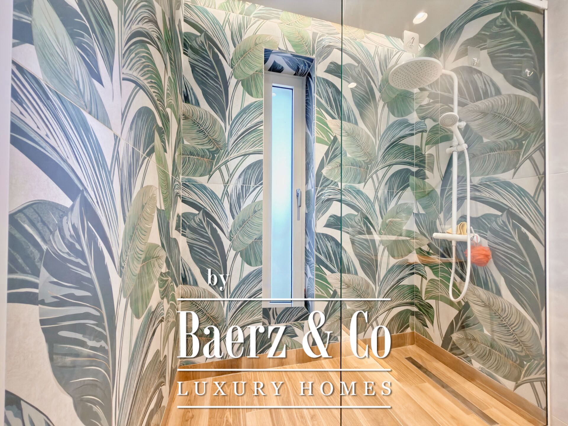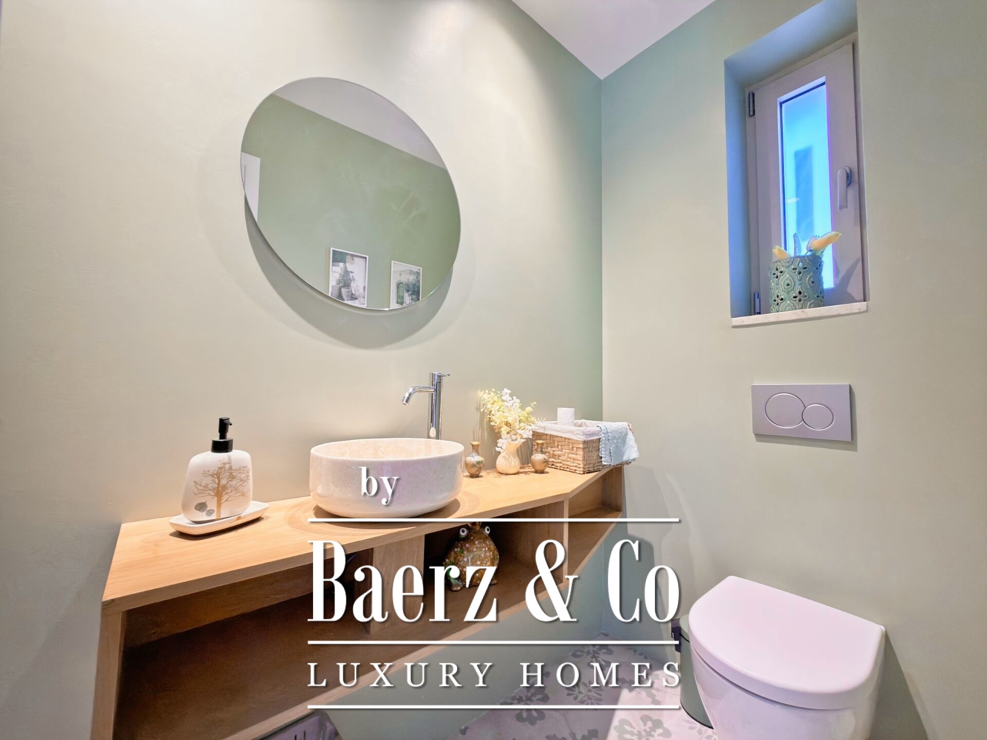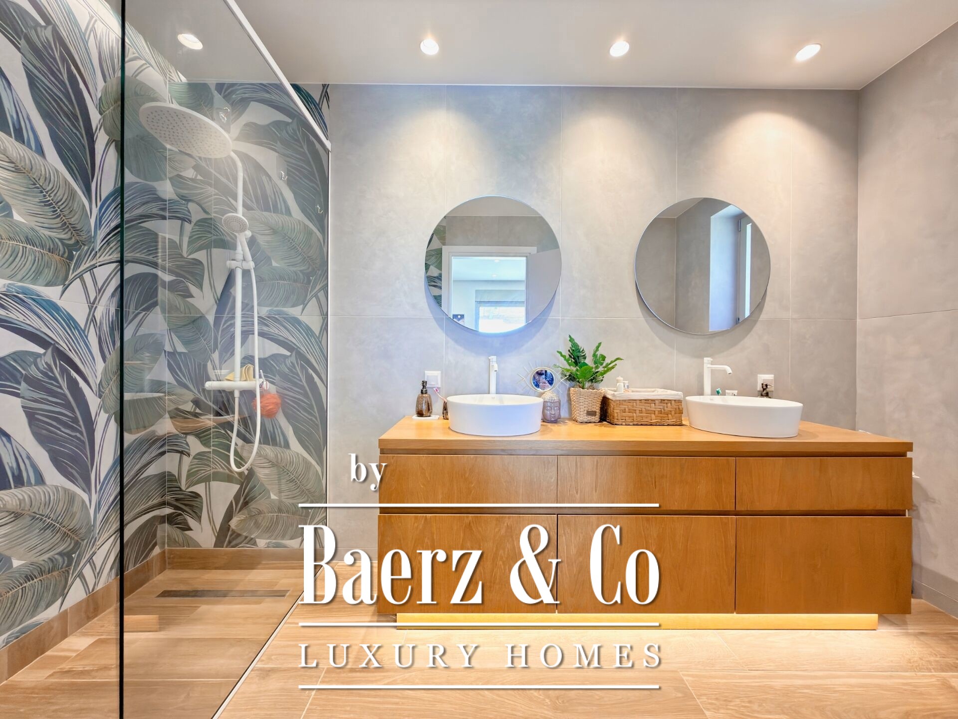 En el exterior, la elegancia discreta del patio se ve realzada por una piscina de 50 m² y una amplia zona de barbacoa bajo pérgolas de roble. Las vistas ininterrumpidas a la montaña, el mar y la naturaleza logran disolver los límites entre interior y exterior. Un sótano de 47 m² alberga parking y almacenamiento, mientras que el sistema fotovoltaico contribuye a la autosuficiencia. Esta villa ofrece la serenidad de una finca campestre, junto con el confort de un hogar diseñado con esmero para todas las estaciones.
