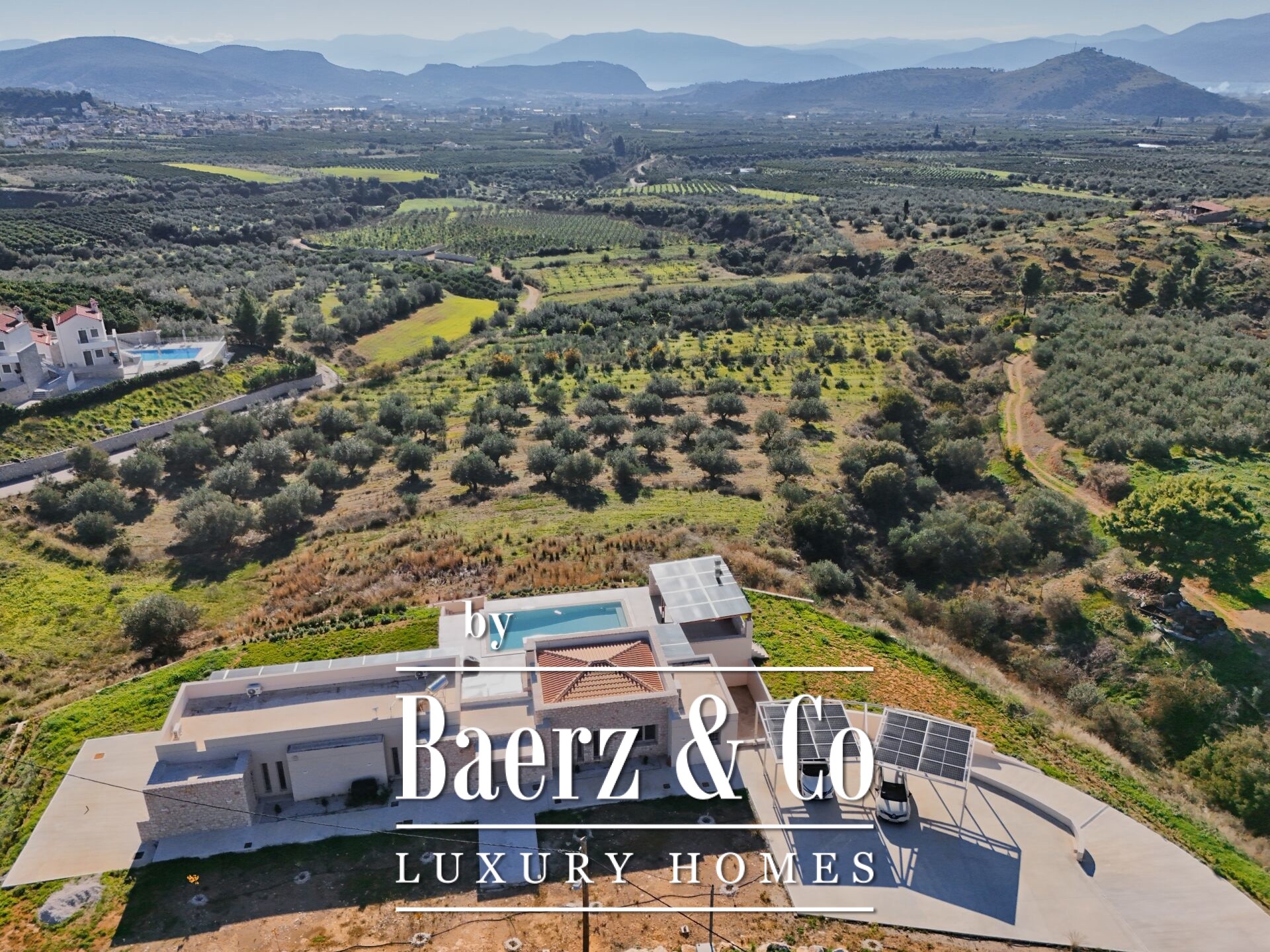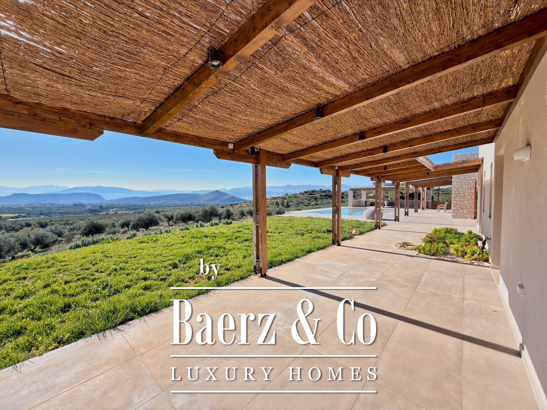 La villa de lujo Nafplio representa una oportunidad excepcional para residir en una vivienda contemporánea en uno de los enclaves más tranquilos y visualmente cautivadores de Grecia. Esta casa de 232 m² en planta baja se asienta con elegancia sobre una parcela de 5.255 m², donde sus vistas panorámicas sobre Nafplio y orientación oeste bañan cada espacio con luz natural, creando un ambiente abierto en armonía con el entorno.