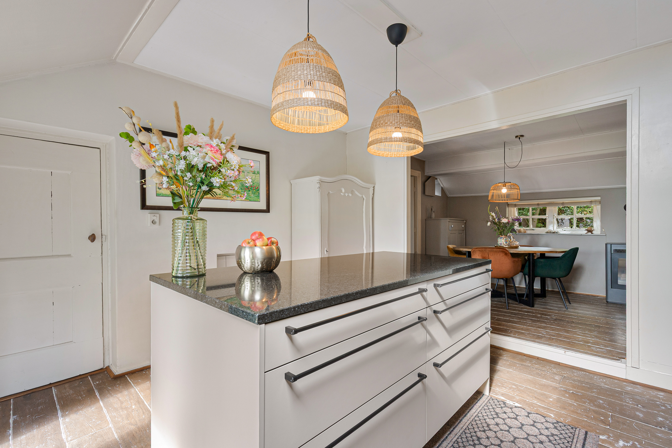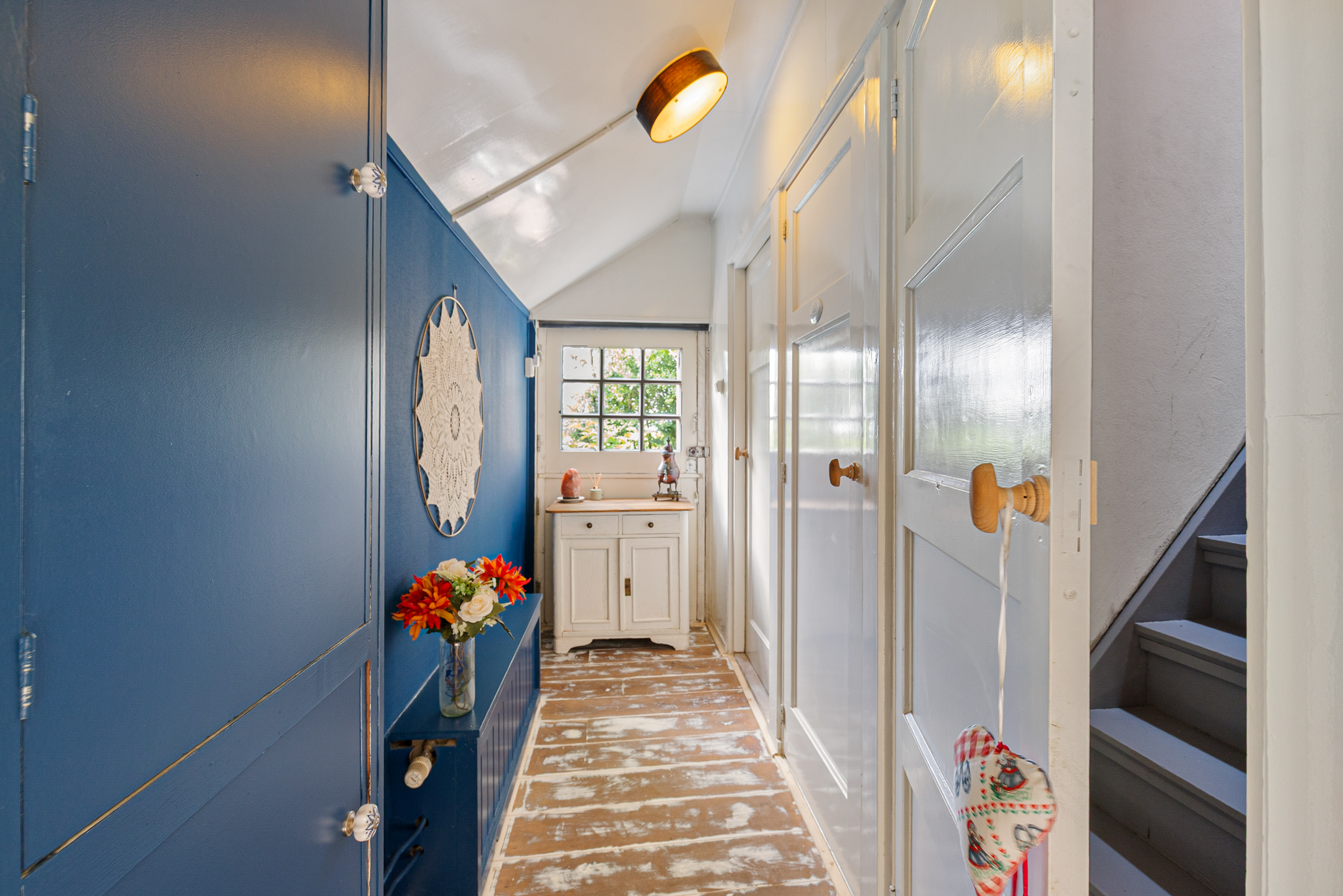 En la planta baja, le da la bienvenida un elegante vestíbulo, una cocina moderna instalada en 2025 y puertas francesas que se abren a una terraza orientada al sur bañada de luz de jardín. El comedor conectado fluye hacia un salón con ventanas de seis paneles, enmarcando las vistas de un árbol maduro en el jardín delantero. La suite principal en planta baja, dotada de ventanas tipo establo y su propia zona de estar, crea un espacio íntimo y apacible, con suelos de madera blanca presentes en toda la vivienda.