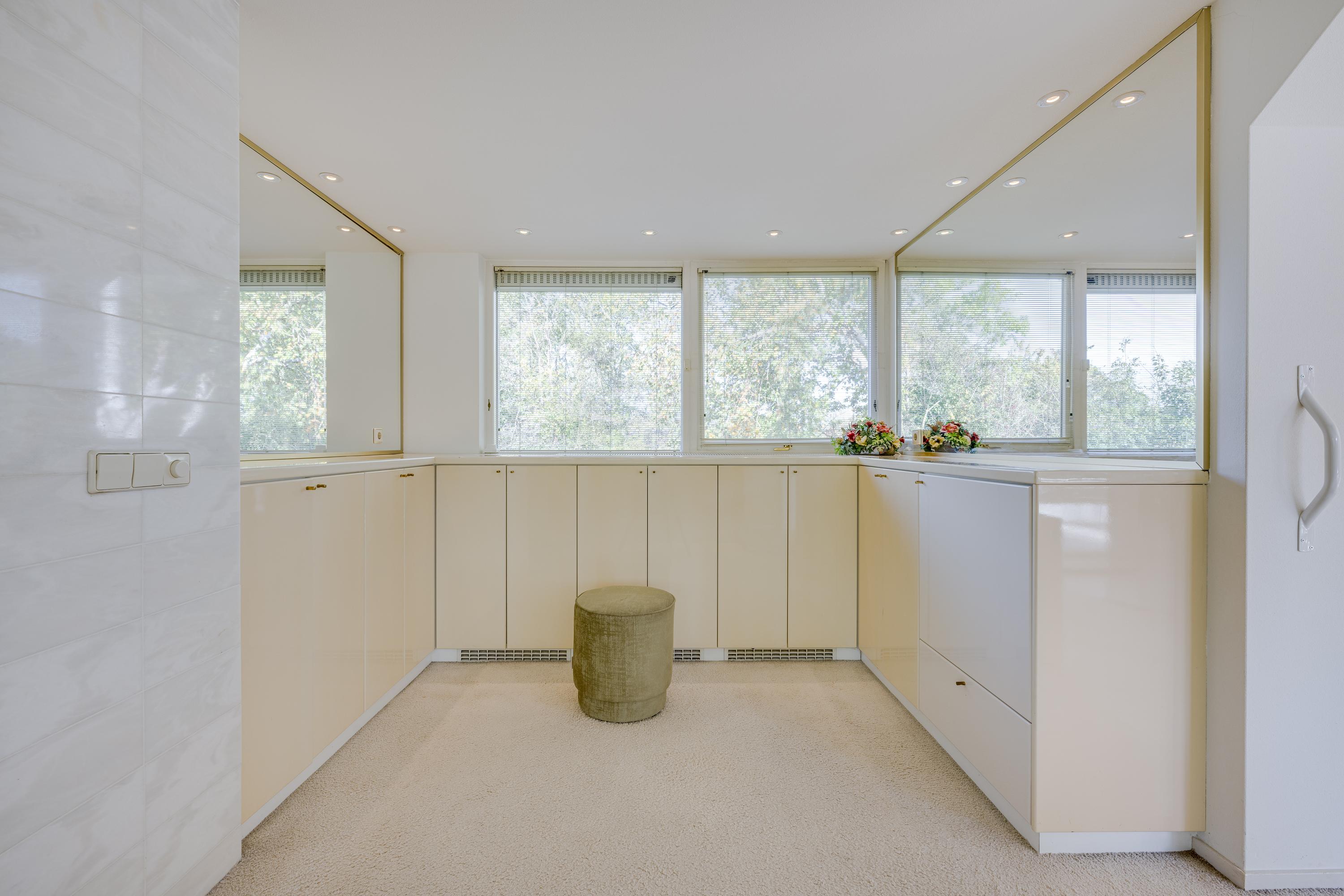 Villa Oegstgeest representa exclusividad en una amplia parcela de 1.580 m², rodeada de jardines y definida por la privacidad en el límite del pueblo. Inspirada en el bungalow americano, esta propiedad de 416 m² de superficie habitable es una composición cuidadosamente concebida de diseño moderno y construcción robusta. La villa se distingue por estar rodeada de calles, lo que genera una sensación de amplitud sin la presencia de vecinos inmediatos, y se sitúa en una ubicación ideal cerca de las áreas verdes del Castillo Poelgeest, los lagos y puertos de Warmond y opciones educativas como la International School Rijnlands Lyceum.