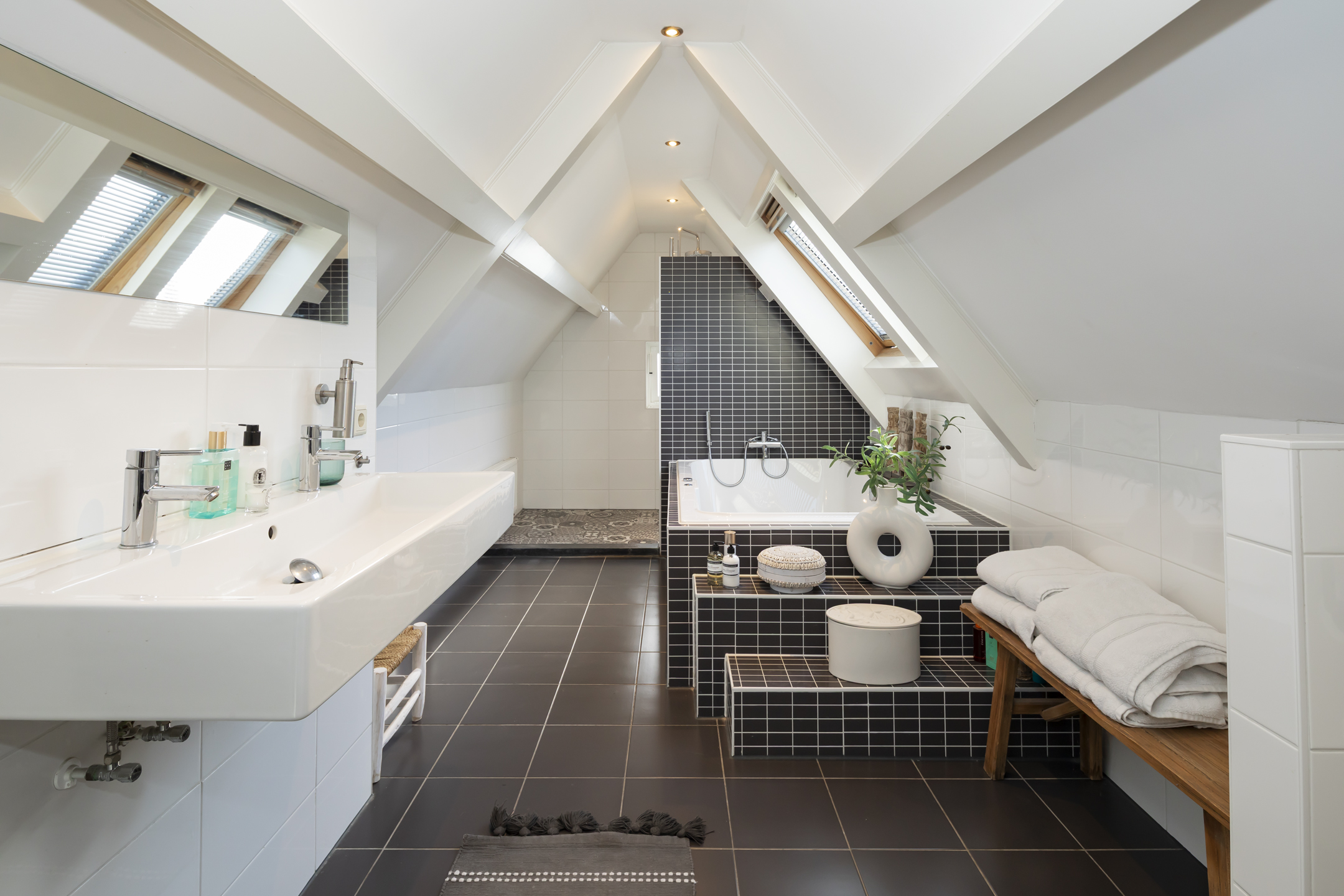 In totaal zijn er 4 goede slaapkamers en 2 badkamers. Er is verrassend veel bergruimte aanwezig dankzij de aanwezigheid van diverse inbouwkasten. Over bergruimte gesproken, dat brengt ons bij de bergzolder.