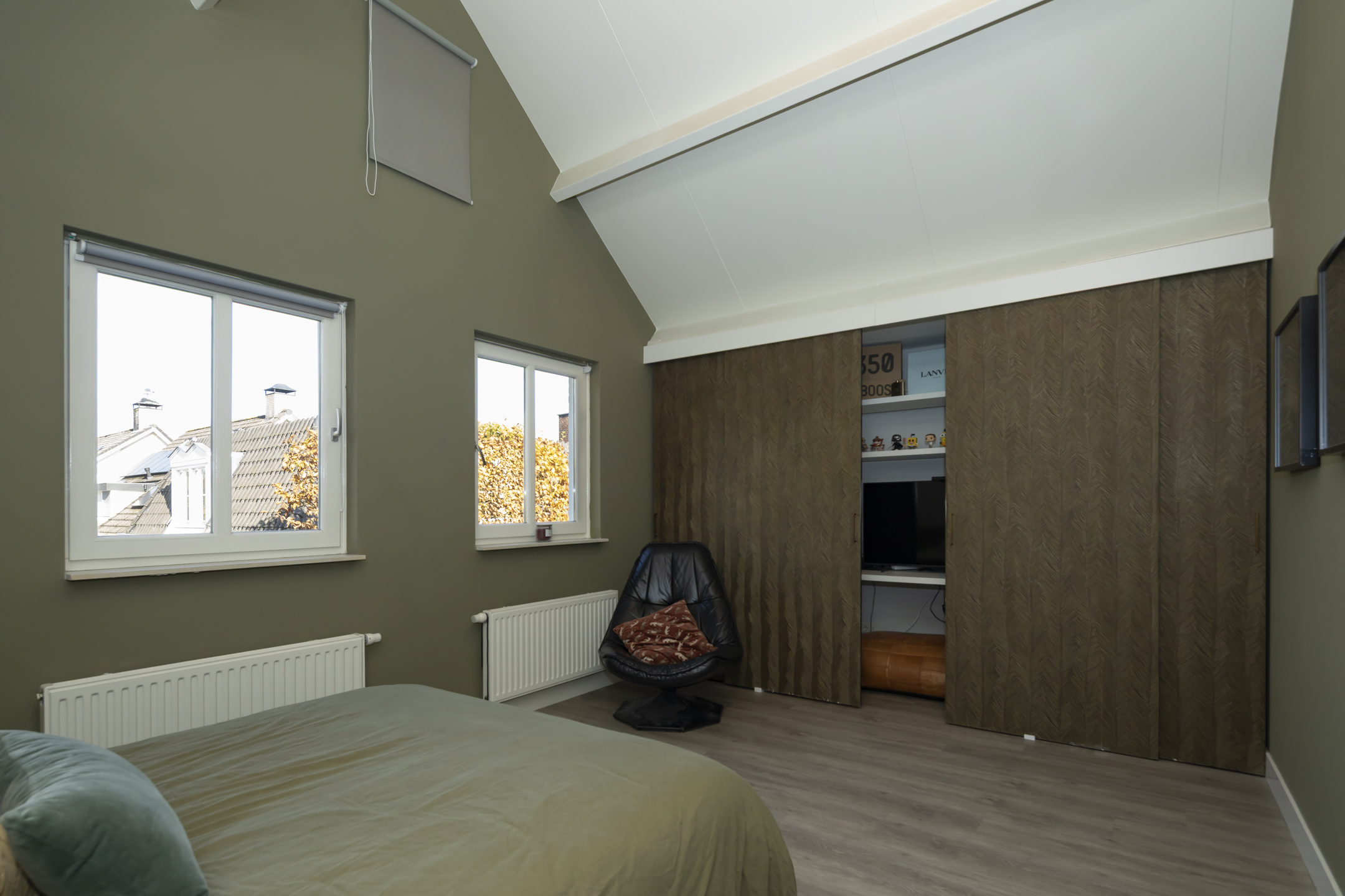 Deze fijne ruimte ligt aan de voorkant van de woning en biedt talloze gebruiksmogelijkheden. Wil je rustig werken? Dan is dit een fijn kantoor. Er is een goede lichtinval en de kamer heeft openslaande deuren naar de tuin. Anderzijds leent deze ruimte zich ook uitstekend als bijvoorbeeld een speelkamer voor de kids. Kortom, een multifunctionele ruimte.
