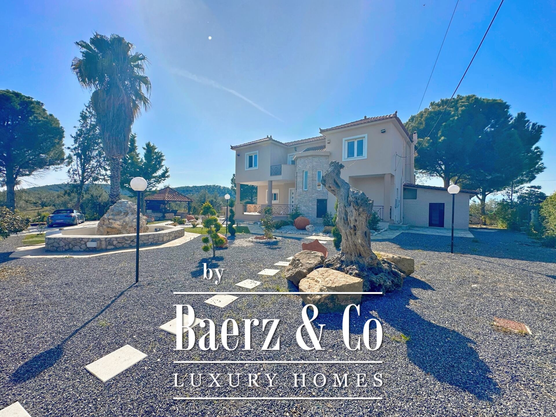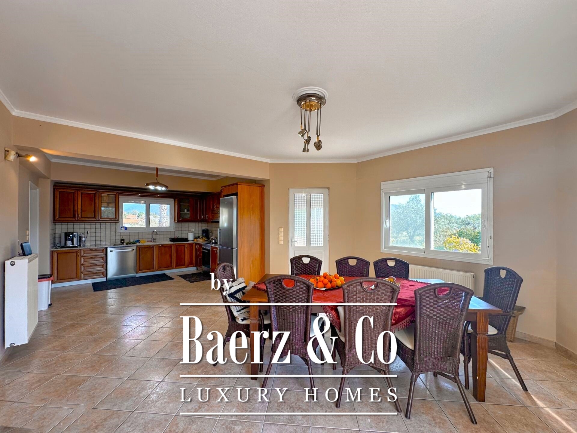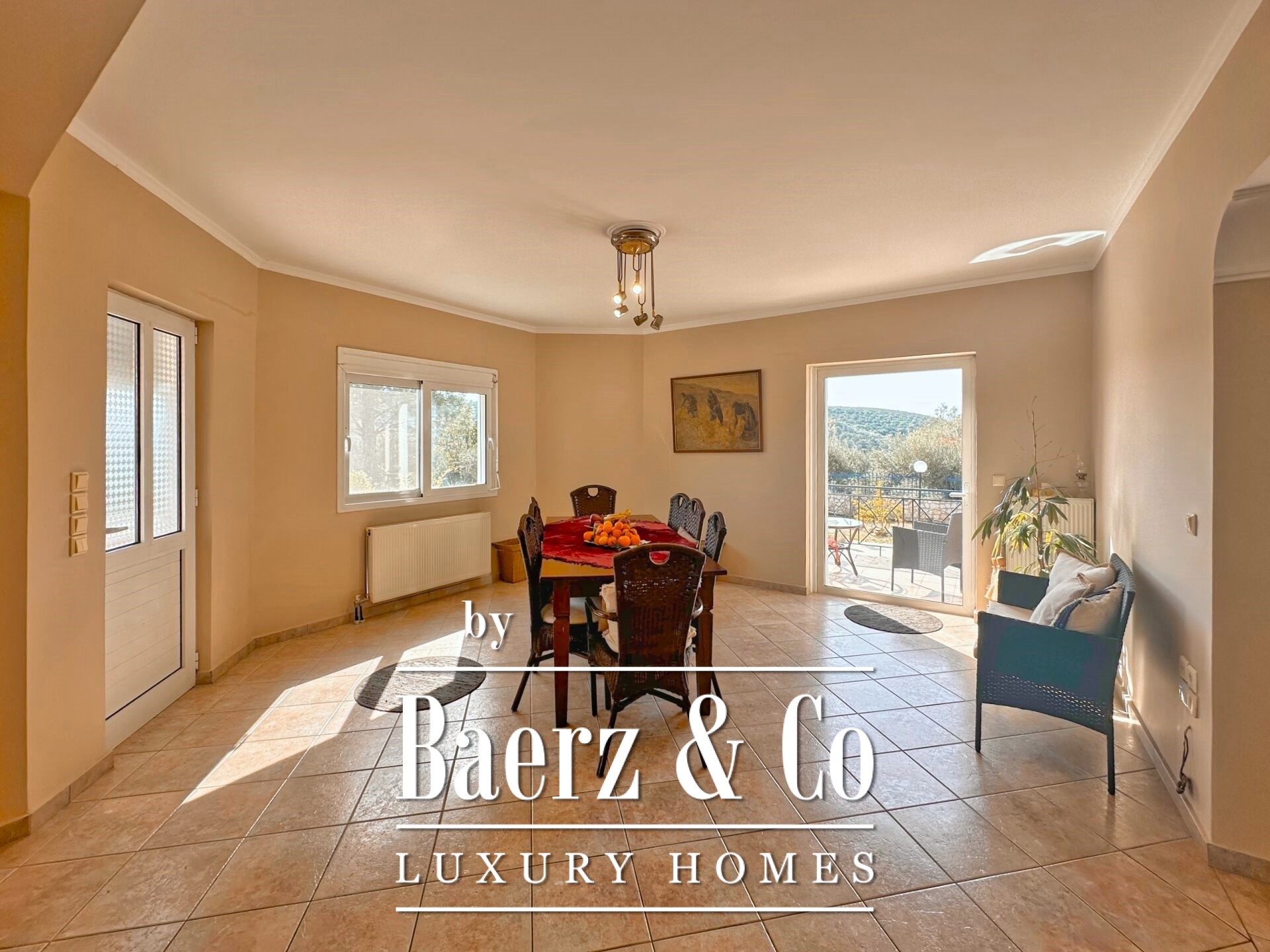 La casa independiente en Pyrgiotika Nafplio ofrece un equilibrio excepcional entre privacidad, amplitud y accesibilidad. Ubicada en una parcela de 3.643 m² y con una superficie habitable de 240 m², esta residencia construida en 2003 se integra armoniosamente en el entorno natural, ofreciendo vistas panorámicas al paisaje y hacia Nafplio.