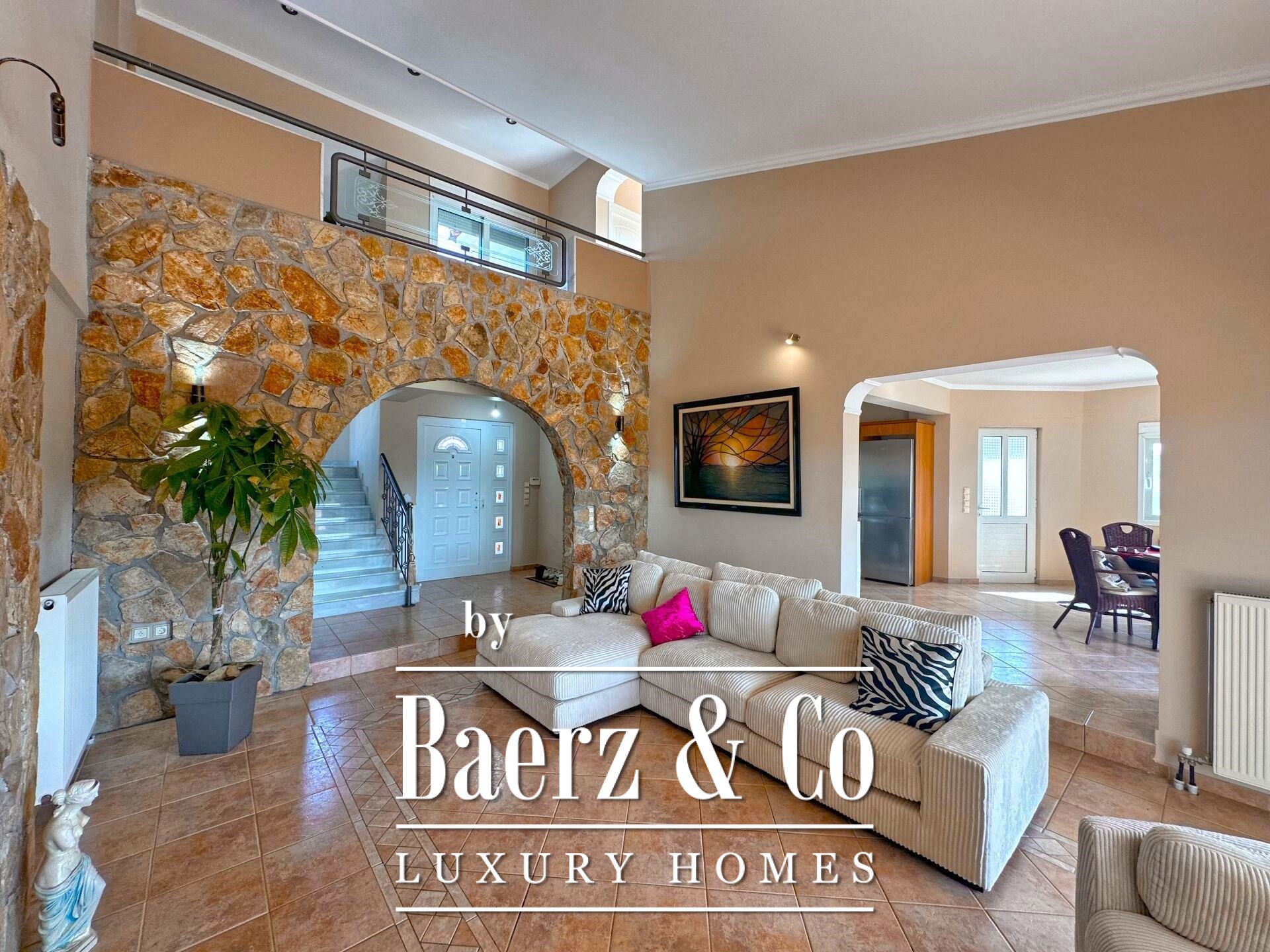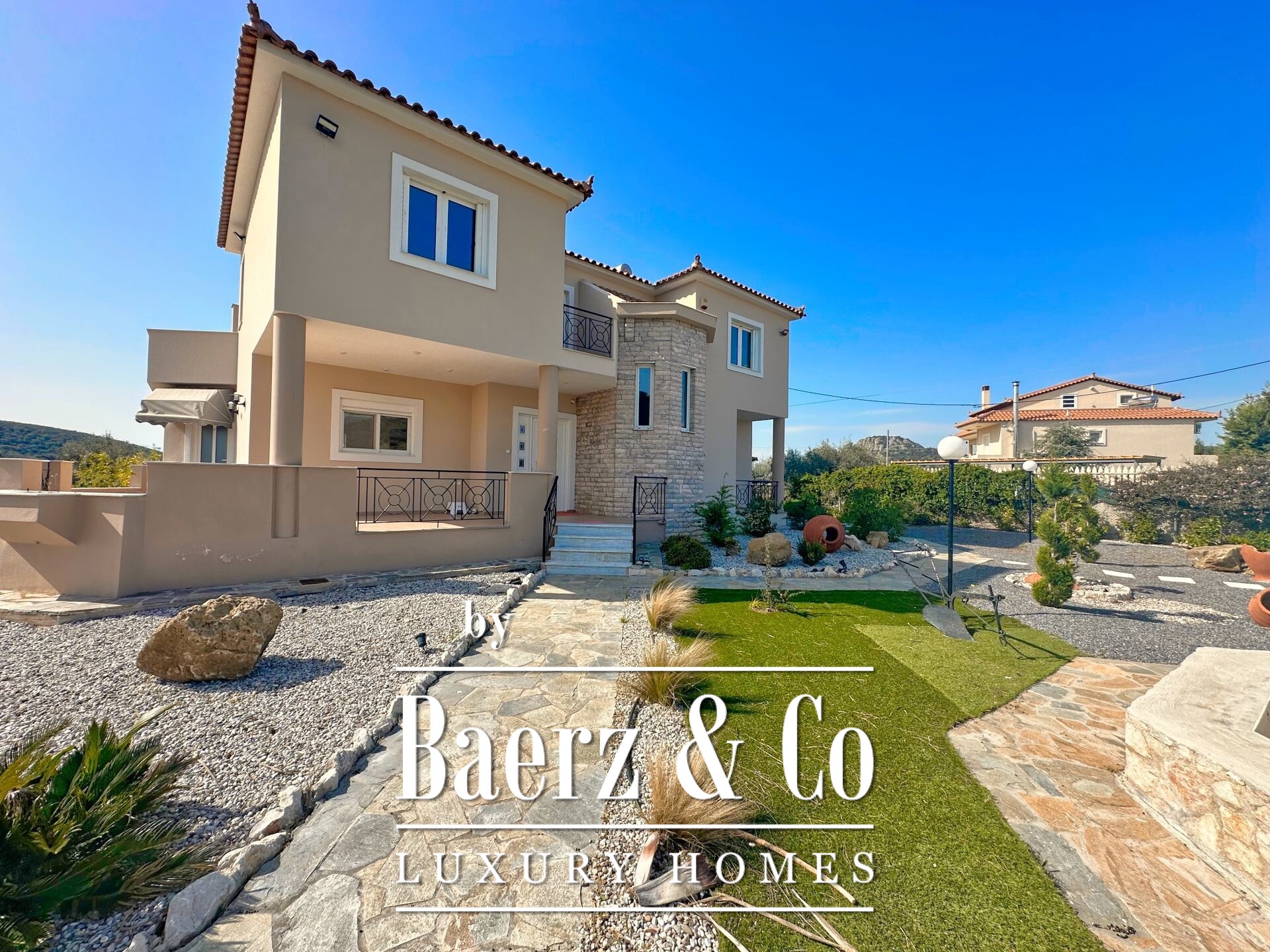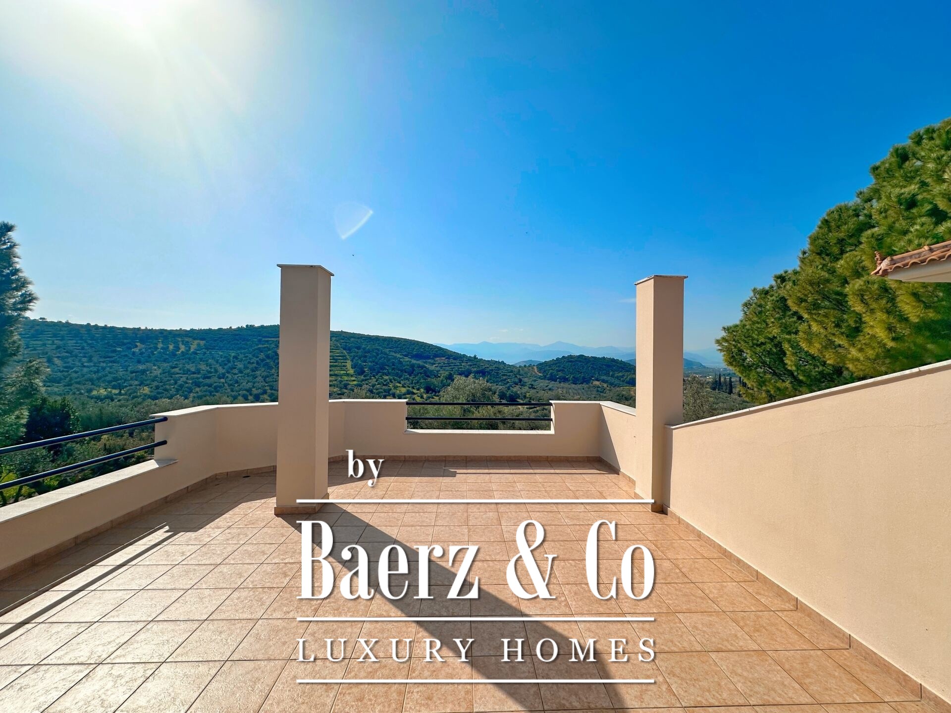 La casa independiente en Pyrgiotika Nafplio ofrece un equilibrio excepcional entre privacidad, amplitud y accesibilidad. Ubicada en una parcela de 3.643 m² y con una superficie habitable de 240 m², esta residencia construida en 2003 se integra armoniosamente en el entorno natural, ofreciendo vistas panorámicas al paisaje y hacia Nafplio.