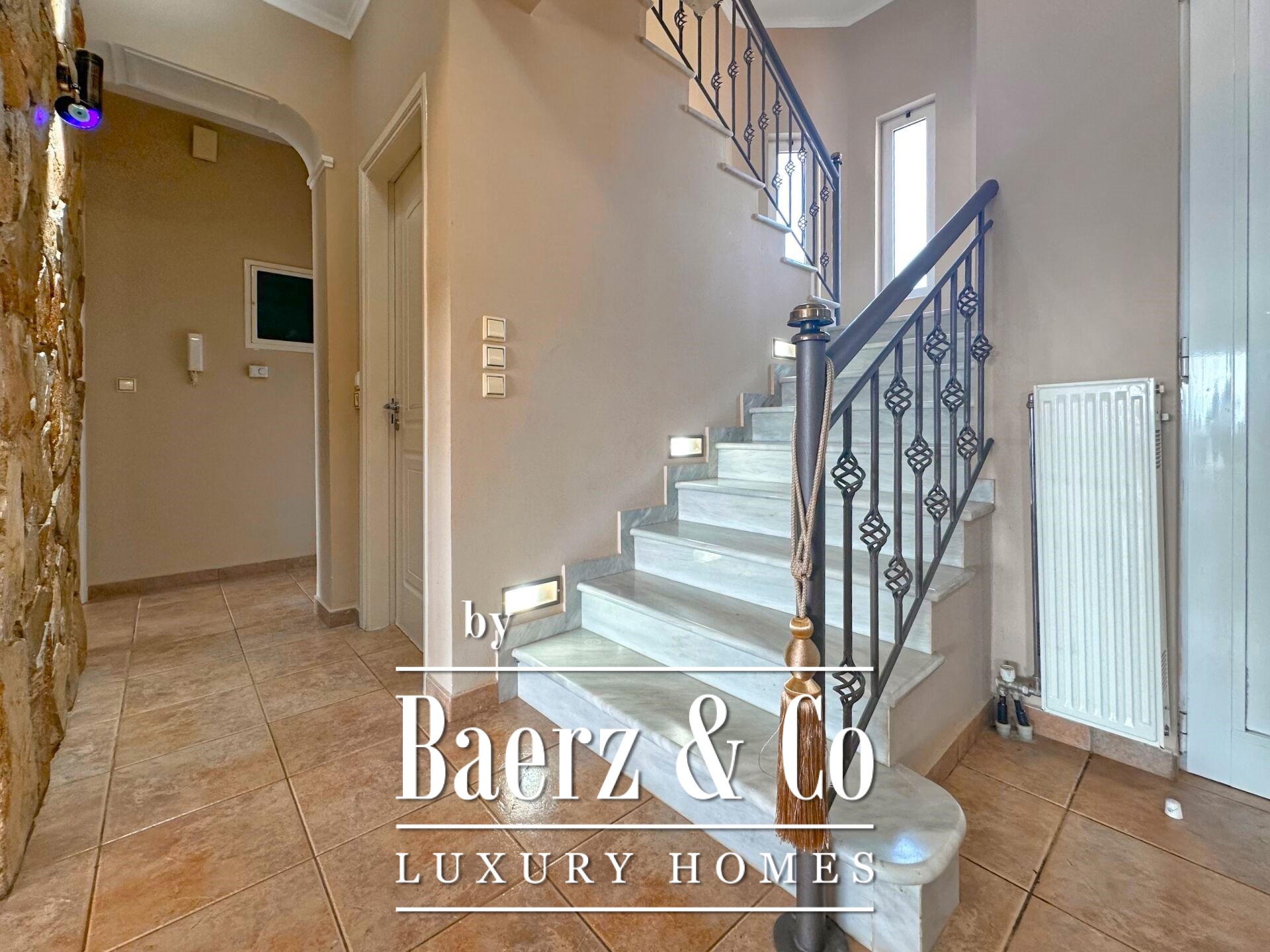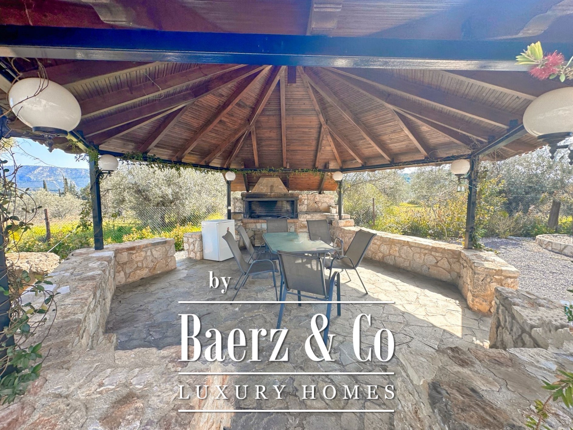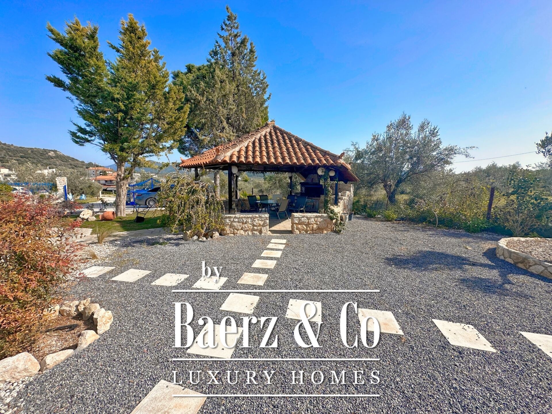 La calefacción autónoma por gasóleo con radiadores se complementa con chimenea, aire acondicionado, caldera y jacuzzi. En el exterior, se extienden aproximadamente 1.600 m² de jardín paisajístico, con 30 olivos y áreas especialmente diseñadas para el relax. Zona de barbacoa y 30 m² de balcones con vistas panorámicas y despejadas enfatizan el carácter abierto de esta casa independiente en Pyrgiotika Nafplio.