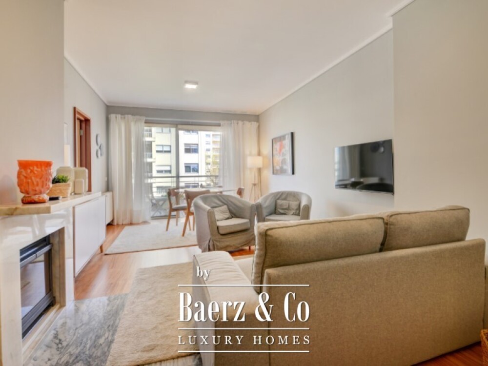 Piso de 2 dormitorios en Oporto que ofrece un espacio de vida refinado en una de las zonas residenciales más cotizadas de la ciudad. Esta vivienda, completamente amueblada, cuenta con 104 m² en la quinta planta y se distingue por su cuidada separación entre áreas sociales y privadas. Al entrar, un acogedor vestíbulo distribuye las zonas de la casa. El salón, realzado por una chimenea y acceso directo a un balcón amueblado, disfruta de una orientación este y sur que aporta luz durante la mañana y el día.