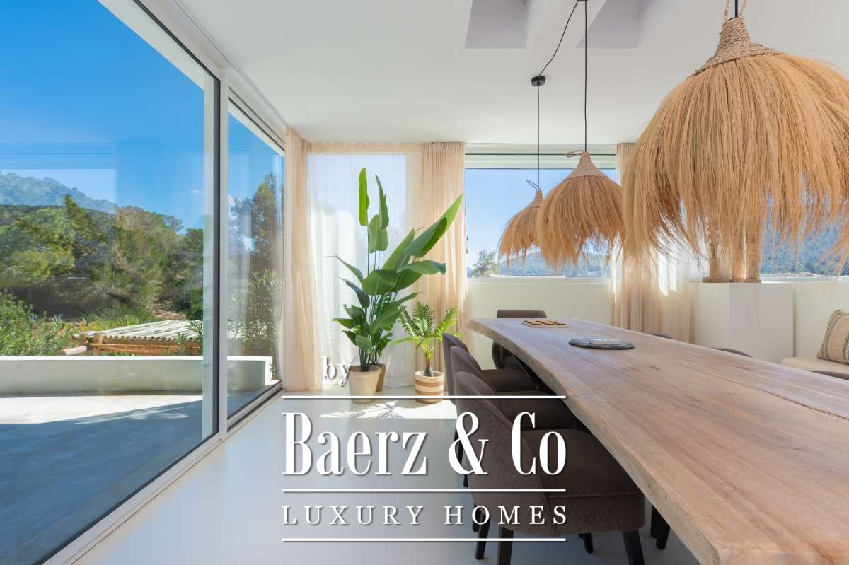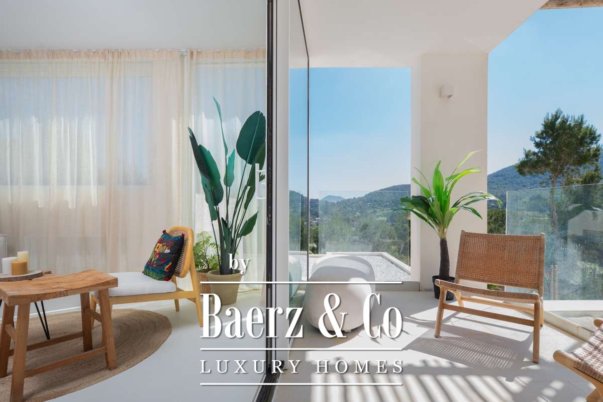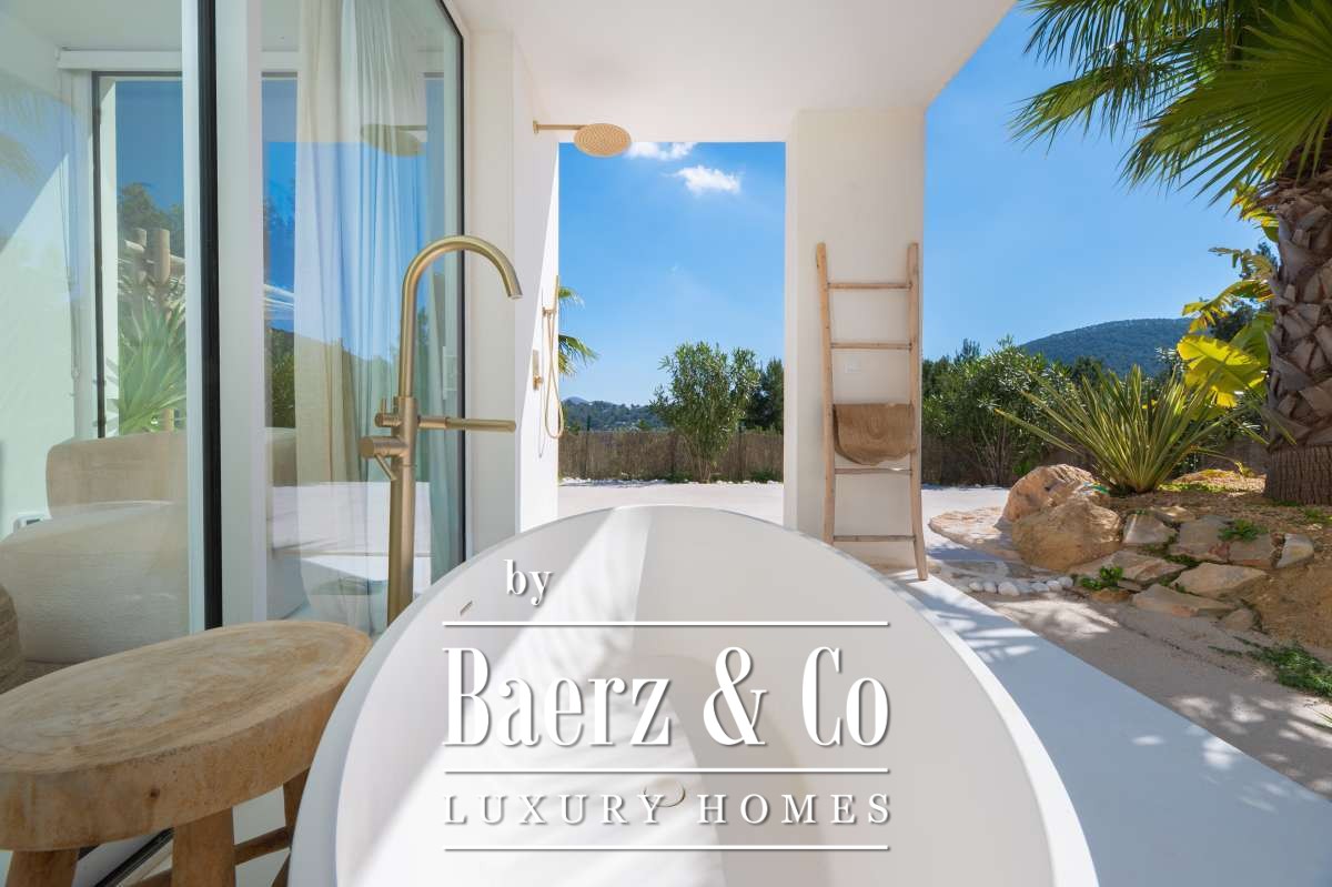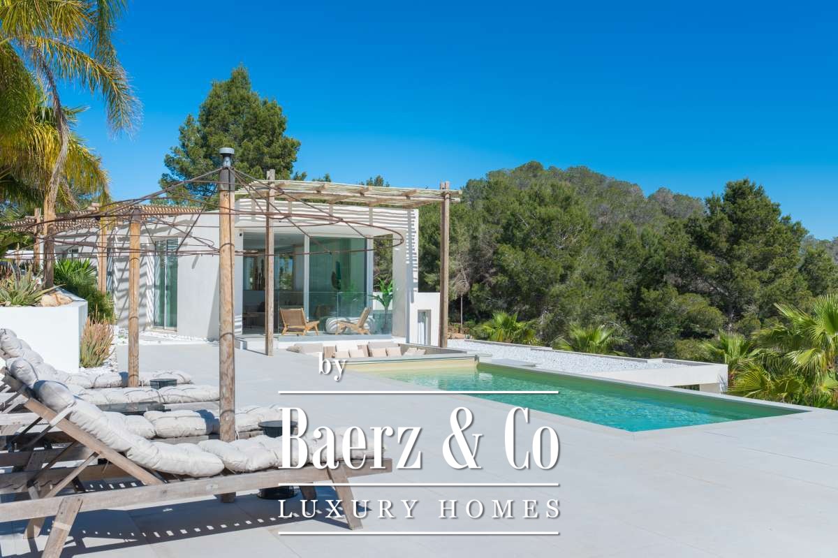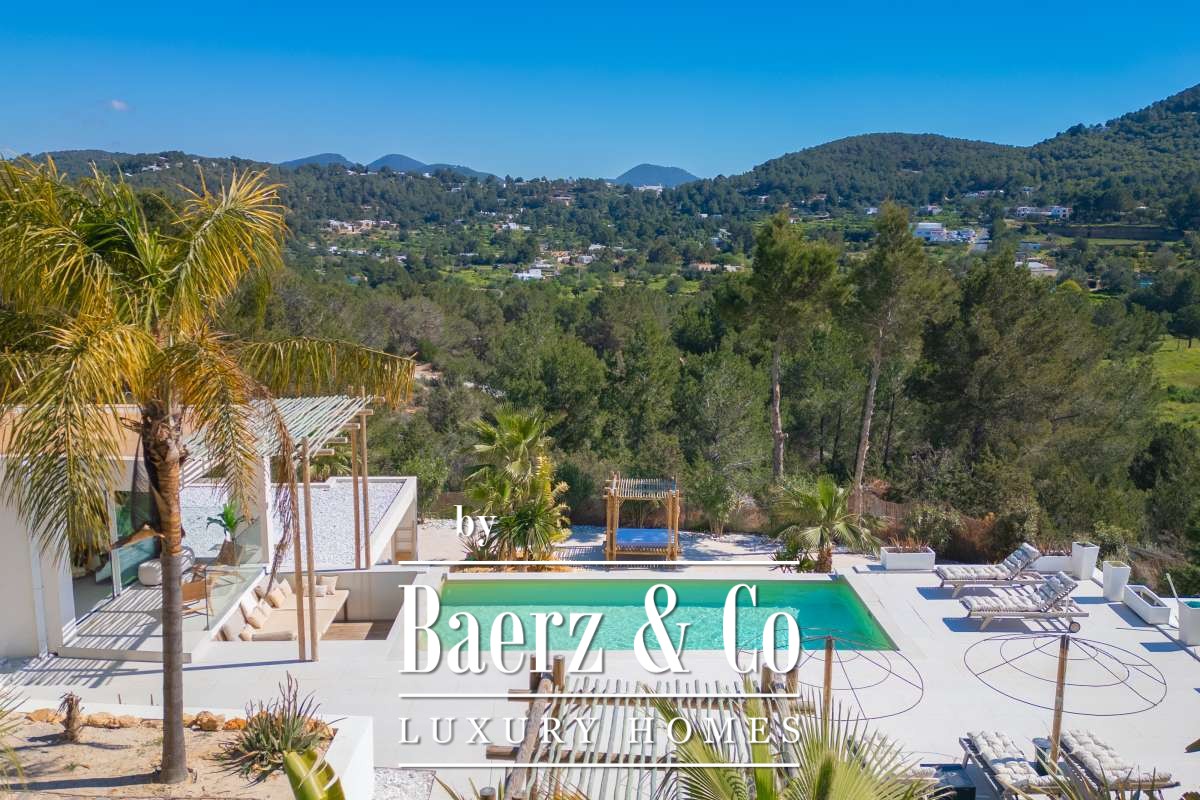 Villa Sant Josep de Sa Talaia ofrece lujo discreto en las verdes colinas occidentales de Ibiza. Esta villa de reciente construcción se sitúa sobre una parcela de 19.600 m², rodeada de paisajes mediterráneos y bosque, y presenta una combinación poco habitual de privacidad, amplitud y vistas panorámicas a montaña y campo, con destellos del mar en el horizonte. Su ubicación permite acceder fácilmente al encantador pueblo de San José y a las famosas playas de Cala Tarida, Cala Conta y Cala Bassa.