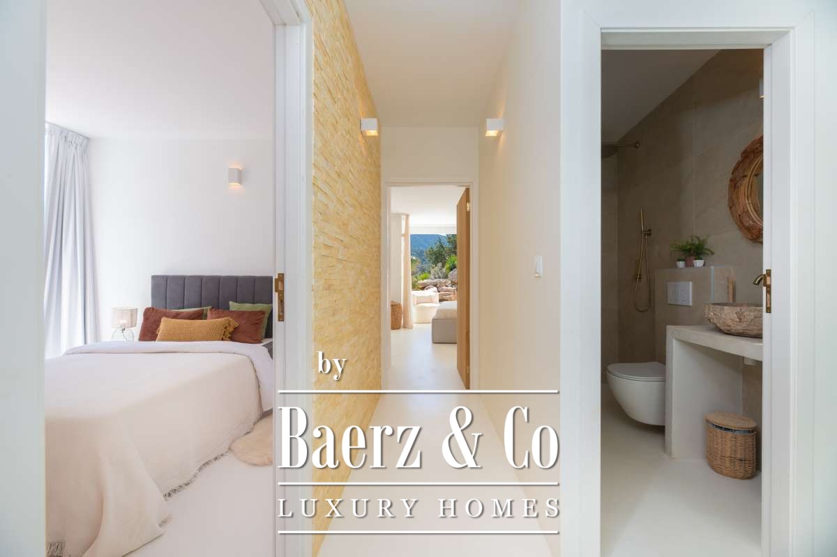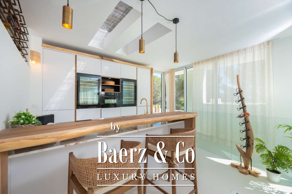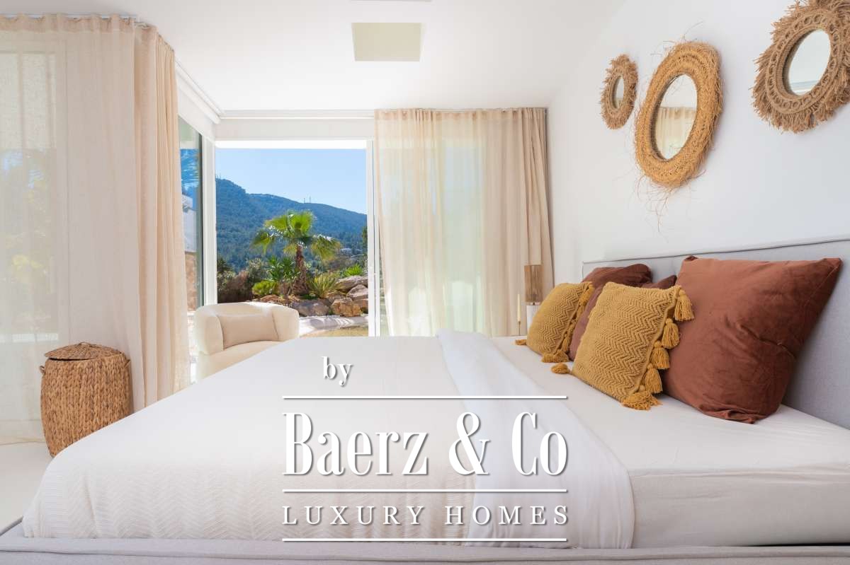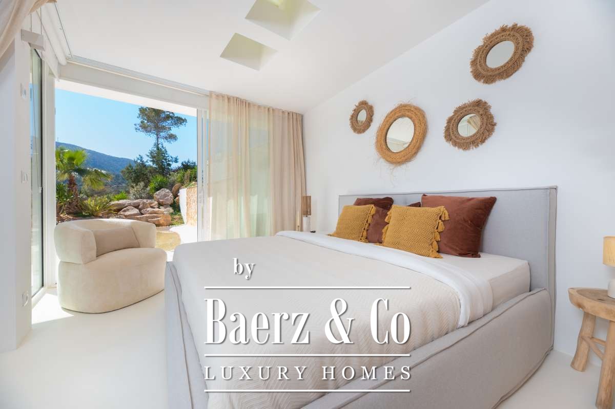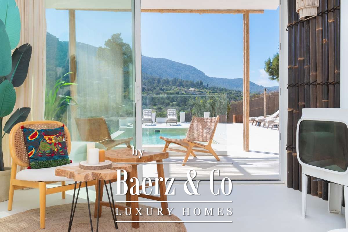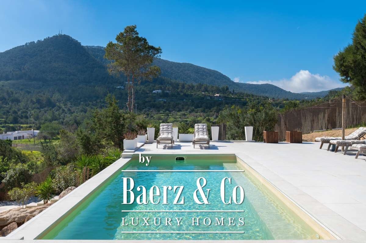 Villa Sant Josep de Sa Talaia ofrece lujo discreto en las verdes colinas occidentales de Ibiza. Esta villa de reciente construcción se sitúa sobre una parcela de 19.600 m², rodeada de paisajes mediterráneos y bosque, y presenta una combinación poco habitual de privacidad, amplitud y vistas panorámicas a montaña y campo, con destellos del mar en el horizonte. Su ubicación permite acceder fácilmente al encantador pueblo de San José y a las famosas playas de Cala Tarida, Cala Conta y Cala Bassa.