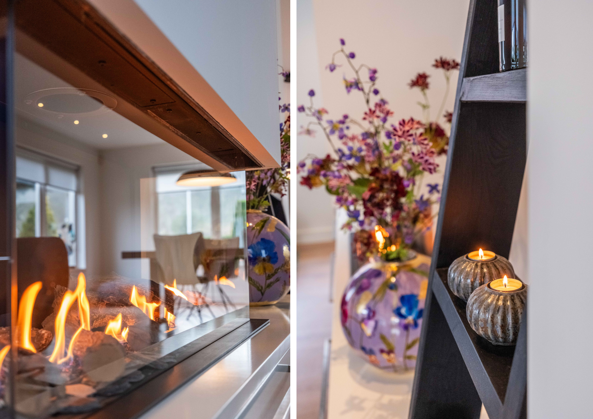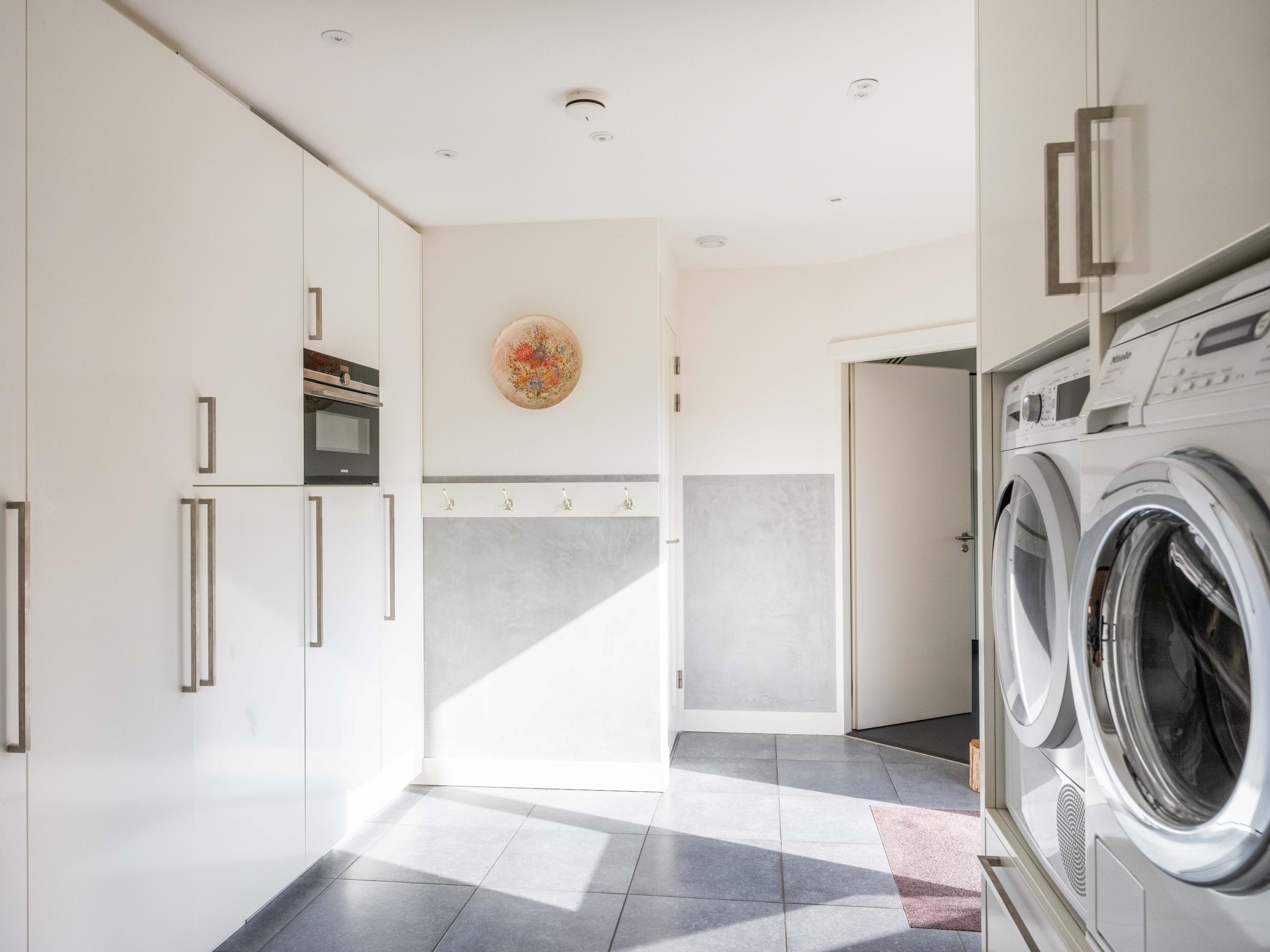Al llegar, el amplio vestíbulo introduce una distribución clara que se conecta sin esfuerzo con una amplia sala de estar en forma de L, bañado de luz natural. Grandes ventanales enmarcan el jardín privado, mientras el suelo laminado de roble con calefacción por suelo radiante proporciona calidez constante. Una chimenea de gas aporta un toque cálido al área de estar, y la cocina de concepto abierto, con barra, une claridad visual y convivialidad. El ritmo funcional de la casa continúa con un generoso lavadero, que incluye armarios empotrados, área de lavandería y acceso directo a la terraza del jardín, así como un segundo aseo. A su lado, una suite flexible, actualmente utilizada como oficina, con aire acondicionado, armarios empotrados y altillo para almacenamiento adicional.