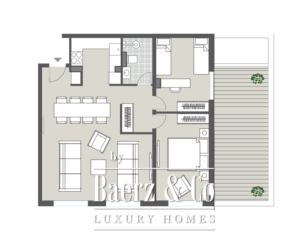 La propiedad se entrega completamente amueblada, con interiores personalizados por ANSER & Partners y mobiliario de la prestigiosa firma Old Hara. Los sistemas inteligentes de Legrand, electrodomésticos de alta gama y acabados exquisitos—como madera y piedra natural, así como instalaciones sanitarias firmadas por Villeroy & Boch y Dornbracht—garantizan confort y calidad duradera. El apartamento disfruta también de ventilación independiente, soluciones de climatización Samsung WindFree, acristalamiento de bajo consumo energético y alumbrado LED en todas las estancias.