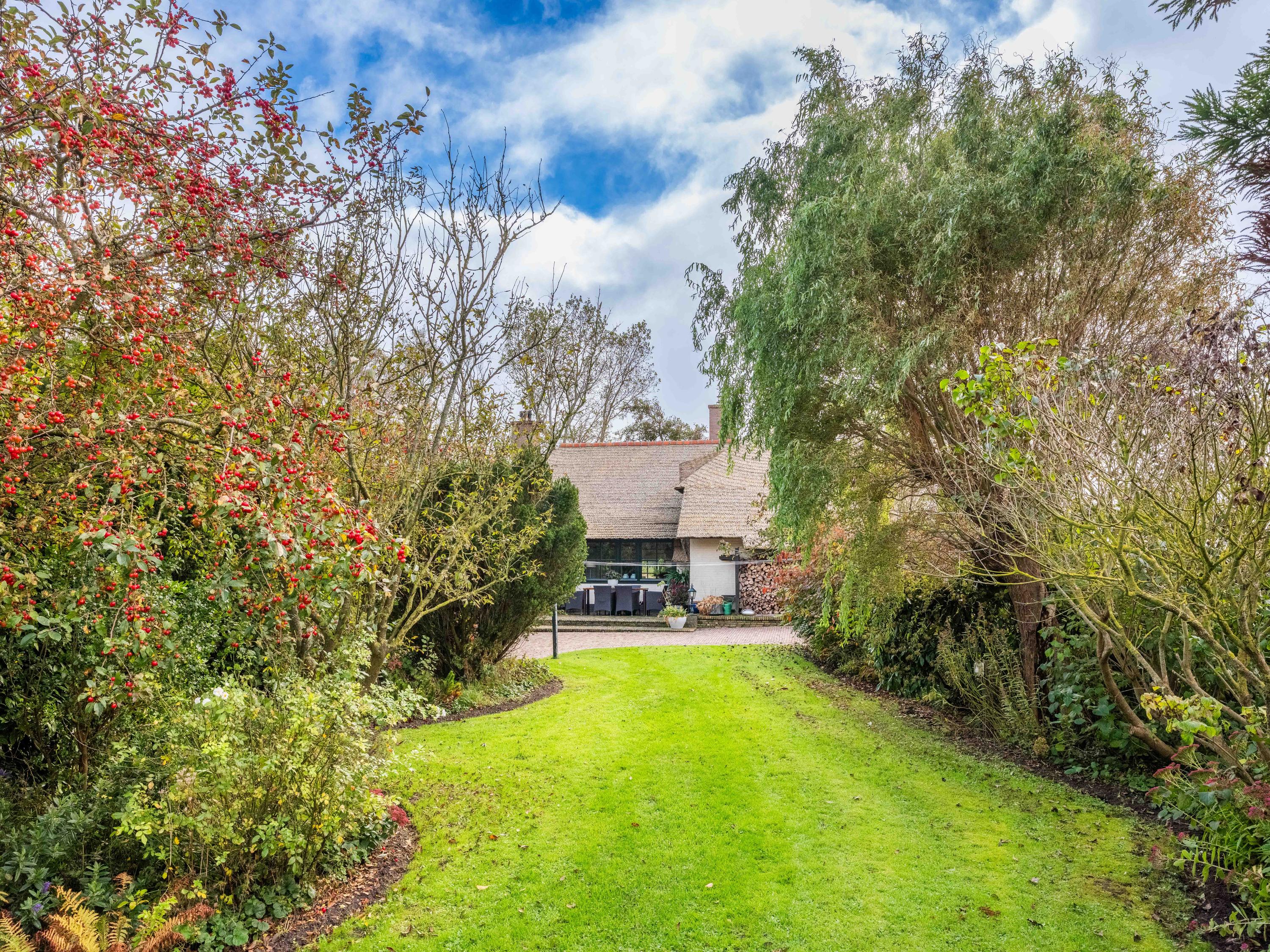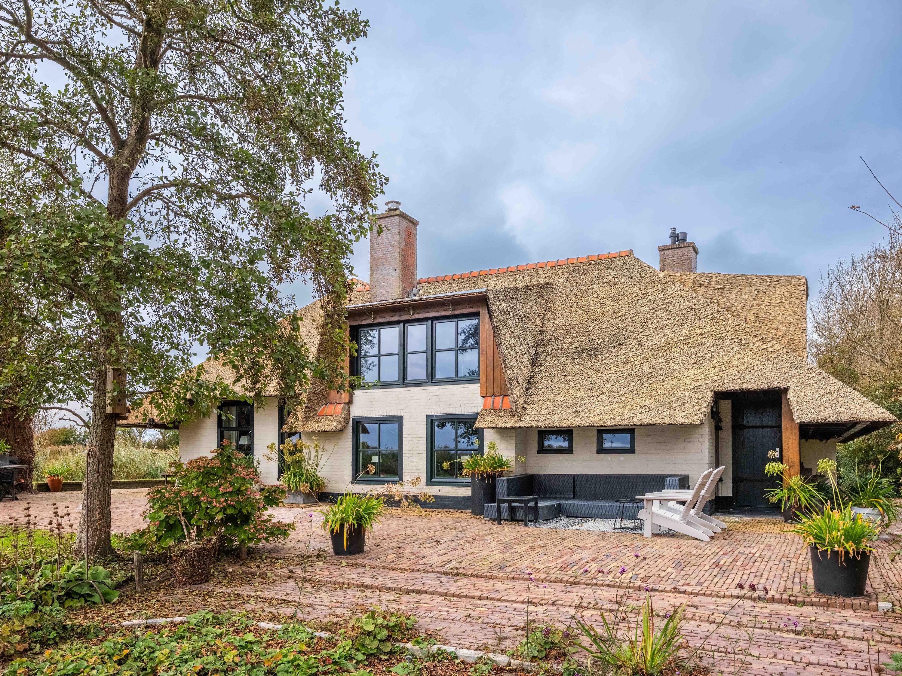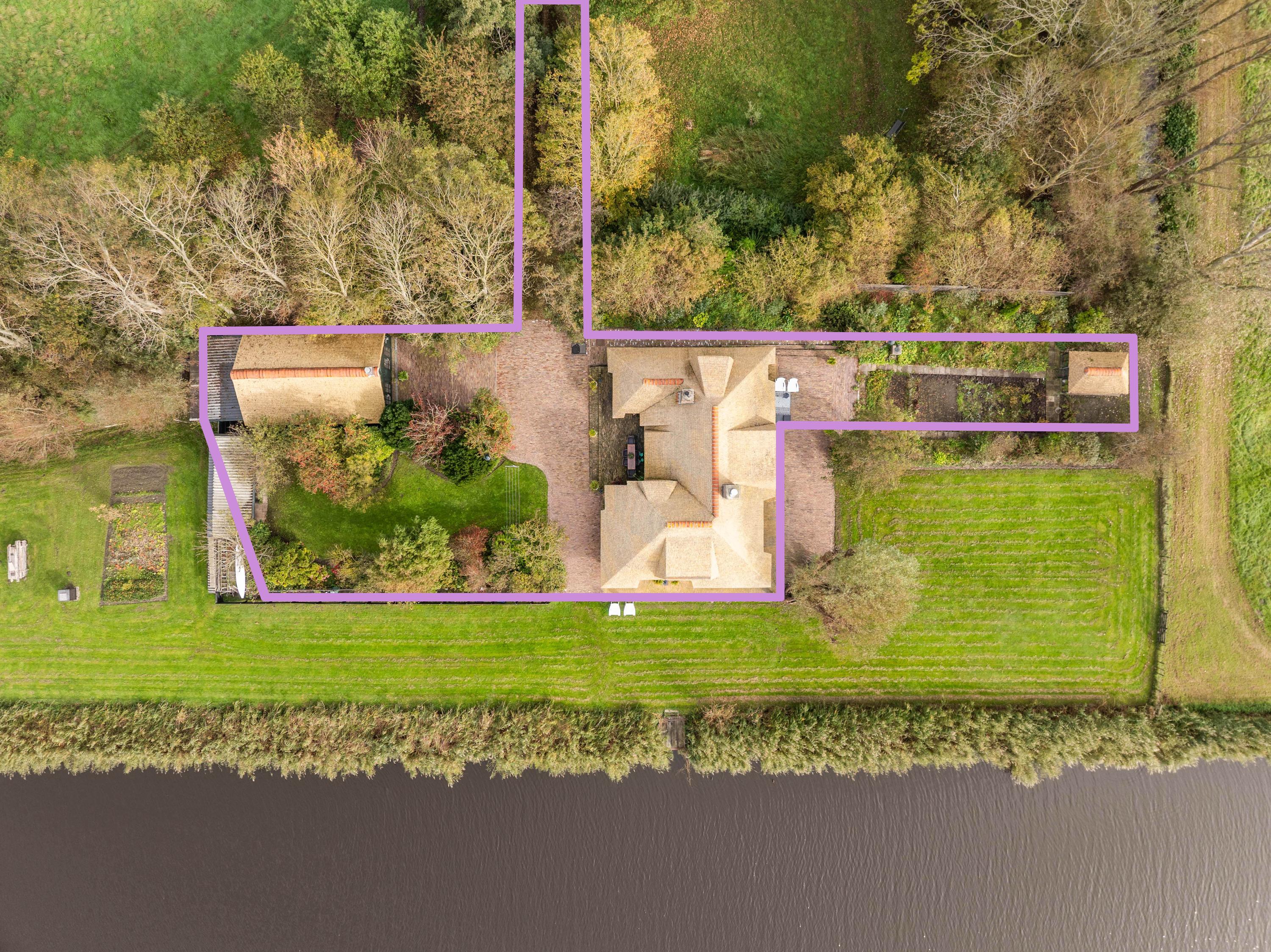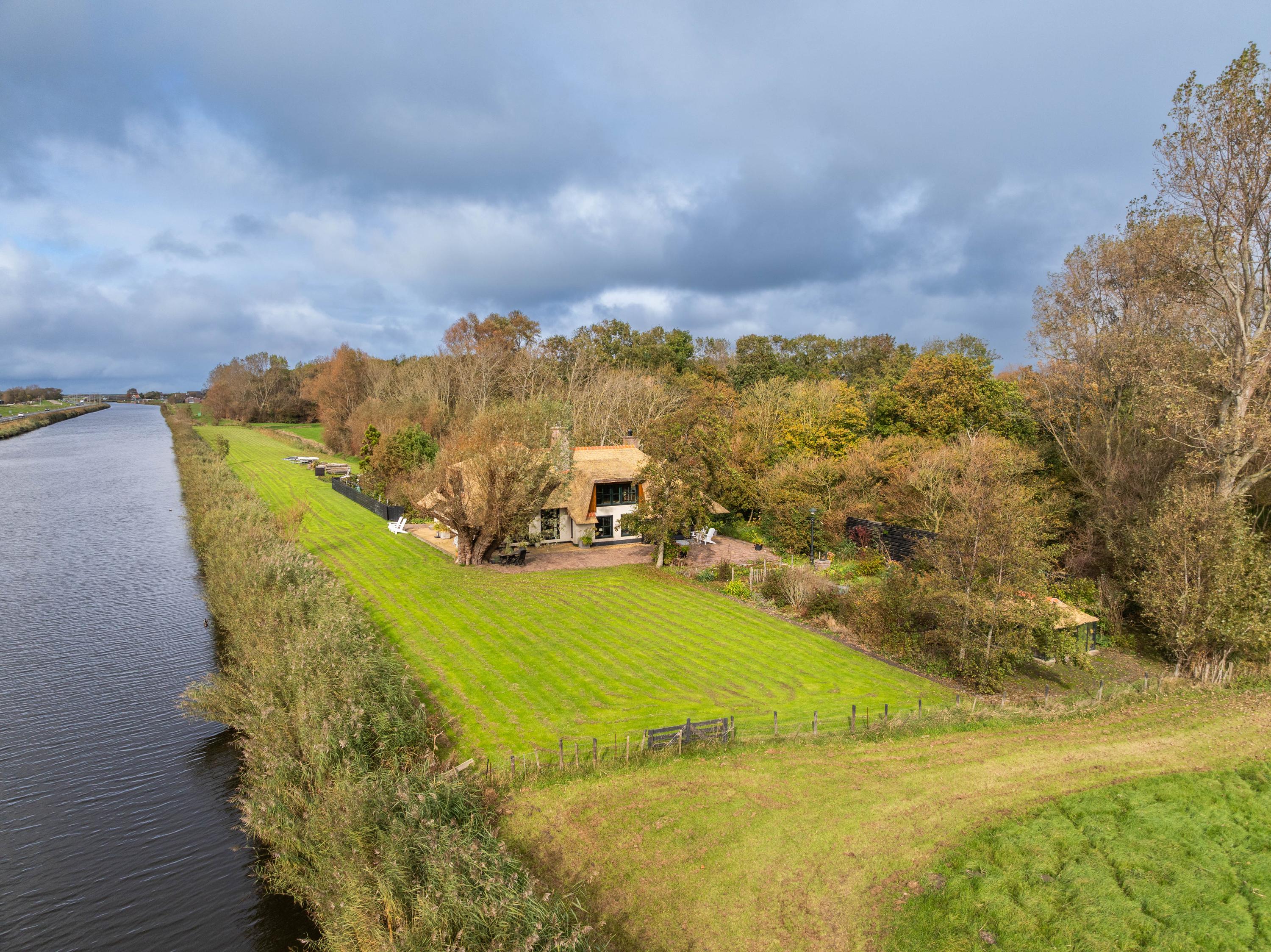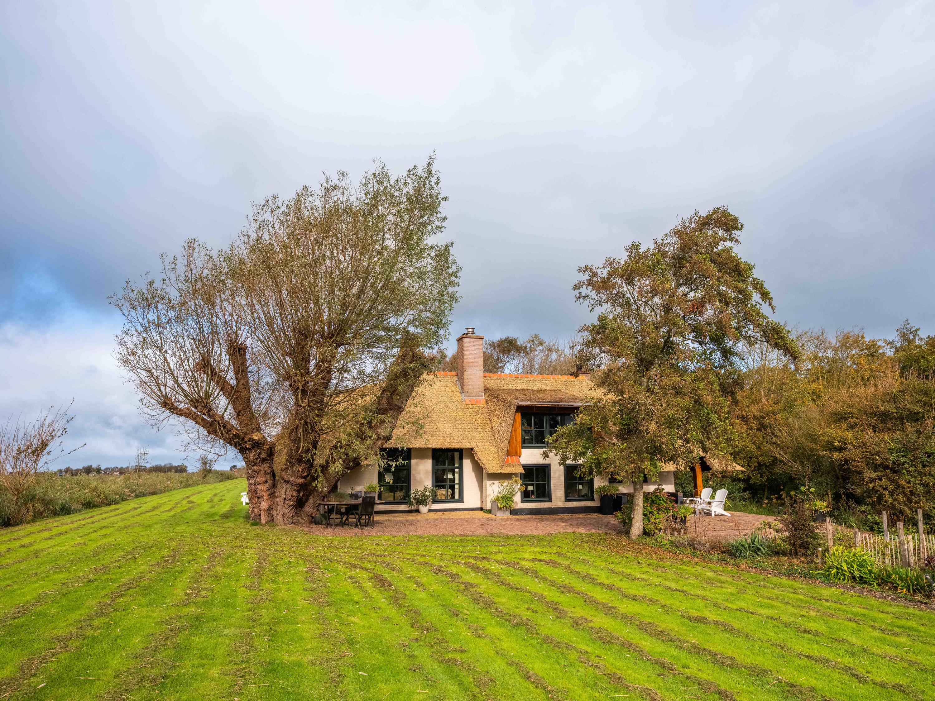 El jardín paisajístico enmarca una casa de invitados independiente con estufa de leña, cocina abierta, dormitorio y ducha privada, ofreciendo versatilidad para recibir o relajarse en privado. Varias terrazas, árboles frutales y un embarcadero privado invitan a la calma, completando la experiencia Warmenhuizen: una dirección para quienes buscan serenidad sin concesiones.