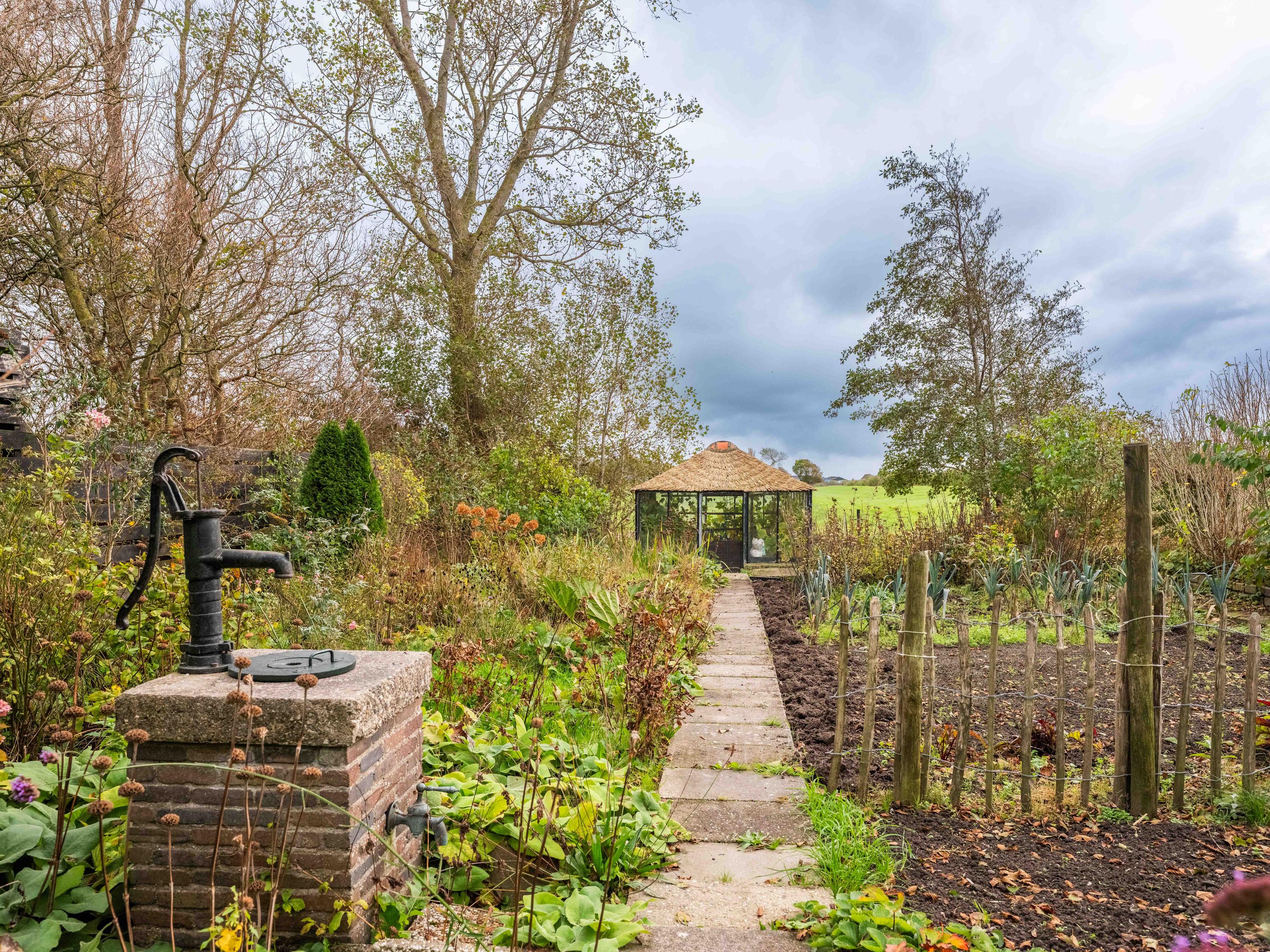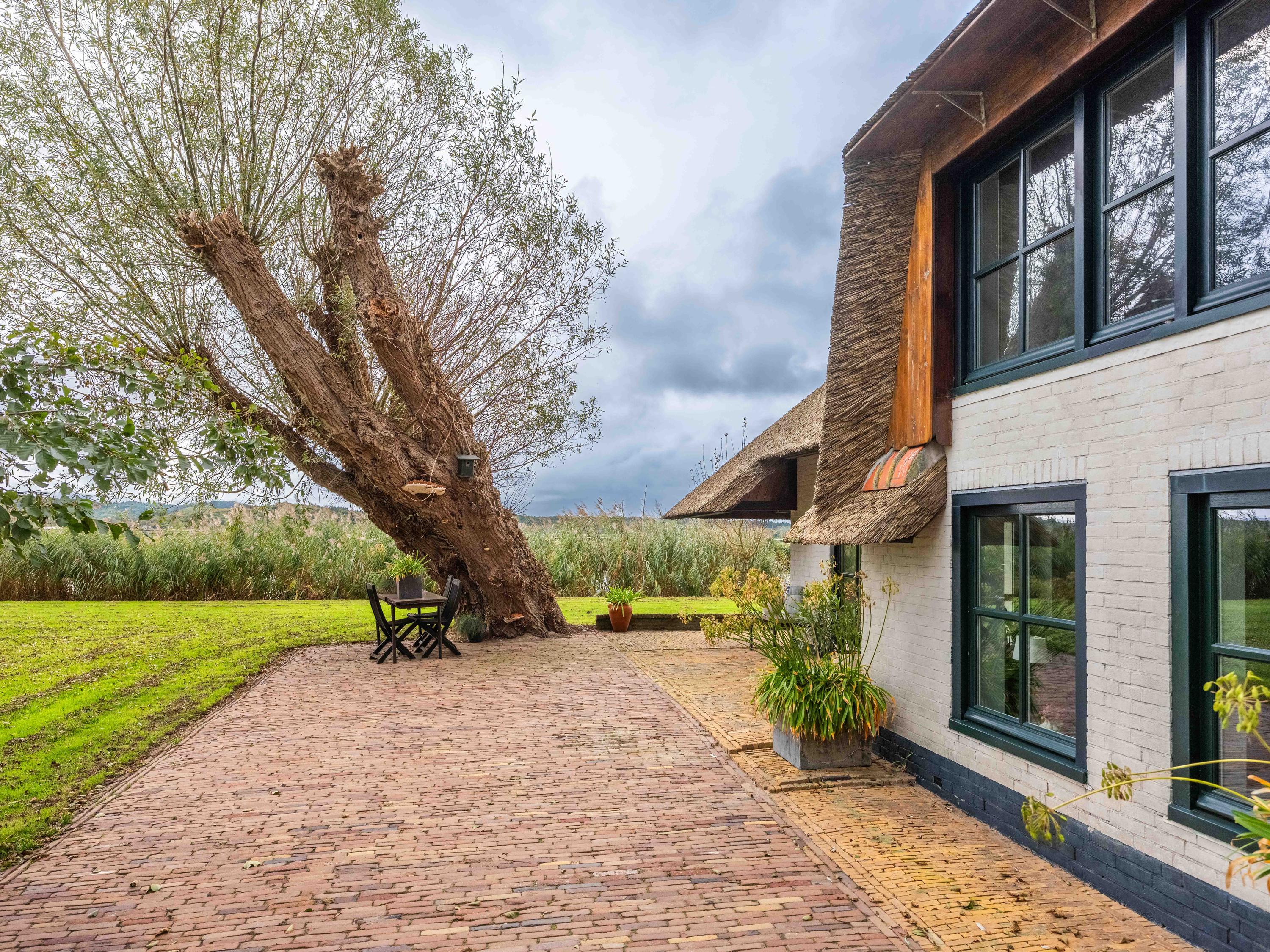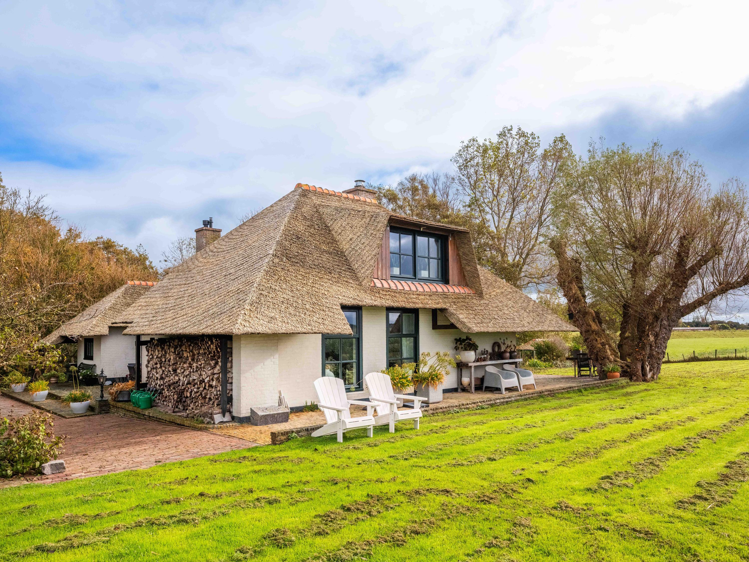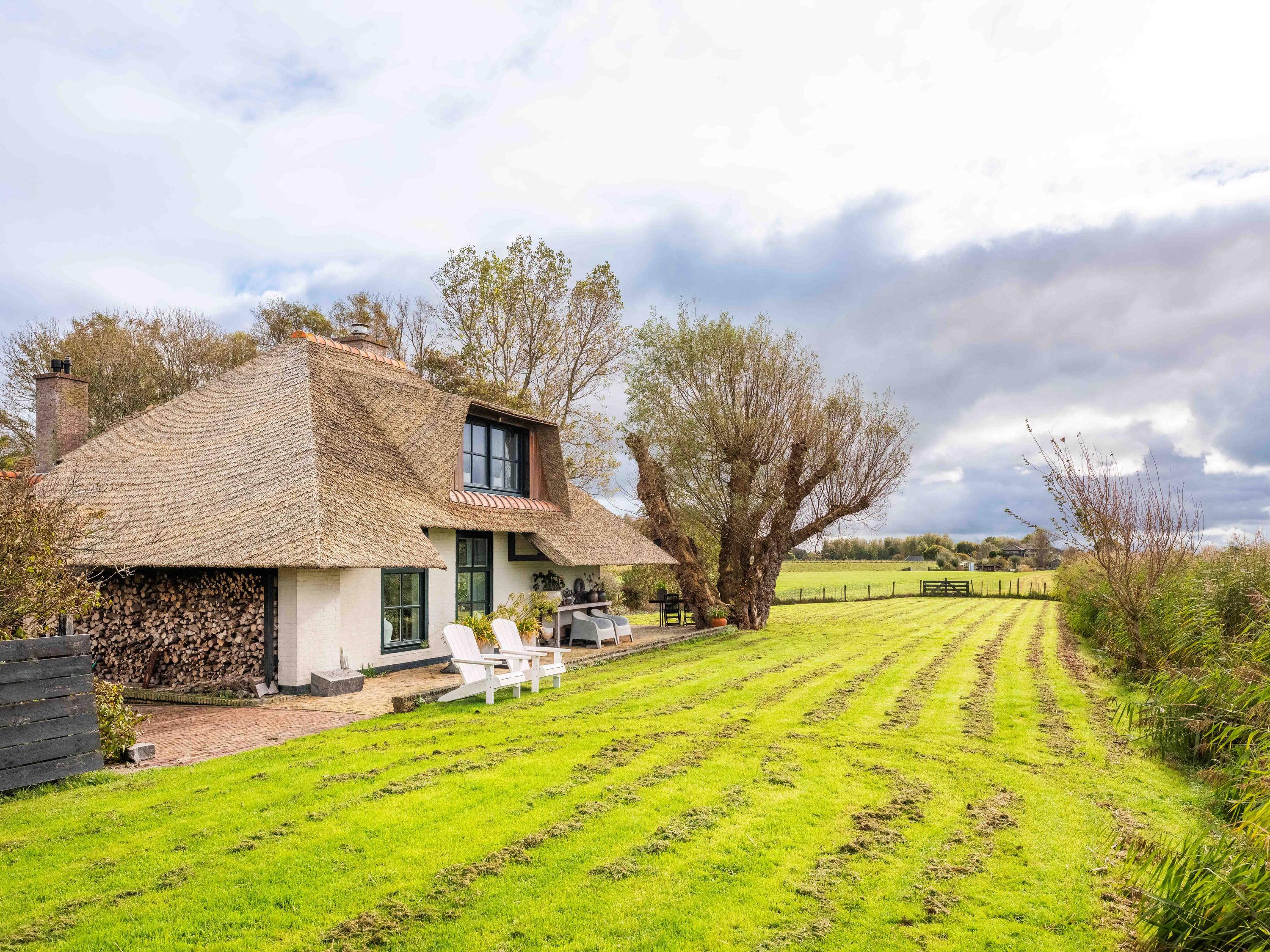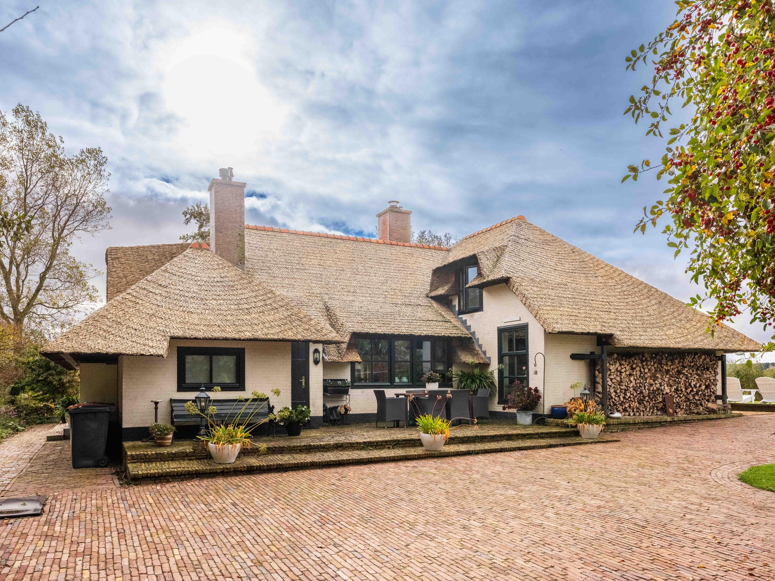 El jardín paisajístico enmarca una casa de invitados independiente con estufa de leña, cocina abierta, dormitorio y ducha privada, ofreciendo versatilidad para recibir o relajarse en privado. Varias terrazas, árboles frutales y un embarcadero privado invitan a la calma, completando la experiencia Warmenhuizen: una dirección para quienes buscan serenidad sin concesiones.
