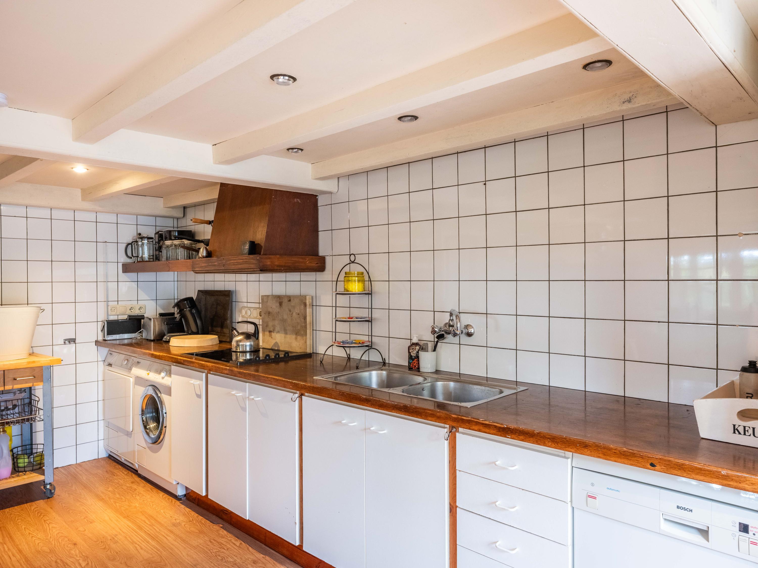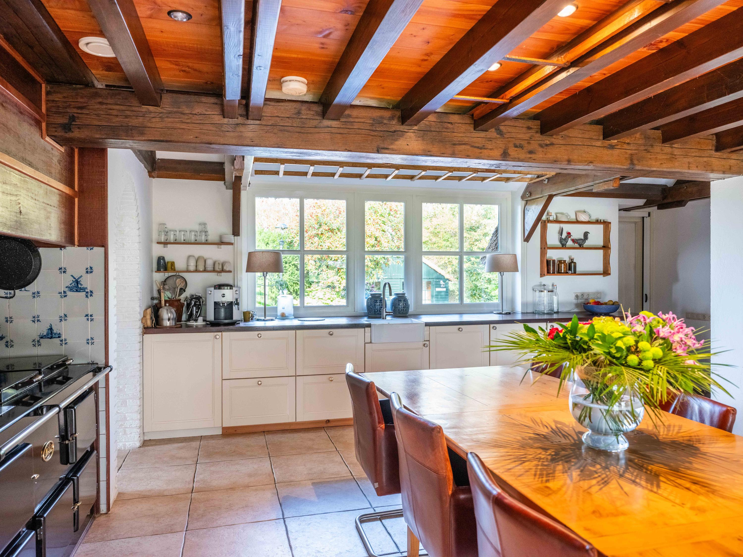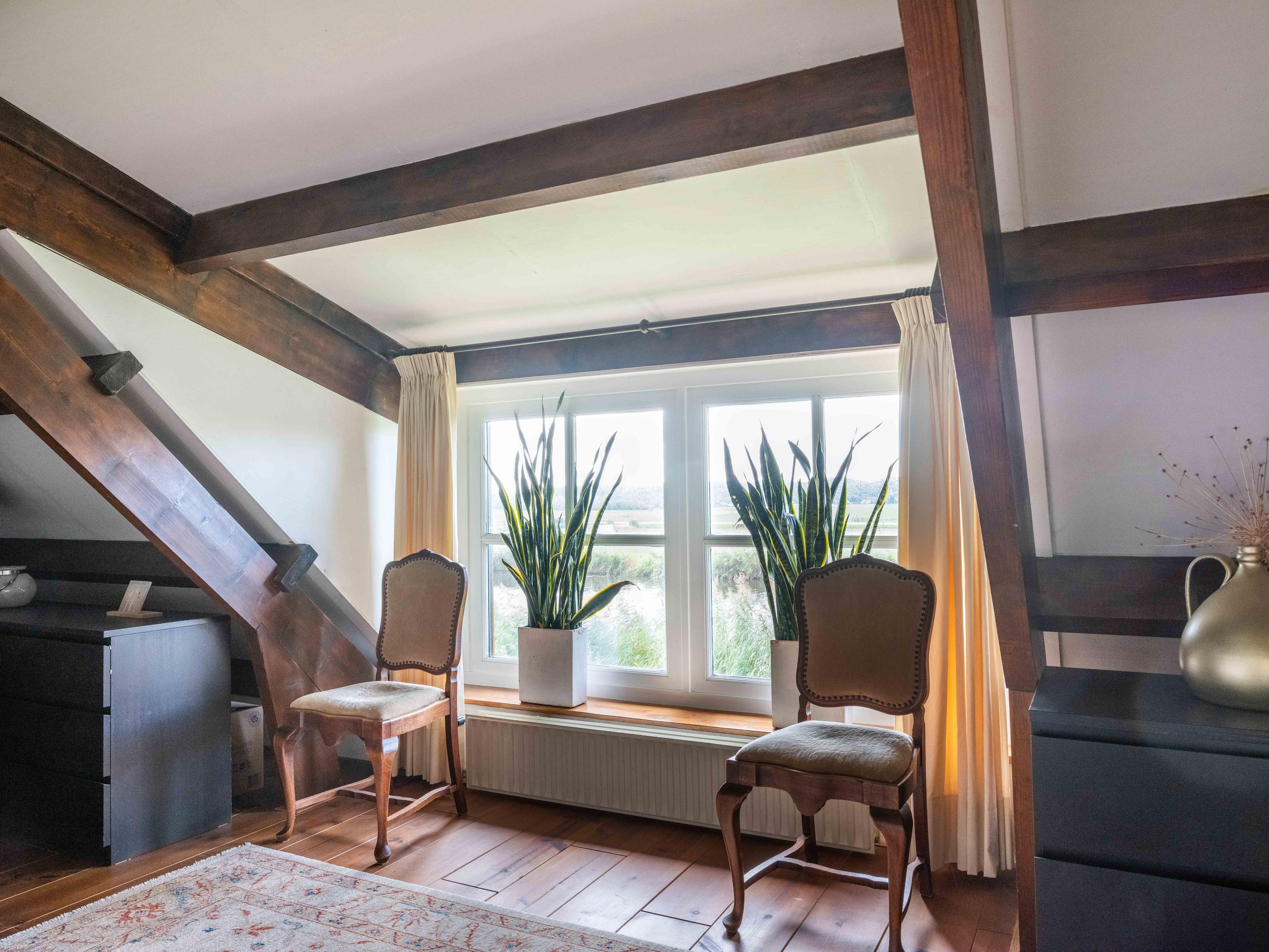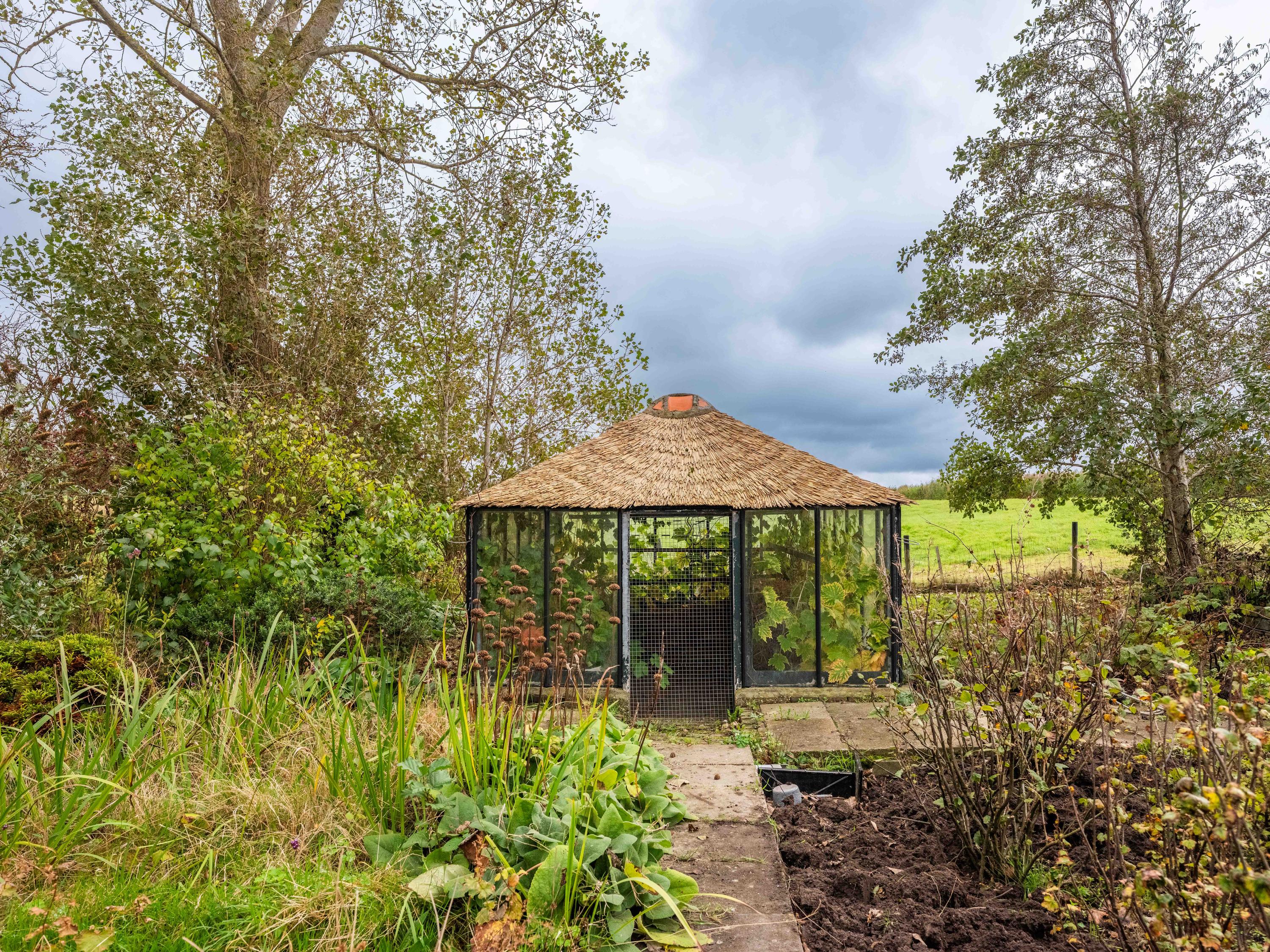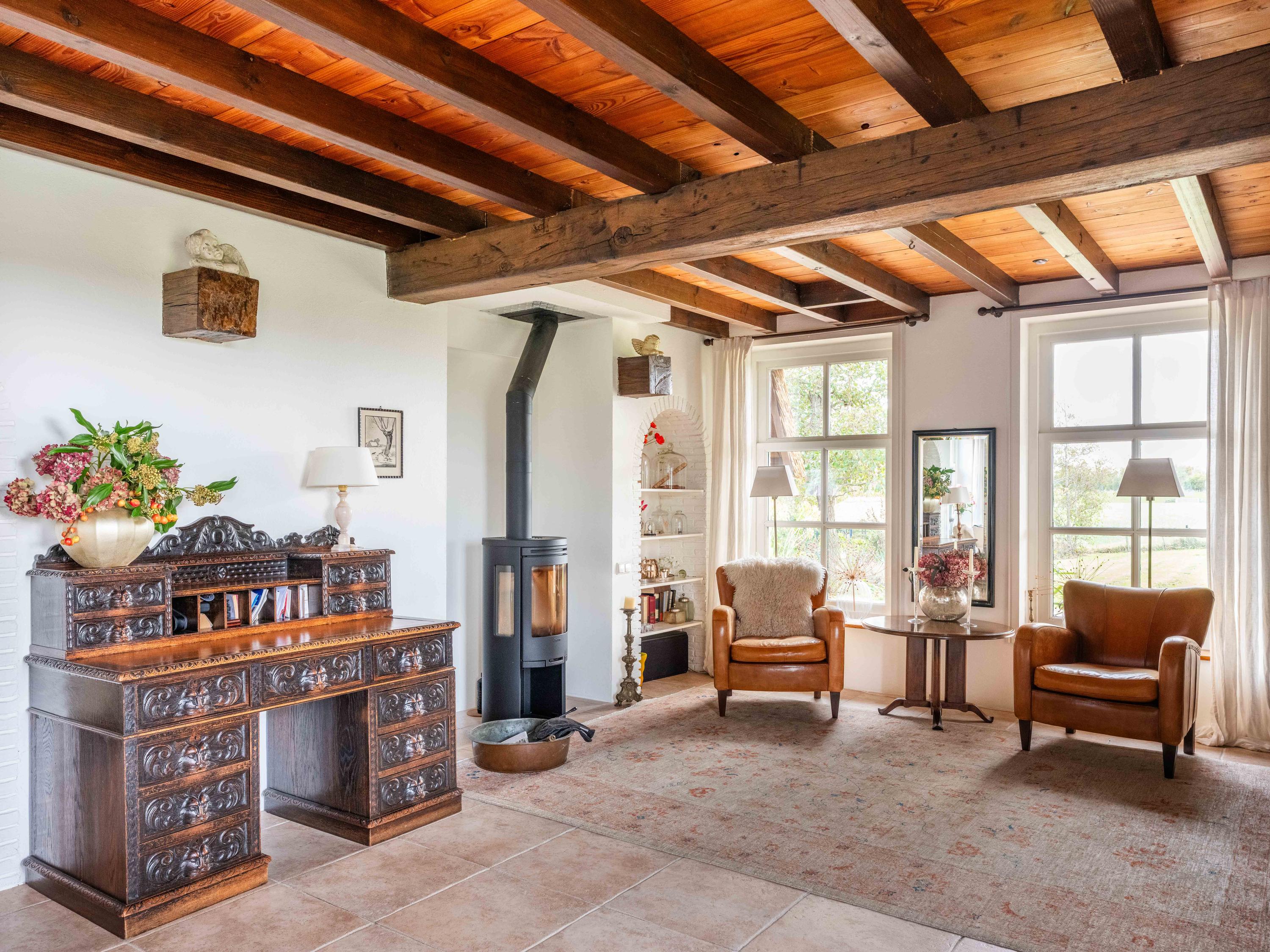 El jardín paisajístico enmarca una casa de invitados independiente con estufa de leña, cocina abierta, dormitorio y ducha privada, ofreciendo versatilidad para recibir o relajarse en privado. Varias terrazas, árboles frutales y un embarcadero privado invitan a la calma, completando la experiencia Warmenhuizen: una dirección para quienes buscan serenidad sin concesiones.