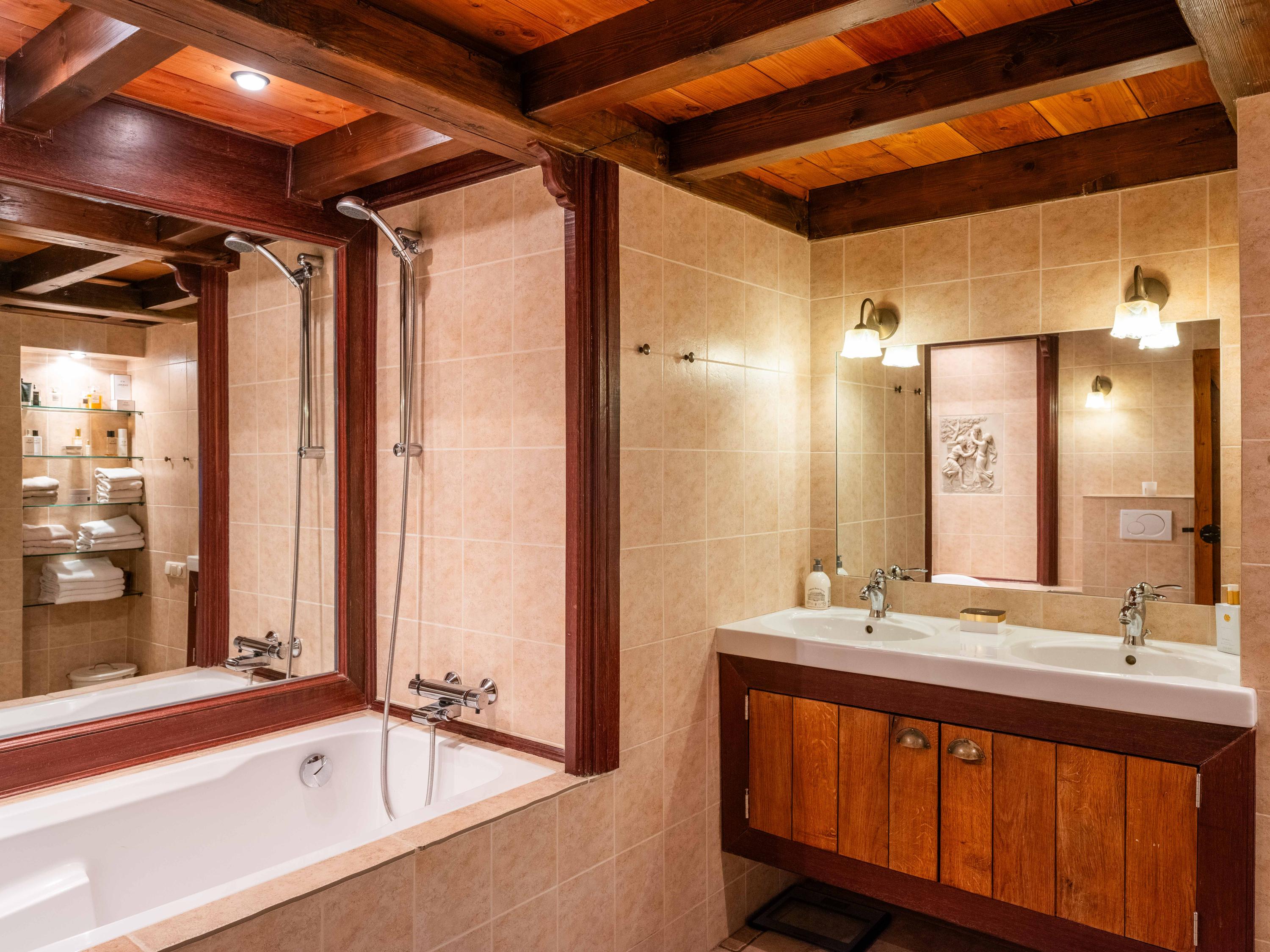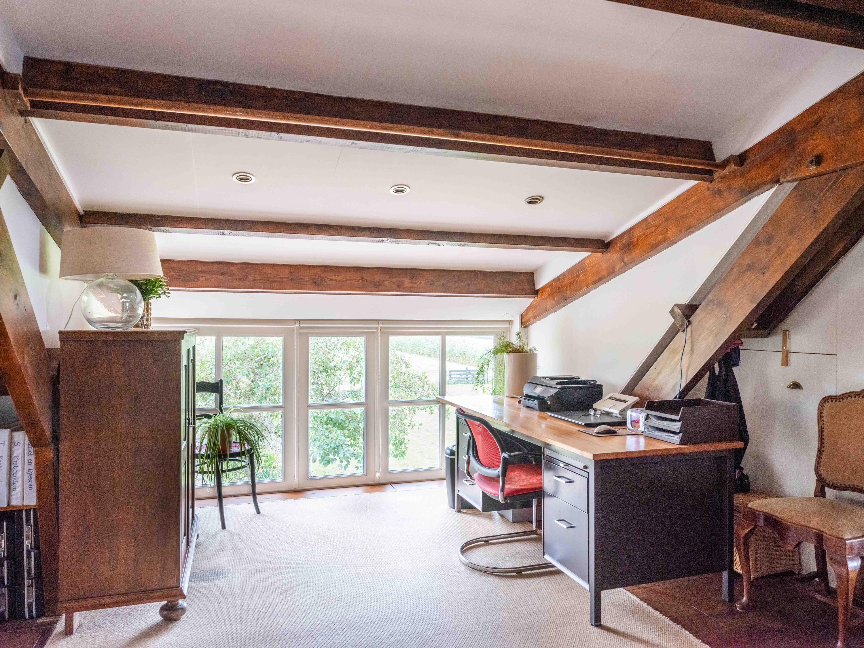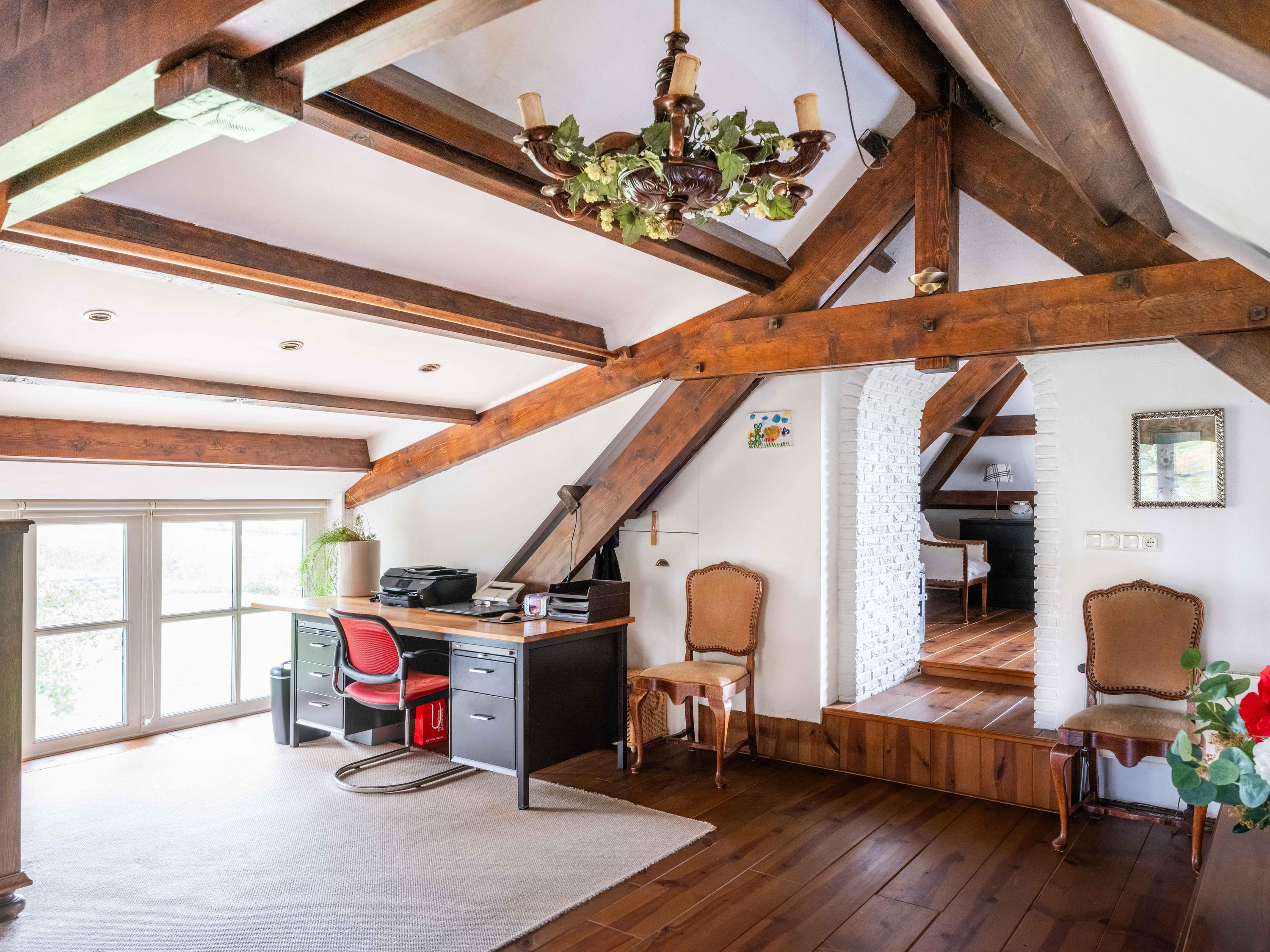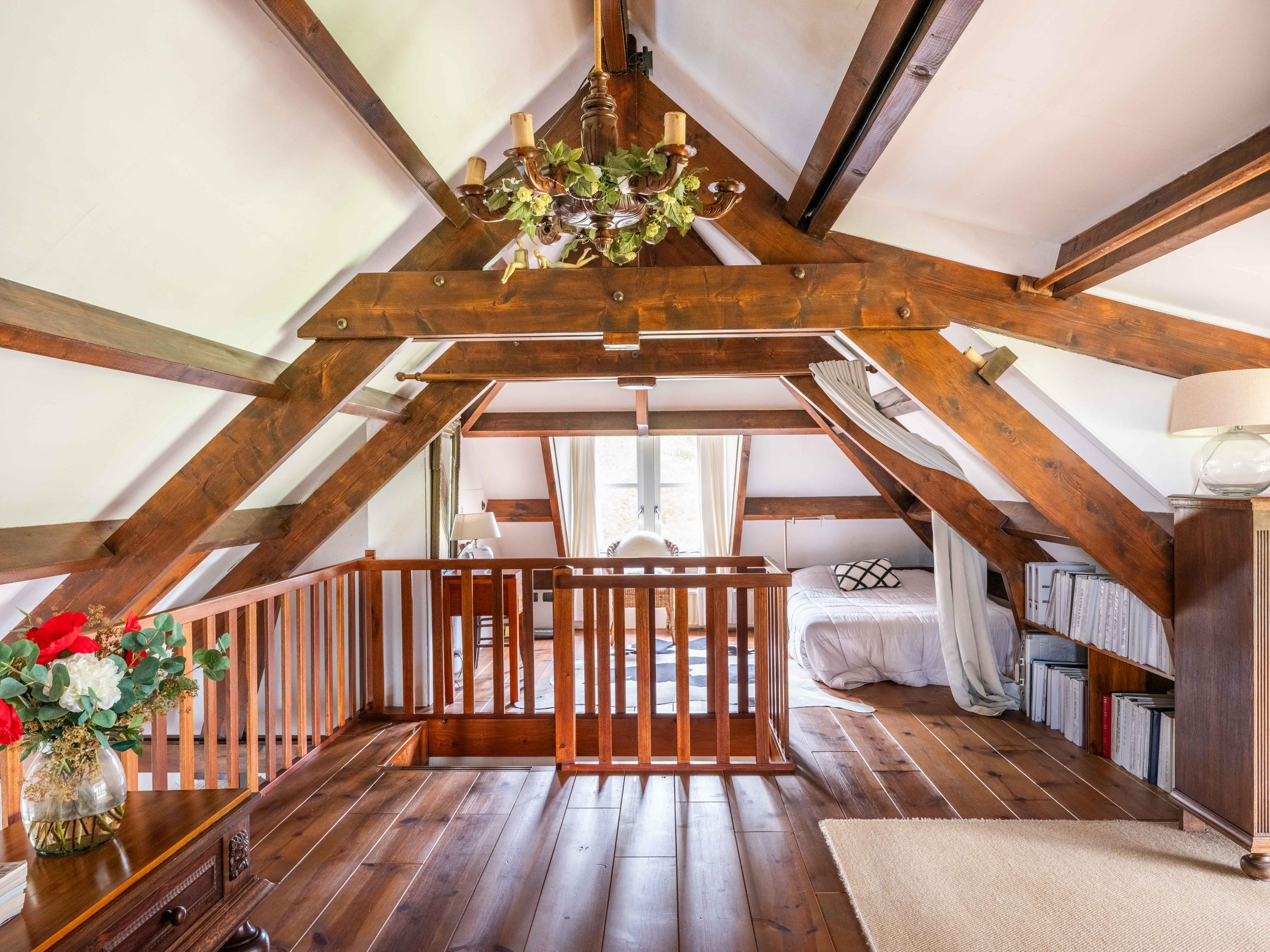 La planta baja dispone de un baño de lujo, vestidor práctico, sótano independiente y una versátil zona de trabajo y huéspedes integrada en el altillo. El dormitorio principal disfruta de vistas panorámicas a jardines y prados, orientado de forma óptima para garantizar tranquilidad y sol.