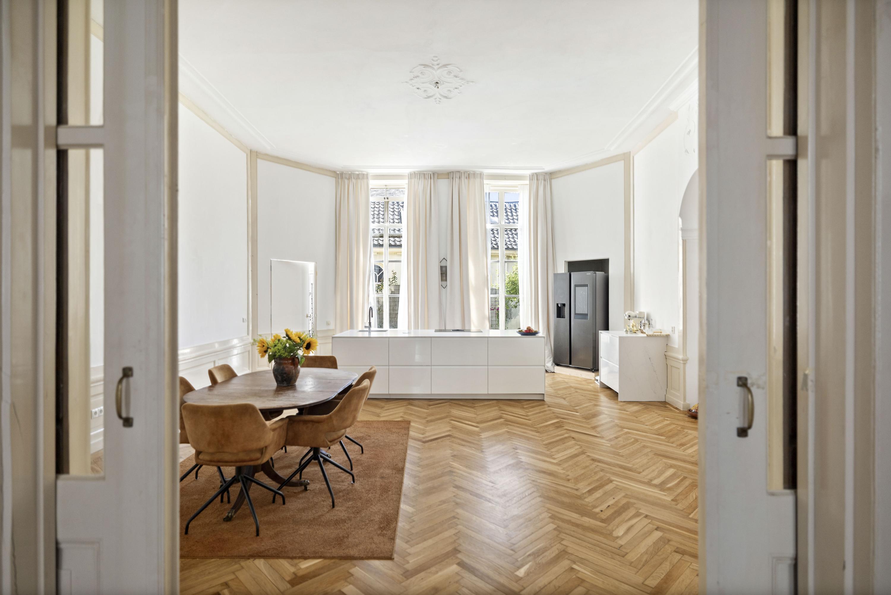 Esta casa adosada en Zutphen ofrece una combinación excepcional de legado histórico y sofisticación contemporánea en el corazón de una de las ciudades hanseáticas más antiguas de los Países Bajos. La propiedad es fácilmente reconocible en Zaadmarkt, impregnada de la vitalidad de los mercados locales y las sinuosas calles de la ciudad. Detrás de su fachada neoclásica revestida en blanco, con elegantes pilastras y contraventanas restauradas, más de 245 m² se despliegan en espacios habitables bañados de sol, techos altos y proporciones generosas.