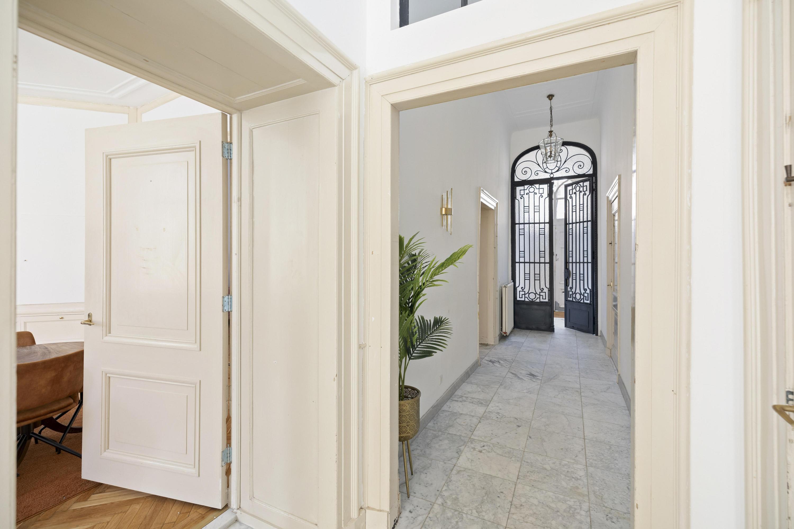 Tres dormitorios están dispuestos para ofrecer privacidad y conexión. La suite principal cuenta con un lujoso baño en suite con bañera independiente y doble lavabo, mientras que el entresuelo revela un cuarto dormitorio con baño privado y vestidor. El confort contemporáneo está presente en toda la vivienda, preservando el romanticismo y la grandeza de finales del siglo XIX.