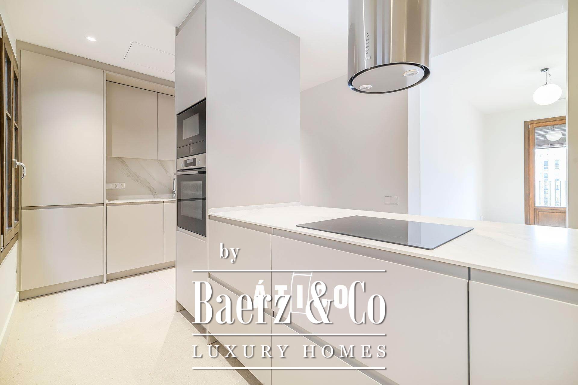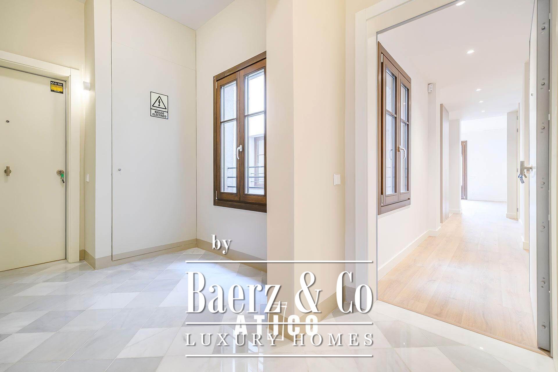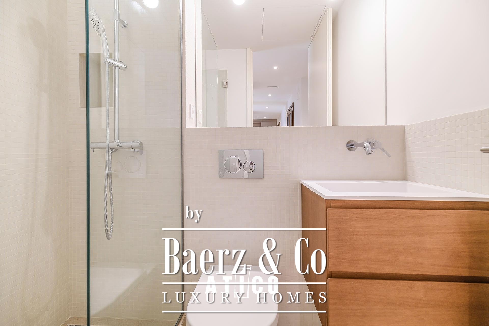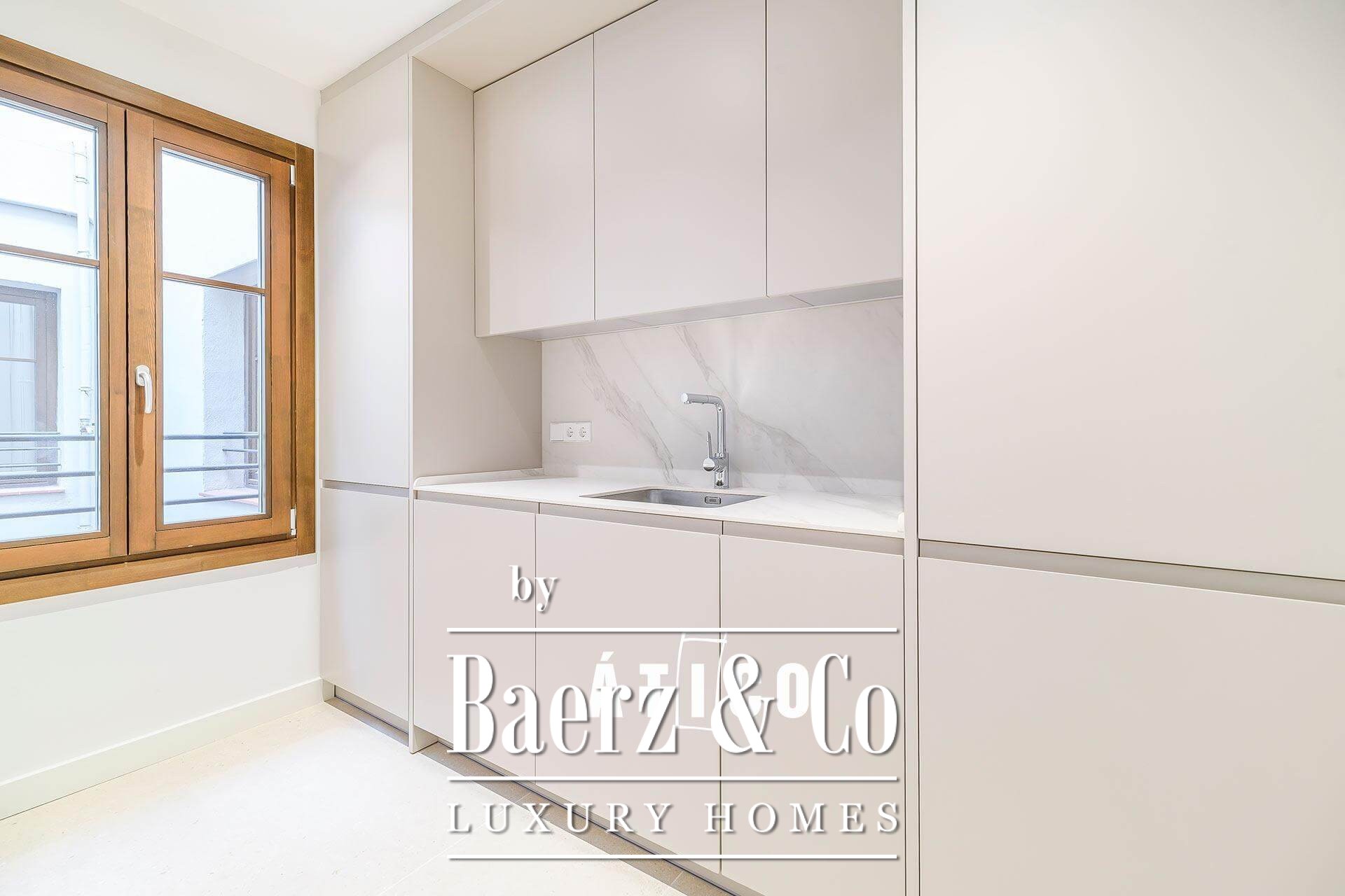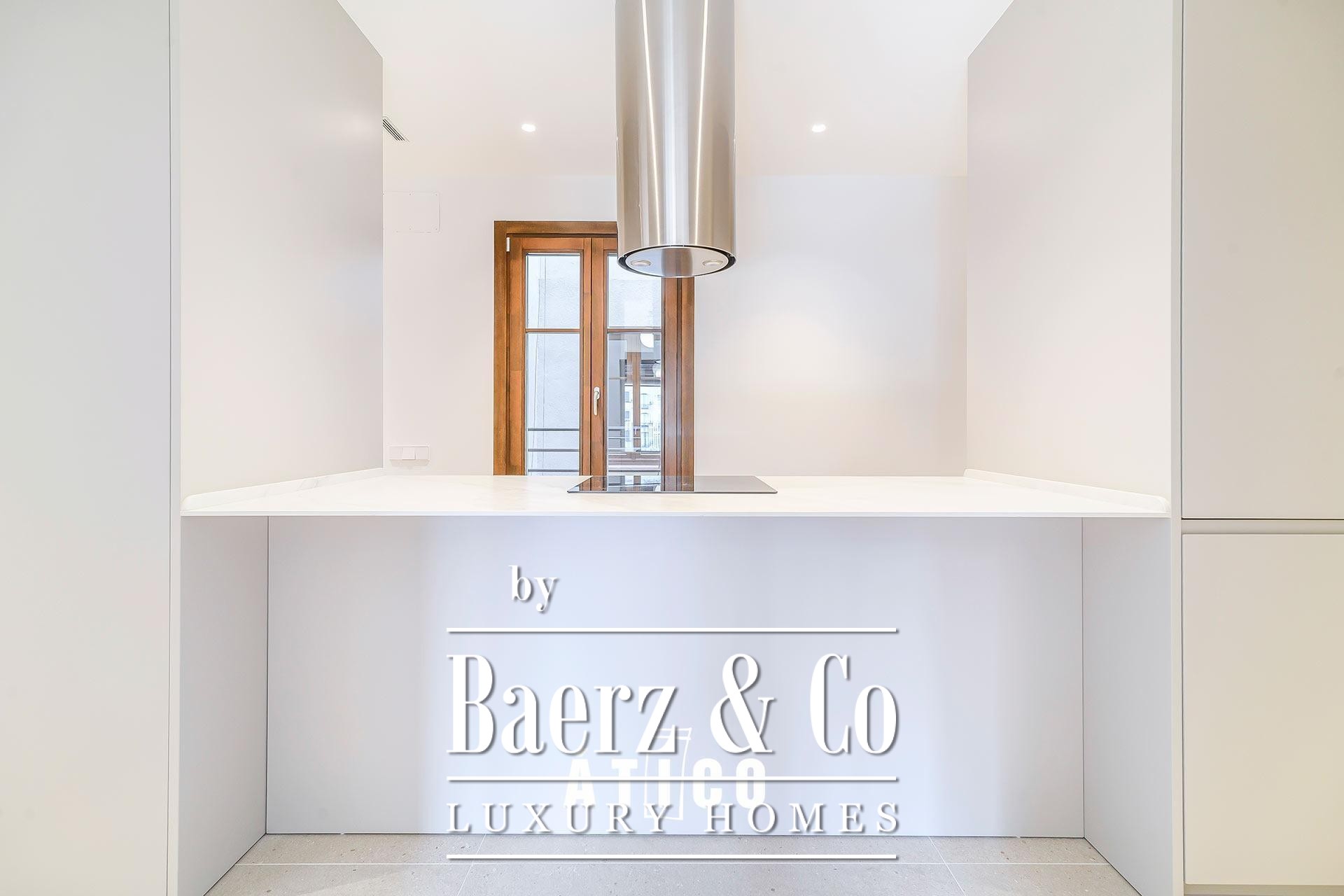 Le penthouse Barcelona situé dans le Carré d’Or redéfinit l’art de vivre urbain raffiné. Entièrement rénovée, cette résidence de 103,70 m² offre une distribution équilibrée et une sensation d’espace qui invite instantanément à la sérénité dès l’entrée. Le penthouse propose deux chambres et deux salles de bains soigneusement aménagées, chaque espace révélant une attention minutieuse portée aux détails, du choix des sols à la menuiserie sur mesure. La cuisine contemporaine allie fonctionnalité et esthétique, offrant des rangements généreux tout en préservant des lignes architecturales épurées.
