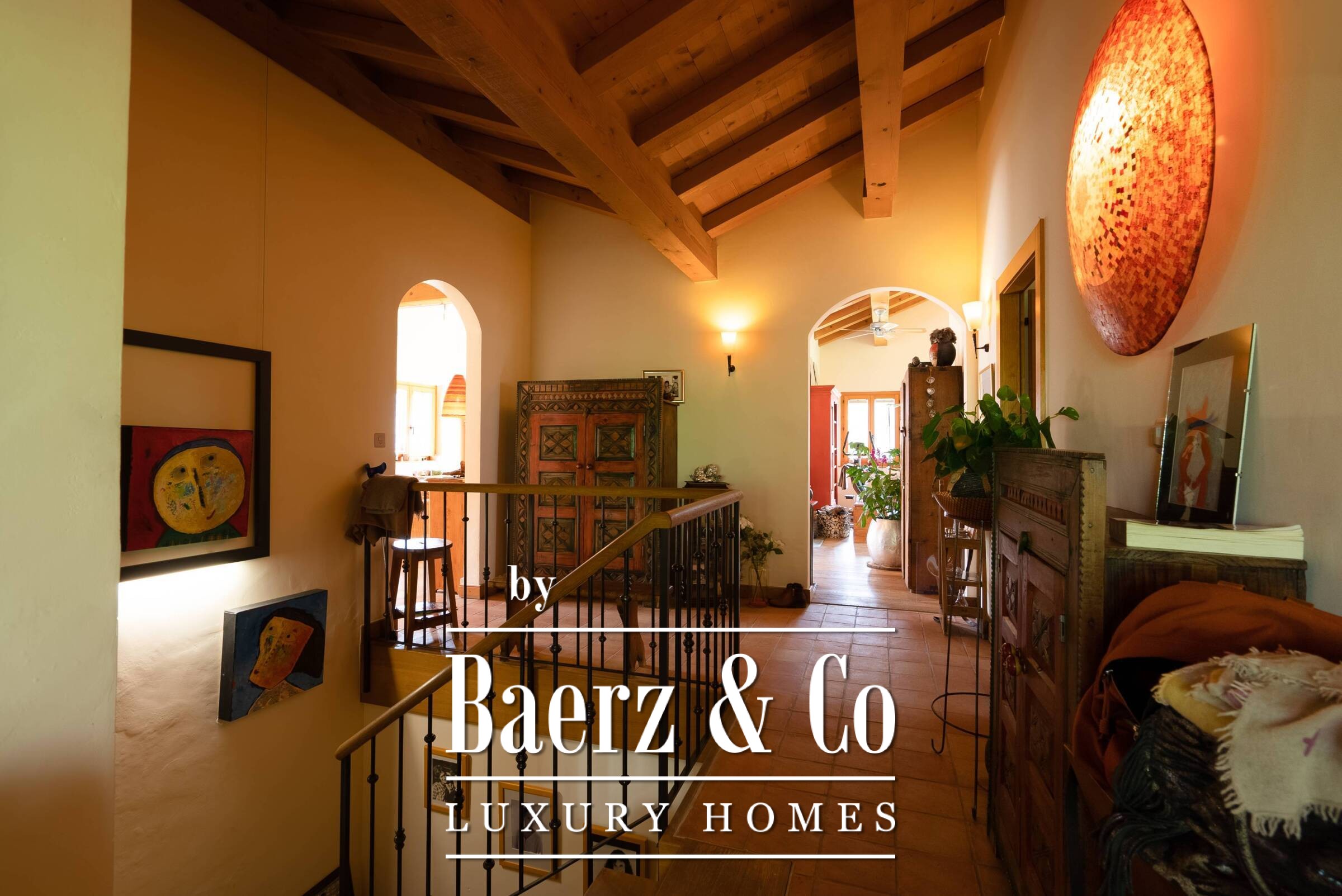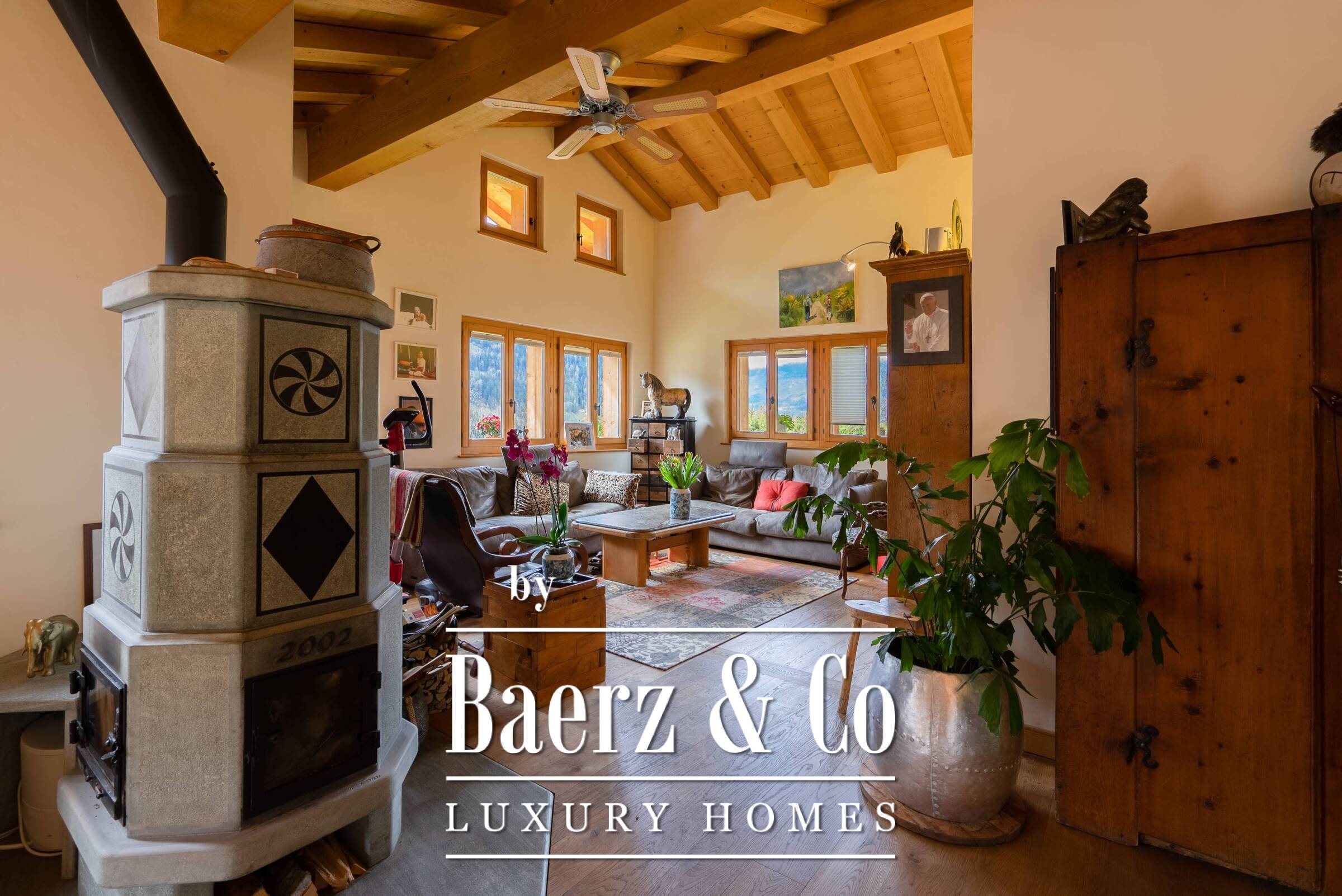 Le chalet s’étend sur 323 m², comprenant un vaste séjour sous une hauteur sous plafond impressionnante, une cuisine ouverte harmonieusement intégrée à la salle à manger et un accès direct à la terrasse ainsi qu’au balcon, baignant dans la lumière et le rythme du paysage. La suite principale dispose d’une salle de bain attenante, d’un dressing et d’un balcon privé. Le rez-de-chaussée accueille une chambre avec salle de bain, un espace de détente et un studio d’environ 30 m², chaque pièce offrant un lien serein avec le jardin. Parmi les prestations complémentaires figurent une cheminée, un sauna, une buanderie et une cave, toutes conçues pour enrichir le quotidien.