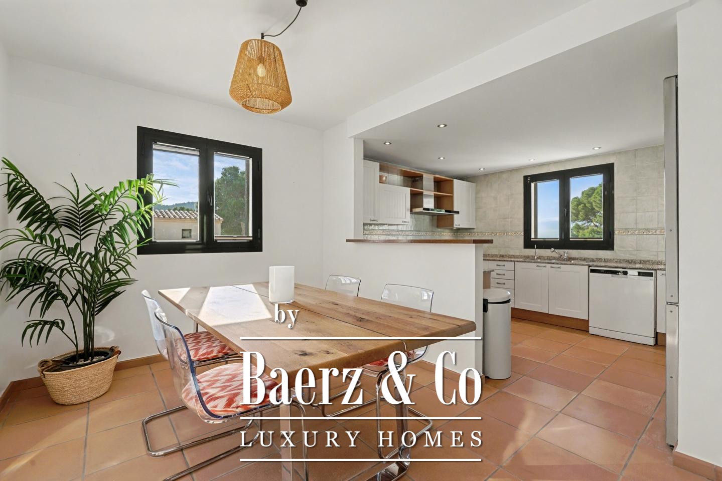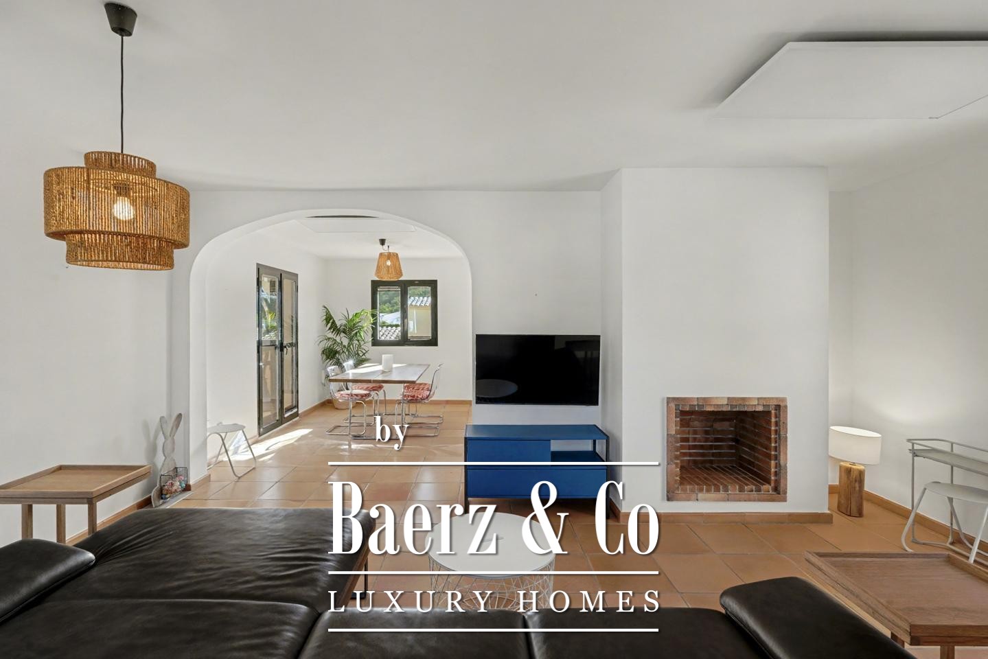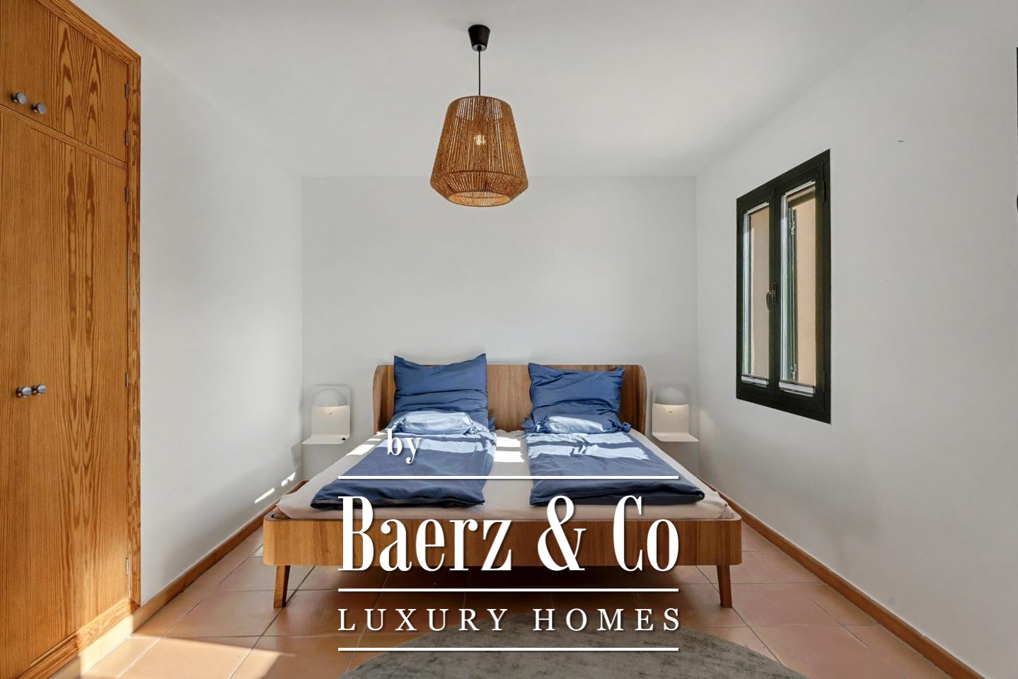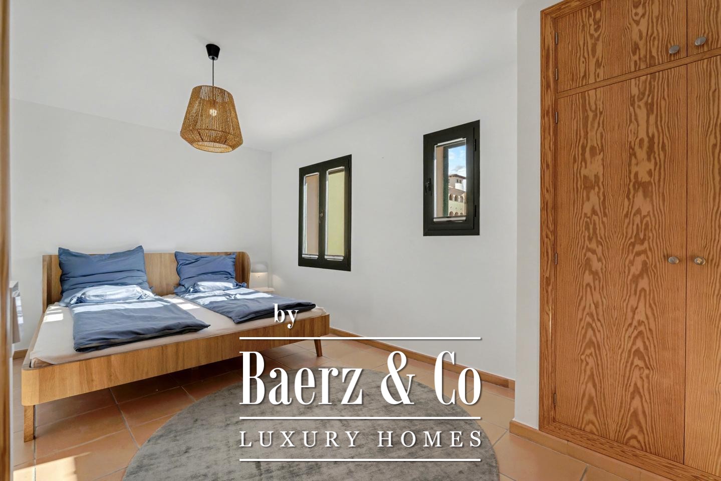 La chambre principale bénéficie d’une salle de bains privative, tandis que la chambre d’amis et la seconde salle de bains indépendante préservent confort et sérénité. Accédez à la terrasse privée sur le toit par l’escalier de la tour pour profiter du soleil toute la journée et de vues panoramiques sur la baie. Climatisation, système d’alarme et parking commun garantissent confort et sécurité.