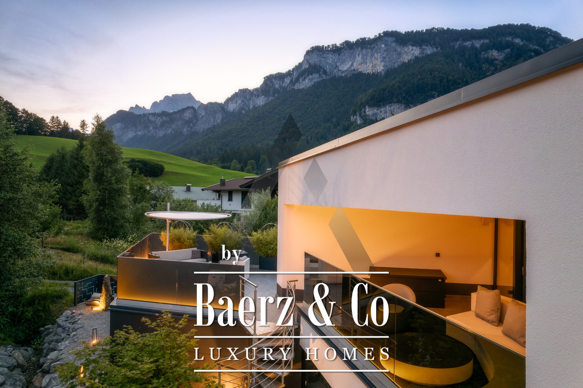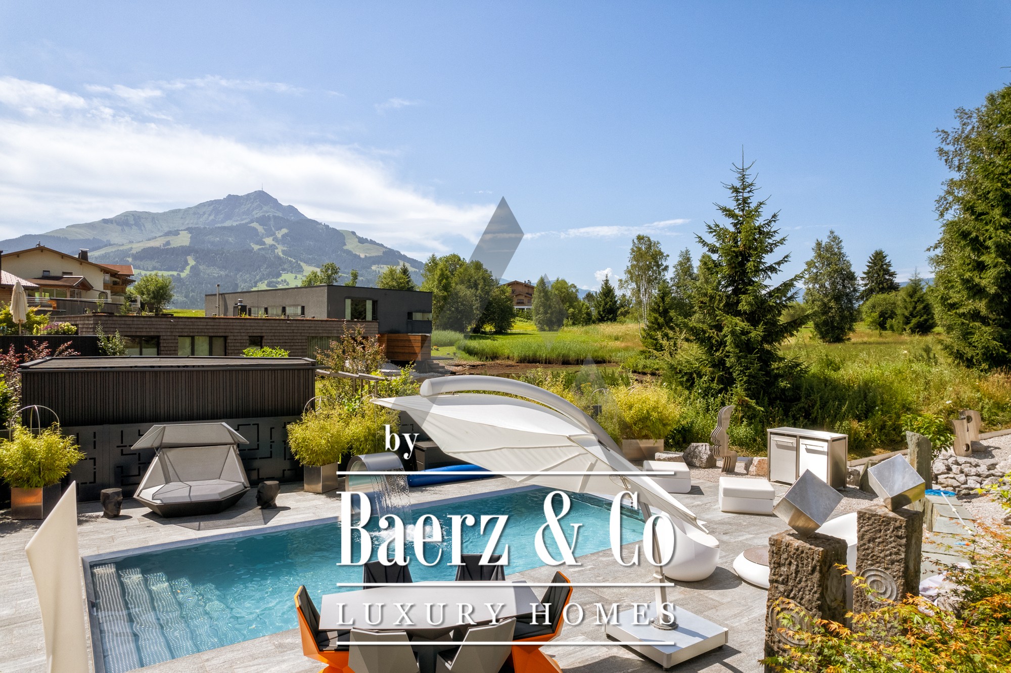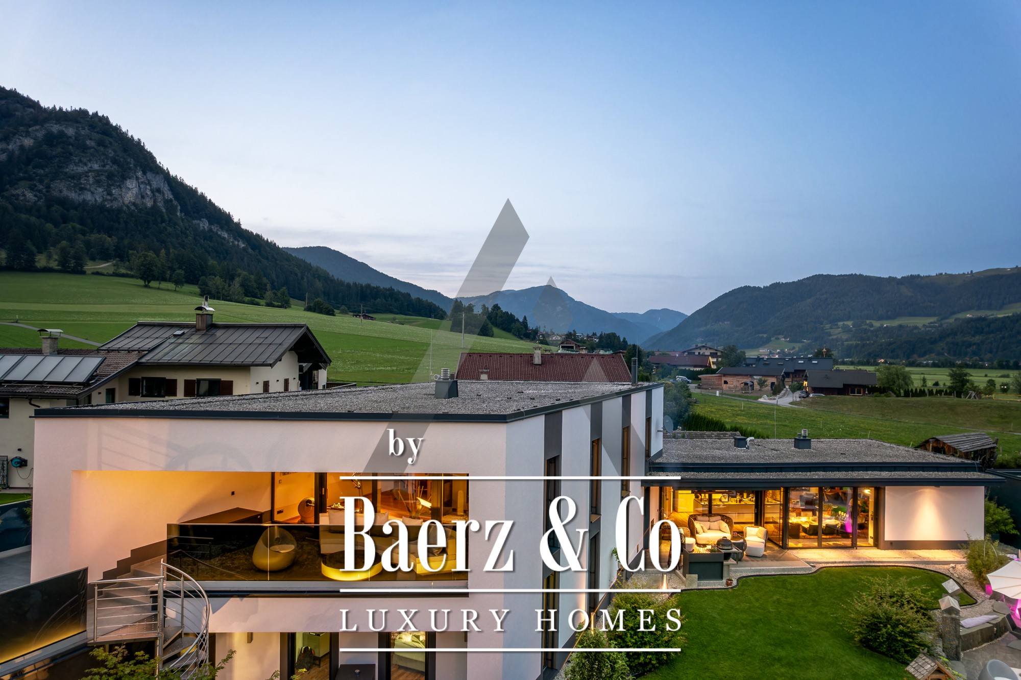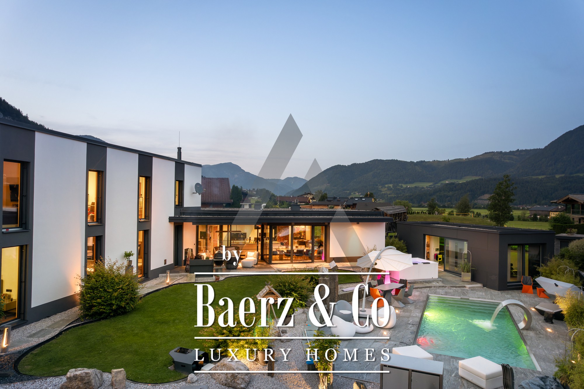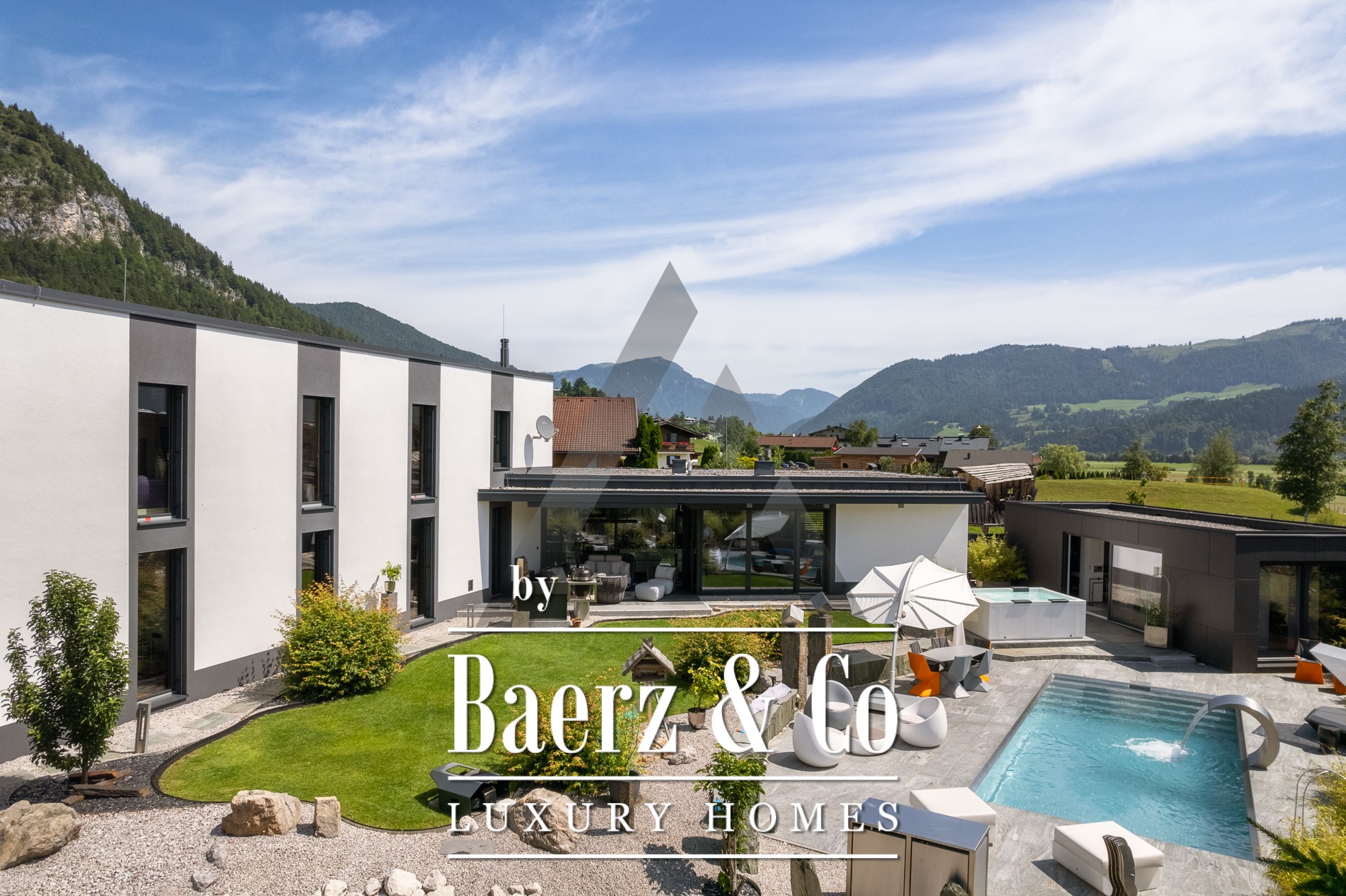 Cette maison individuelle à St. Johann in Tirol bénéficie d’un emplacement paisible et baigné de soleil, offrant une vue spectaculaire sur le Kitzbühel Horn et le massif du Wilder Kaiser. Cette propriété contemporaine, développant 418 m² habitables sur un terrain de 1 186 m², incarne l’essence d’un art de vivre alpin raffiné. Un paysage idyllique se déploie avec un étang, des ruisseaux paysagers, de vastes terrasses et des panoramas à couper le souffle. L’espace extérieur est sublimé par une piscine en acier inoxydable, un spa design Treesse et un sauna, invitant à des matinées sereines et des après-midis ressourçants.