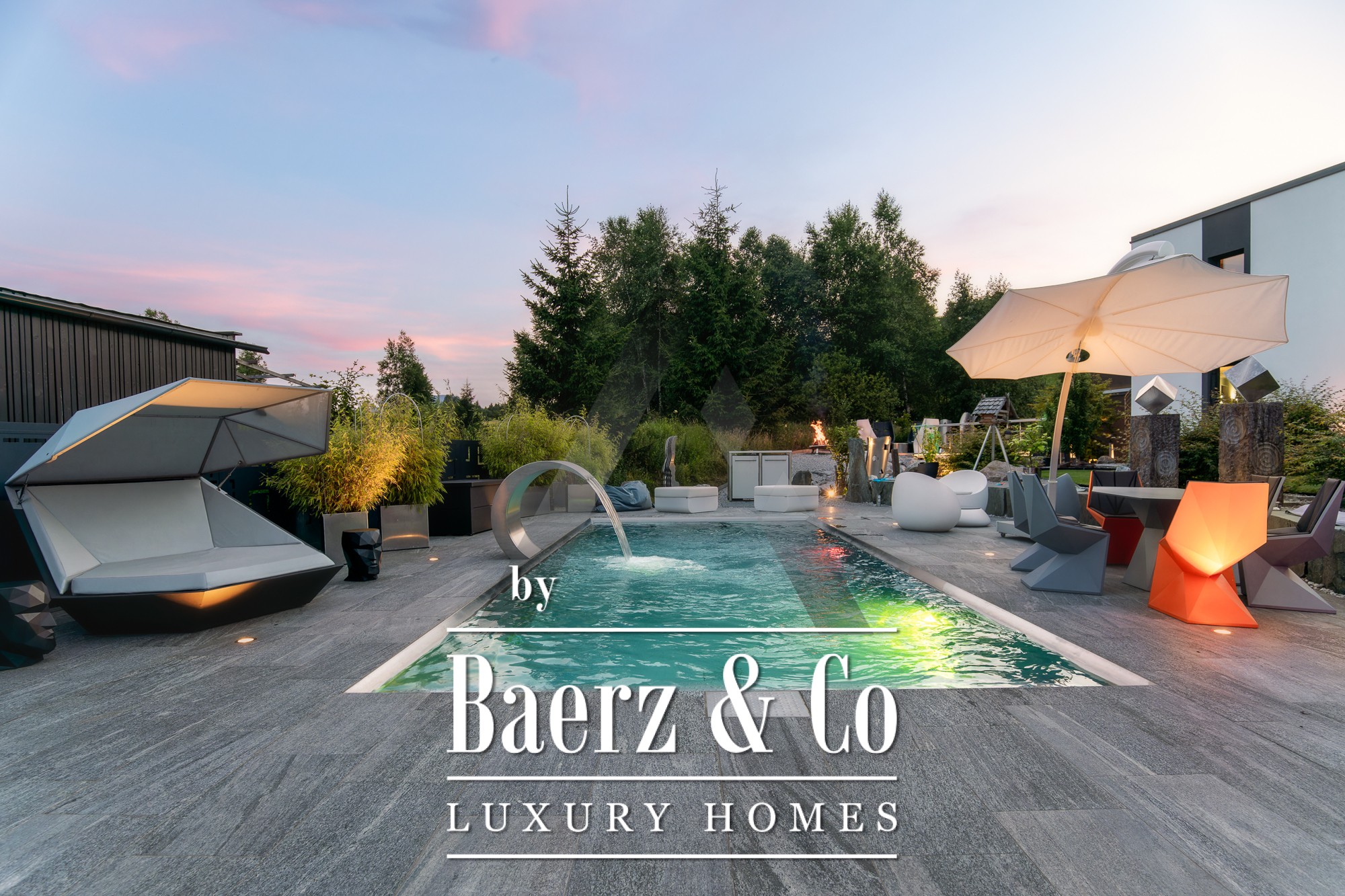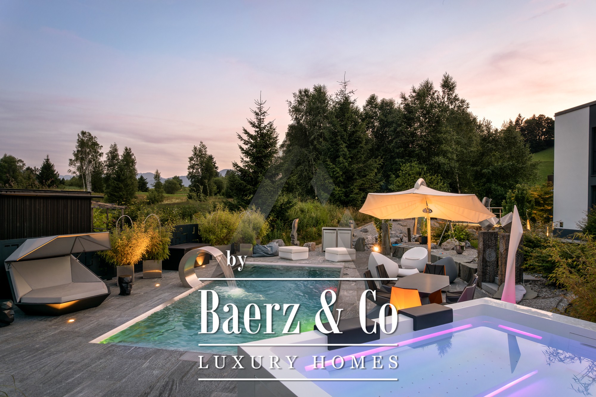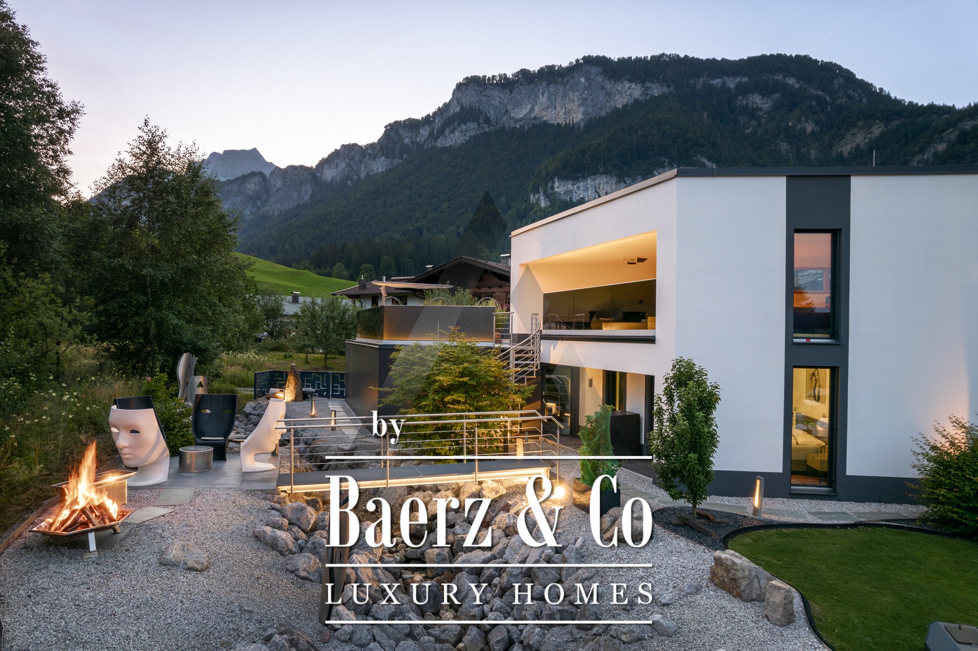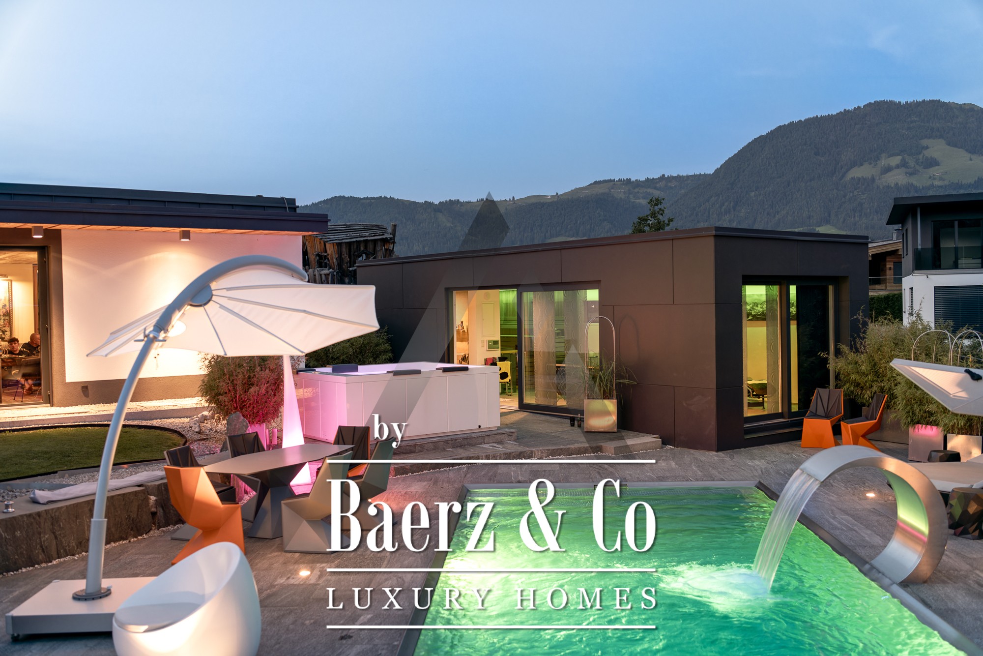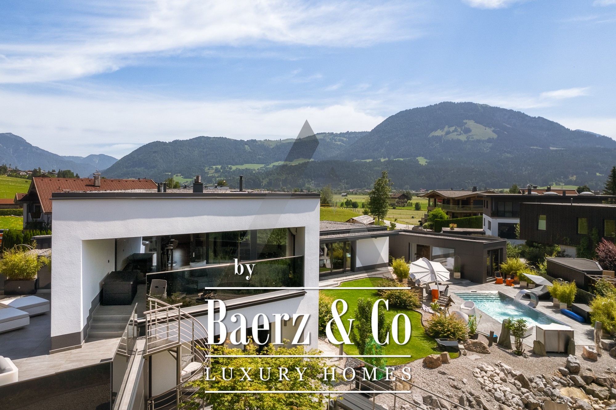 Cette maison individuelle à St. Johann in Tirol bénéficie d’un emplacement paisible et baigné de soleil, offrant une vue spectaculaire sur le Kitzbühel Horn et le massif du Wilder Kaiser. Cette propriété contemporaine, développant 418 m² habitables sur un terrain de 1 186 m², incarne l’essence d’un art de vivre alpin raffiné. Un paysage idyllique se déploie avec un étang, des ruisseaux paysagers, de vastes terrasses et des panoramas à couper le souffle. L’espace extérieur est sublimé par une piscine en acier inoxydable, un spa design Treesse et un sauna, invitant à des matinées sereines et des après-midis ressourçants.