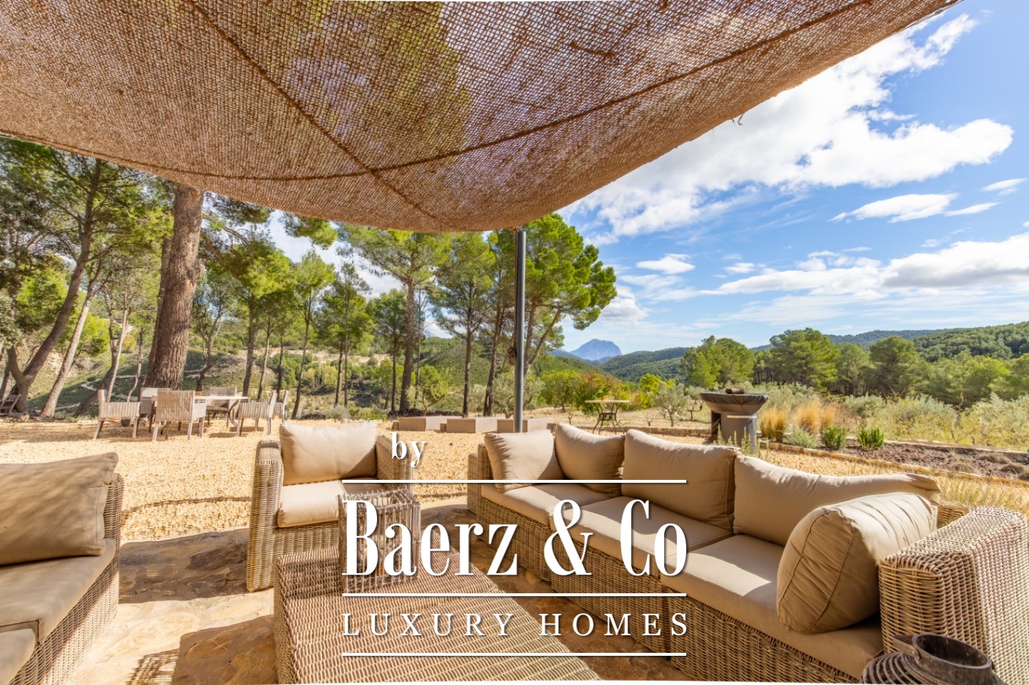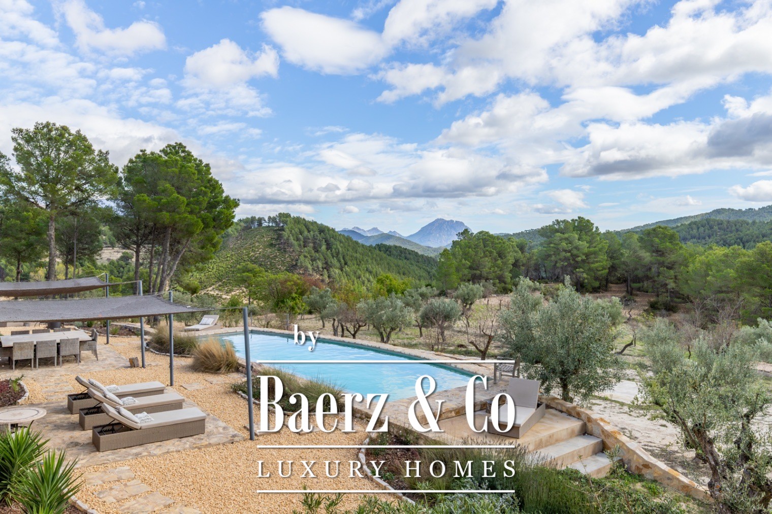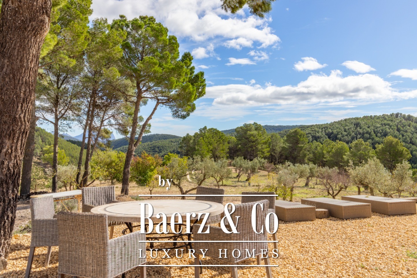 La Finca Torremanzanas est une propriété d’exception, rare dans l’une des régions intérieures les plus paisibles d’Espagne. Située sur 18 hectares de terres méditerranéennes verdoyantes à 850 mètres d’altitude, cet élégant domaine rénové n’est qu’à 3 km du village de Torremanzanas et offre des vues panoramiques sur le Puig Campana. Entièrement rénovée en 2022, la maison principale de 450 m² marie finitions contemporaines raffinées et caractère méditerranéen authentique. Chaque espace de vie, lumineux et épuré, s’ouvre sur un paysage planté d’oliviers, d’amandiers et de noyers.