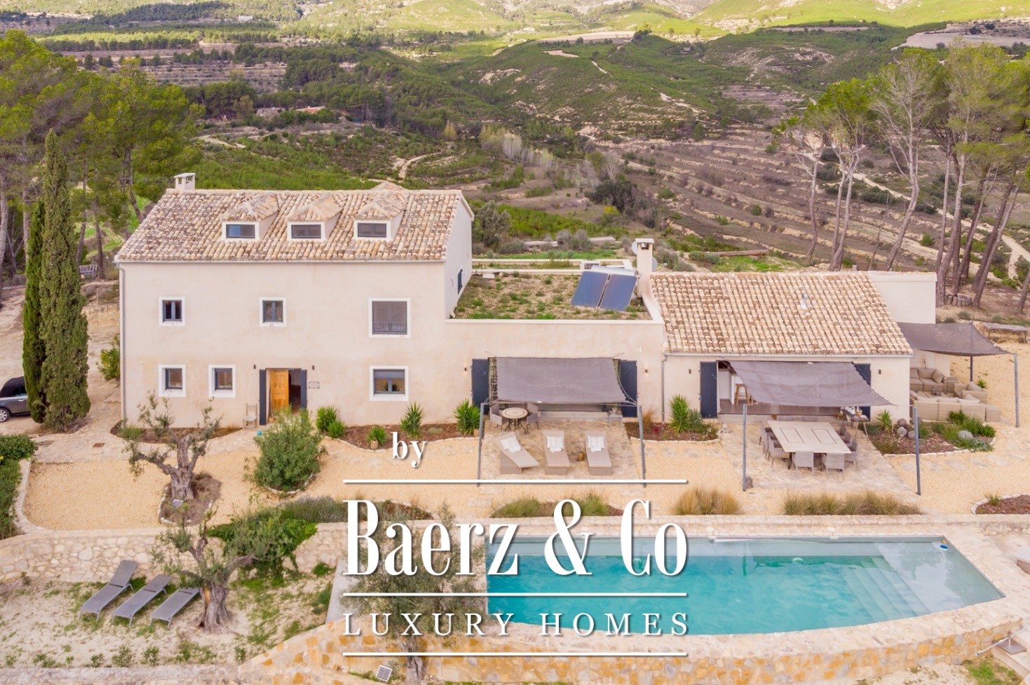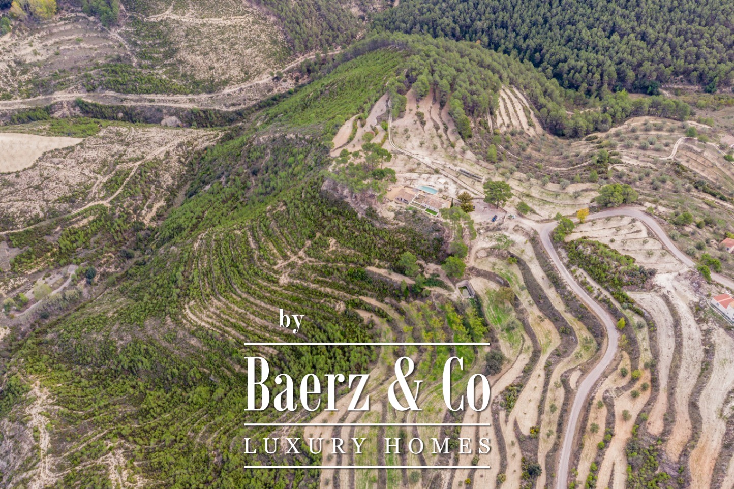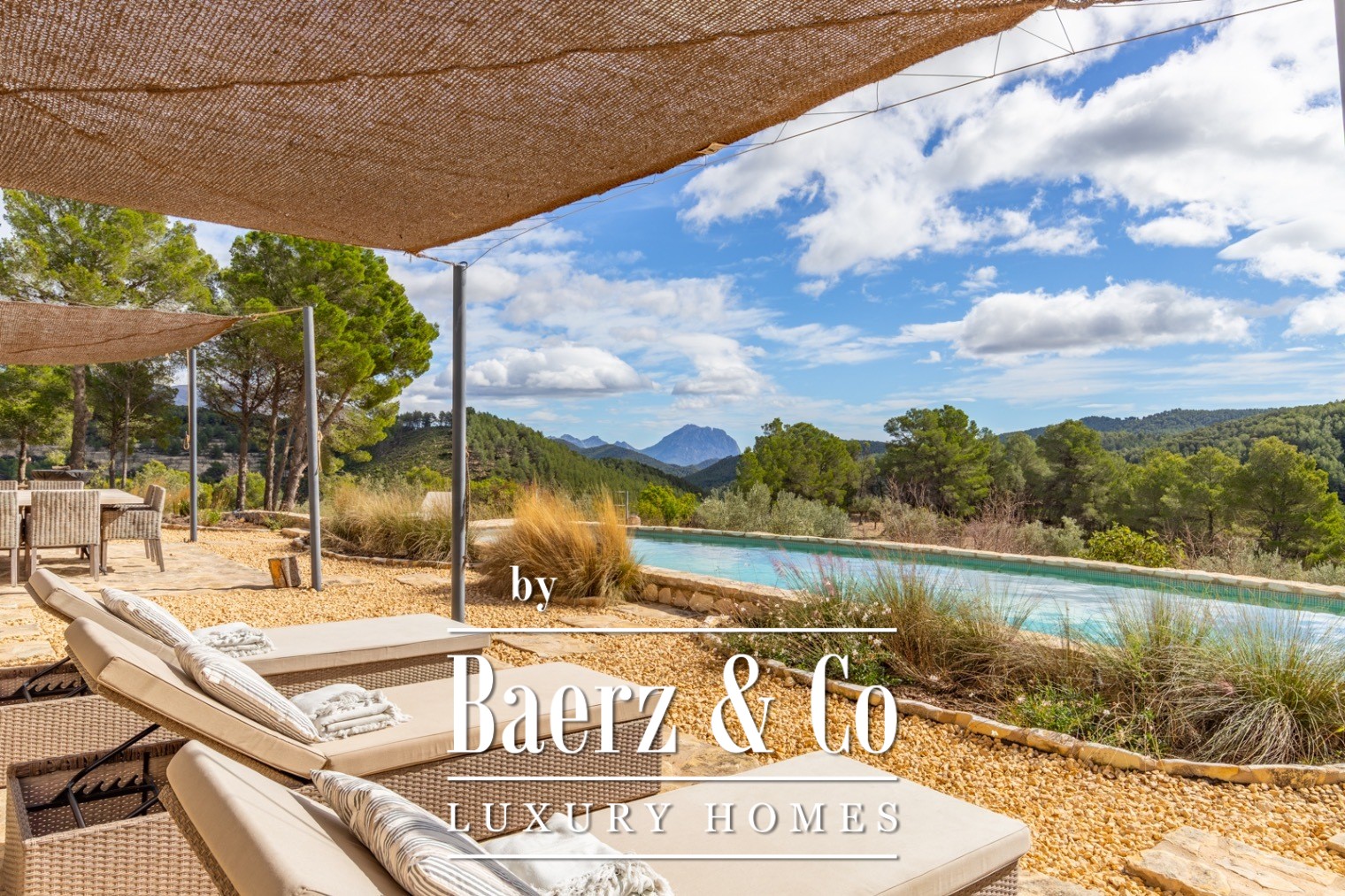 La Finca Torremanzanas est une propriété d’exception, rare dans l’une des régions intérieures les plus paisibles d’Espagne. Située sur 18 hectares de terres méditerranéennes verdoyantes à 850 mètres d’altitude, cet élégant domaine rénové n’est qu’à 3 km du village de Torremanzanas et offre des vues panoramiques sur le Puig Campana. Entièrement rénovée en 2022, la maison principale de 450 m² marie finitions contemporaines raffinées et caractère méditerranéen authentique. Chaque espace de vie, lumineux et épuré, s’ouvre sur un paysage planté d’oliviers, d’amandiers et de noyers.