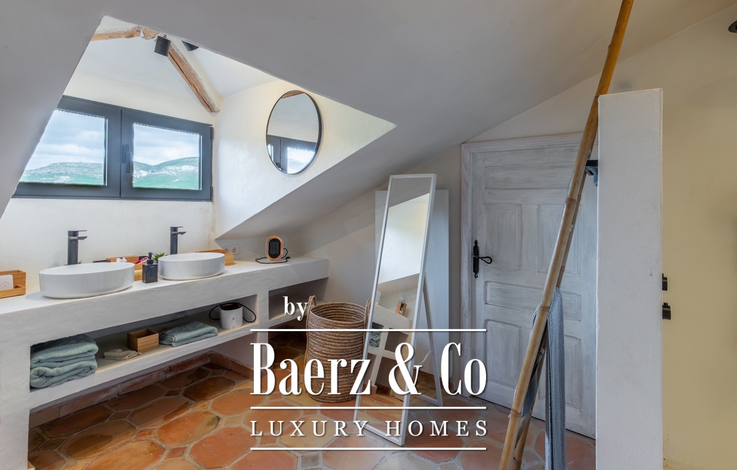 Sept chambres et cinq salles de bains, dont deux suites et une salle de bain extérieure supplémentaire, garantissent confort et intimité. La cuisine est équipée d’appareils Miele et Smeg. La lumière inonde de vastes terrasses, tandis qu’une grande piscine chauffée et des espaces entièrement clôturés renforcent un sentiment de sécurité et de sérénité. Les infrastructures de la propriété procurent une véritable autonomie, avec un stockage d’eau de source naturelle de 21 500 litres, 35 panneaux solaires équipés de batteries au lithium avancées et un générateur de secours de 23 kVA.