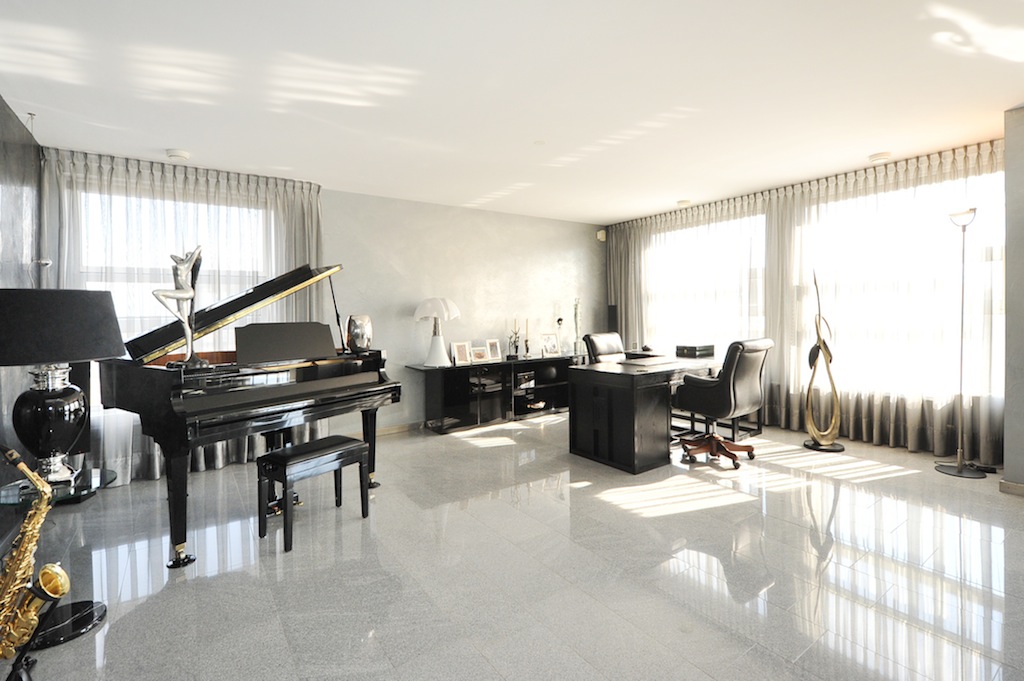 Op de begane grond is aan de voorzijde van het complex een representatieve hoofdentree met videobewaking, in de centrale hal bevinden zich de brievenbussen en het bellentableau, u kunt met twee liften naar de 10e verdieping, waar alleen dit appartement zich bevindt.