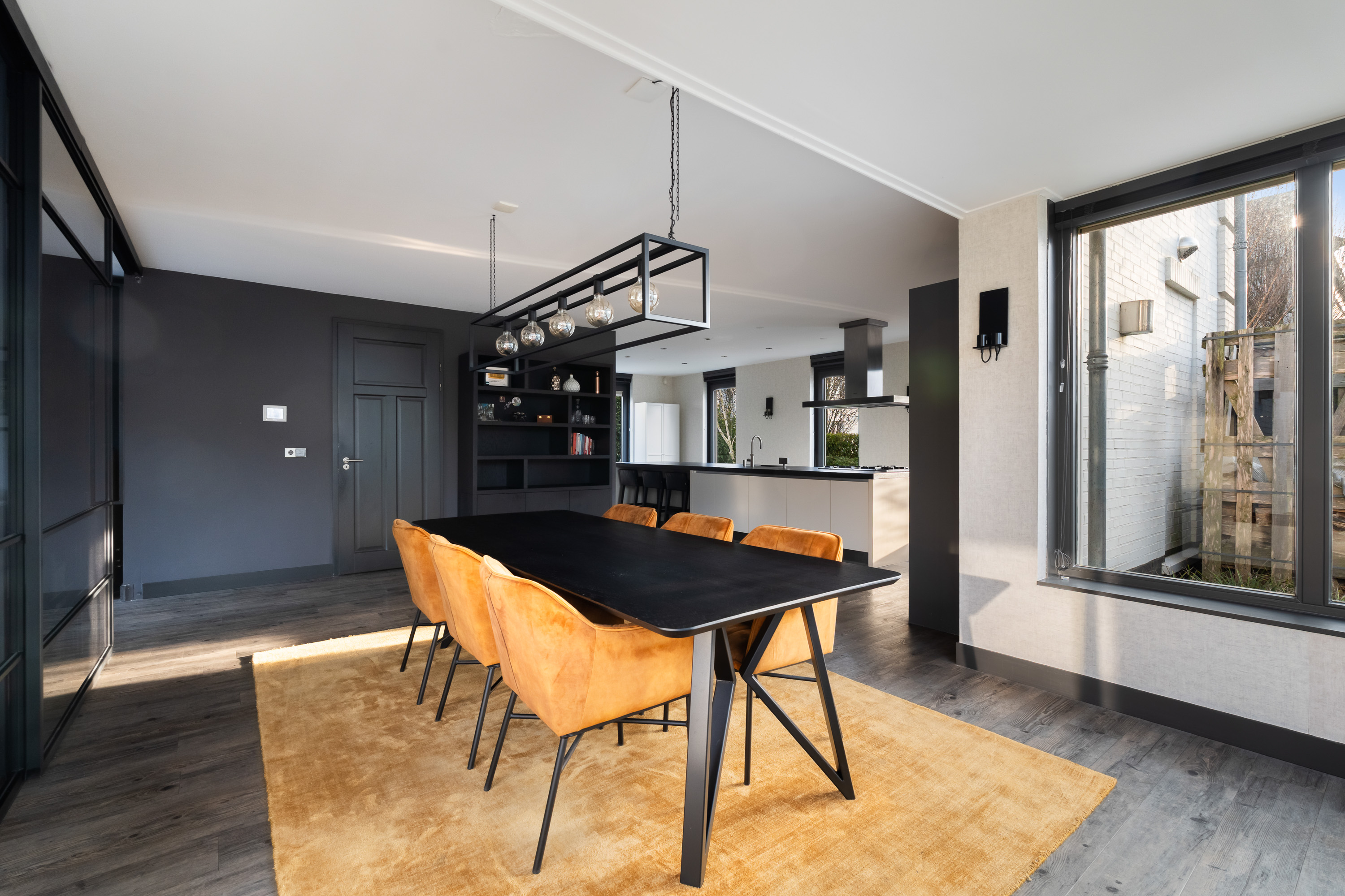 Aangrenzend aan de keuken bevindt zich het eetgedeelte met voldoende ruimte voor een royale eettafel.