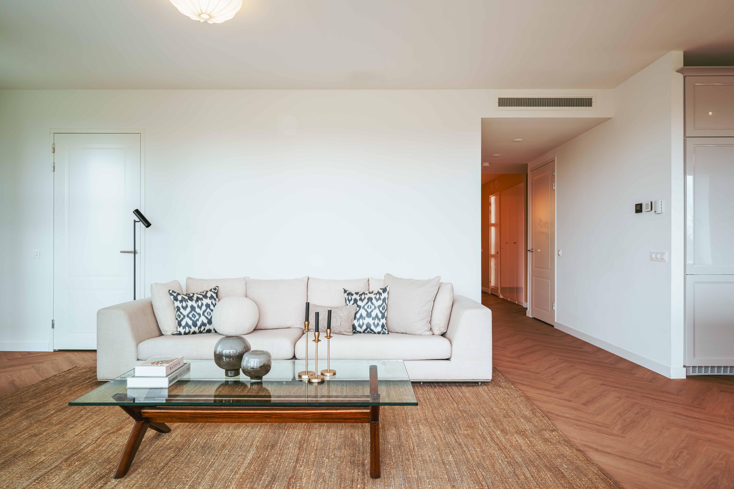 De mooie, grote woonkamer heeft veel natuurlijk licht via de vele ramen. Het Siematic kookeiland is een ware blikvanger. De keuken is uitgerust met diverse inbouwapparatuur, te weten: een inductiekookplaat met geïntegreerde afzuiging, oven (zelfreinigend), combi oven-magnetron, Quooker en een grote koelkast. Er is ook een aparte pantry aanwezig met ruimte voor een wijnklimaatkast en vriezer. Het zonnige balkon is gelegen op het zuid-westen en biedt een heerlijke plek om te ontspannen en te genieten van het vrije uitzicht.