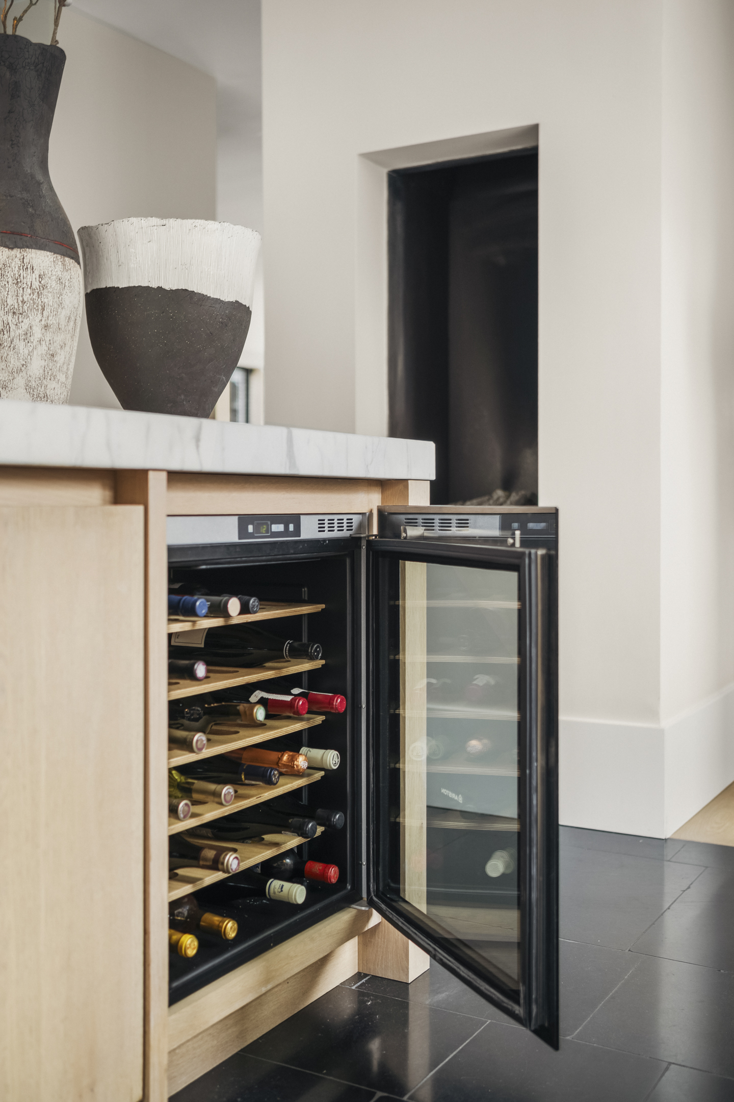 Een afzonderlijk gedeelte is sfeervol ingericht als wijnkelder, een bijzonder en stijlvol detail voor de liefhebber. Daarnaast is er volop bergruimte aanwezig. Tevens bevinden zich hier de aansluitingen voor wasmachine en droger.