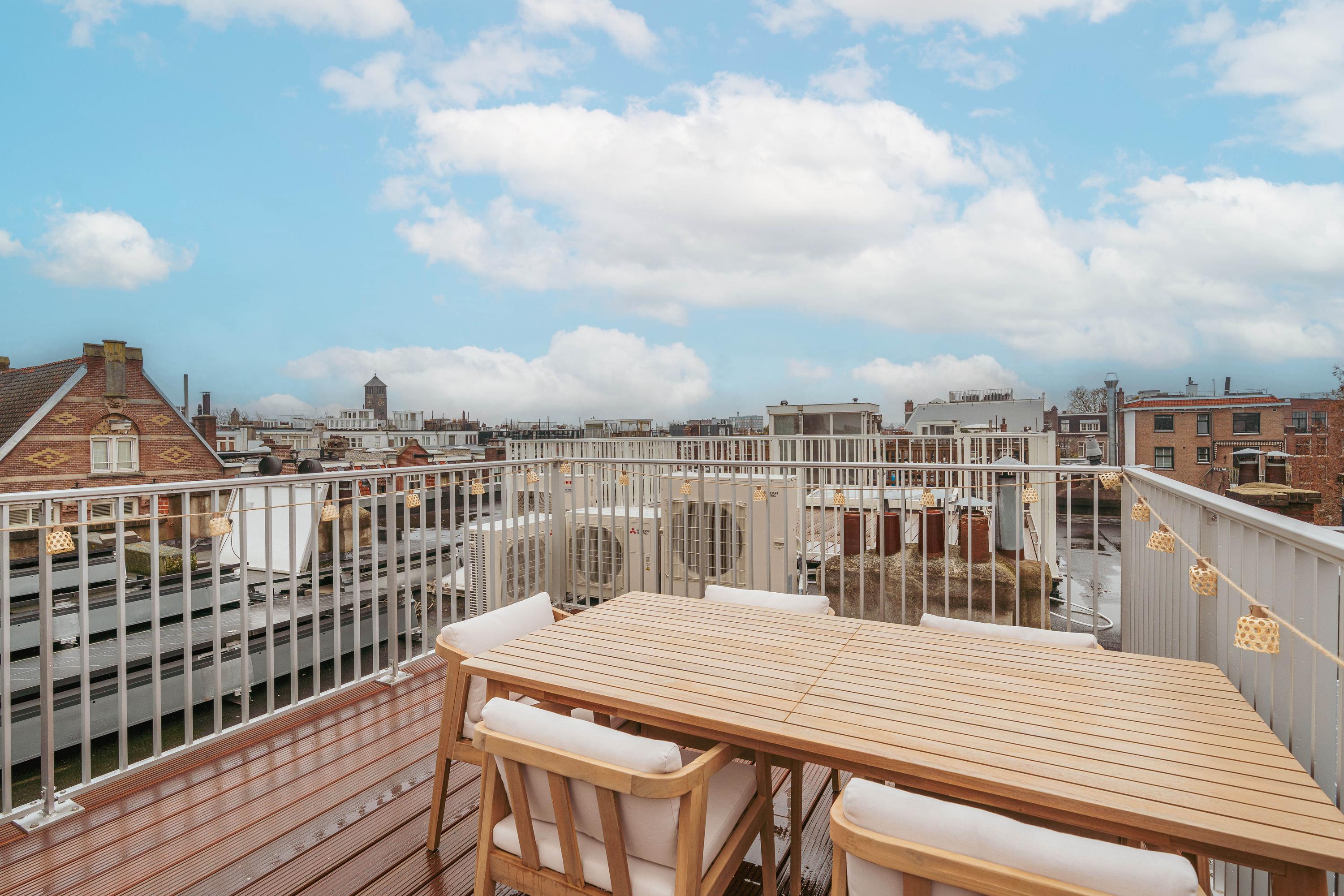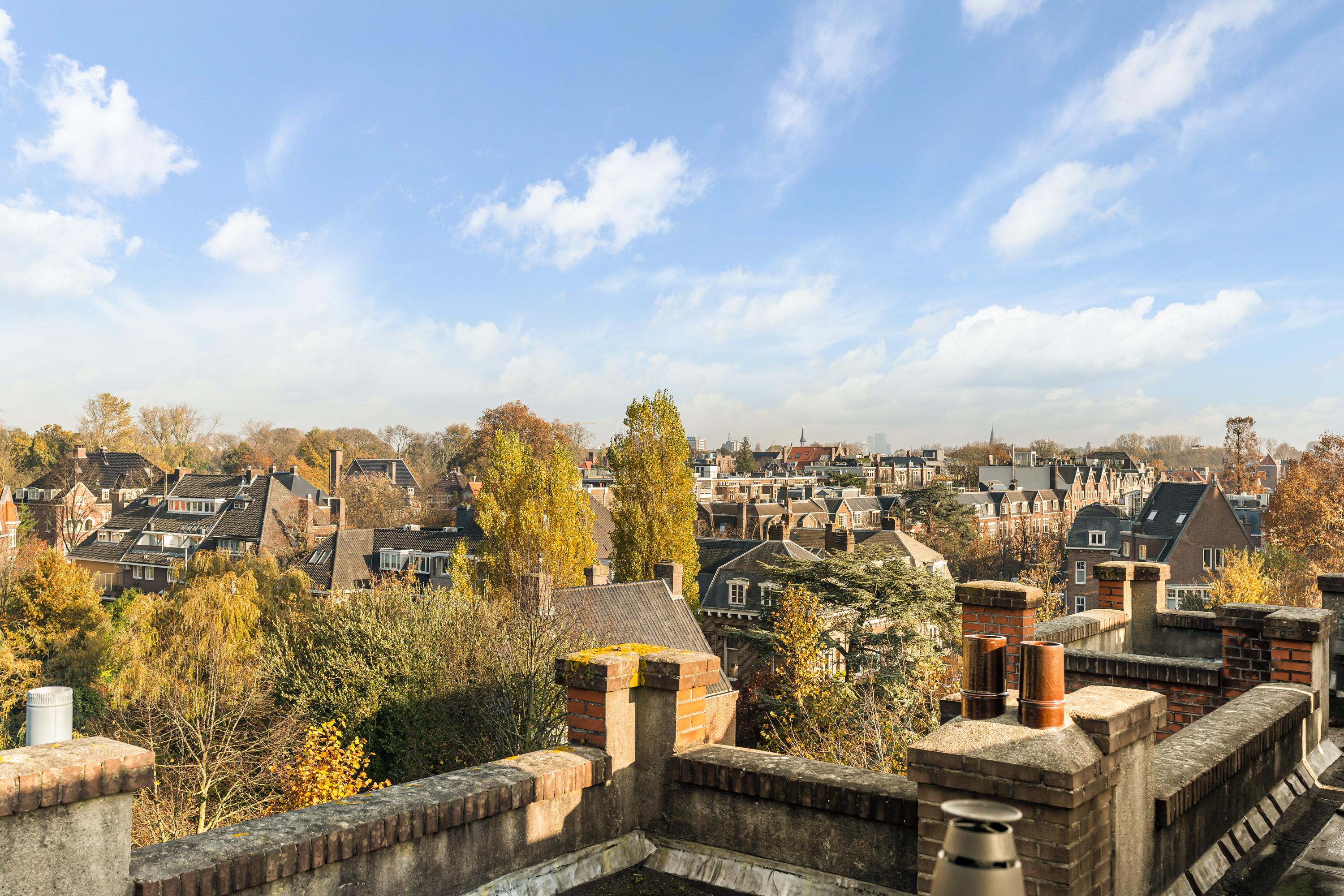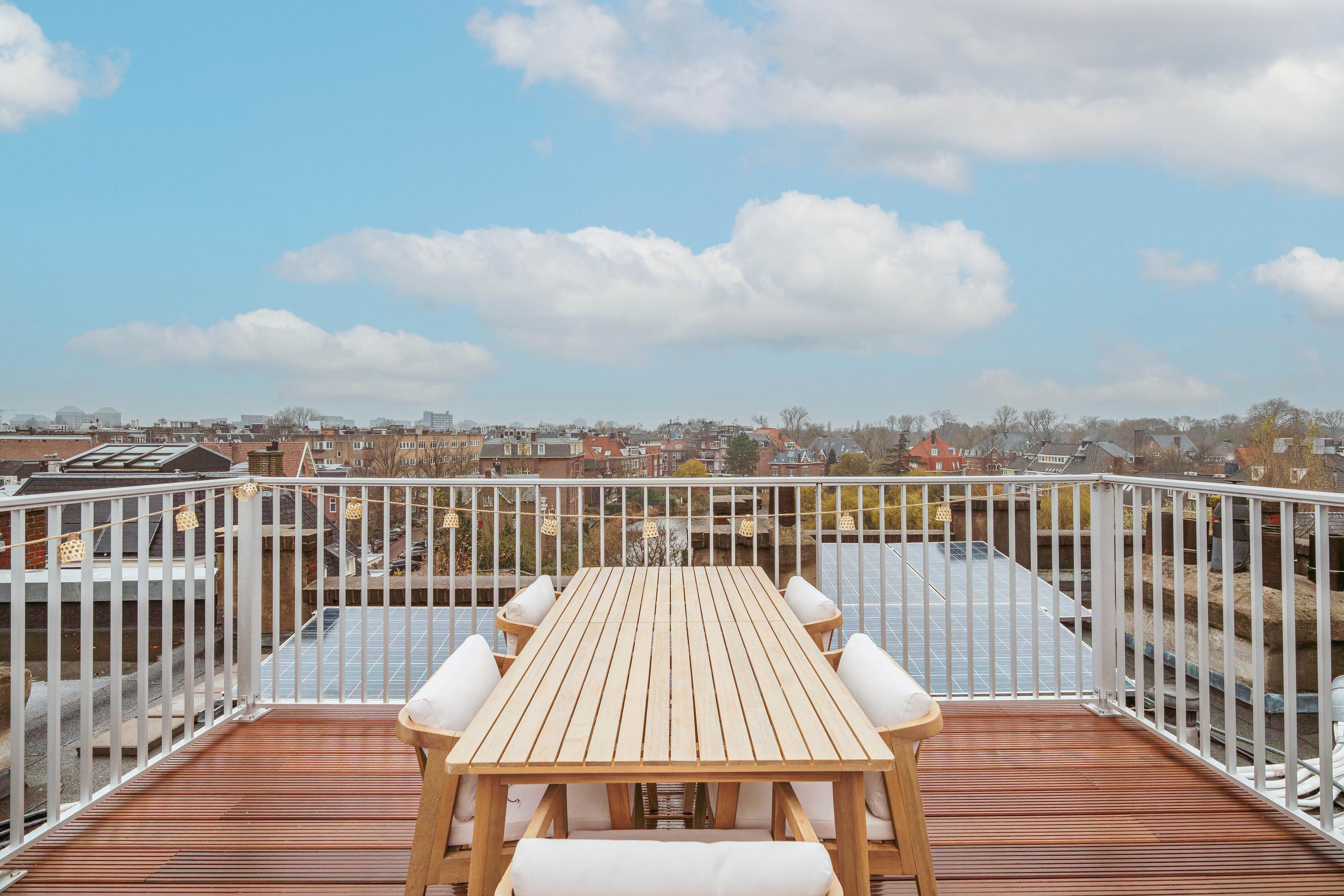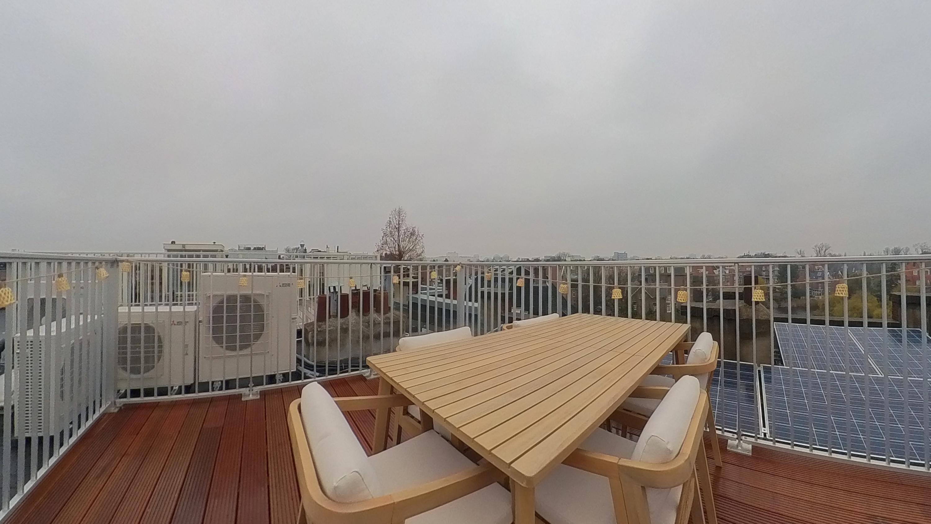 - Prachtig nieuw gecreëerd dakterras met wijds uitzicht over de stad en de statige vijver van de Sophialaan