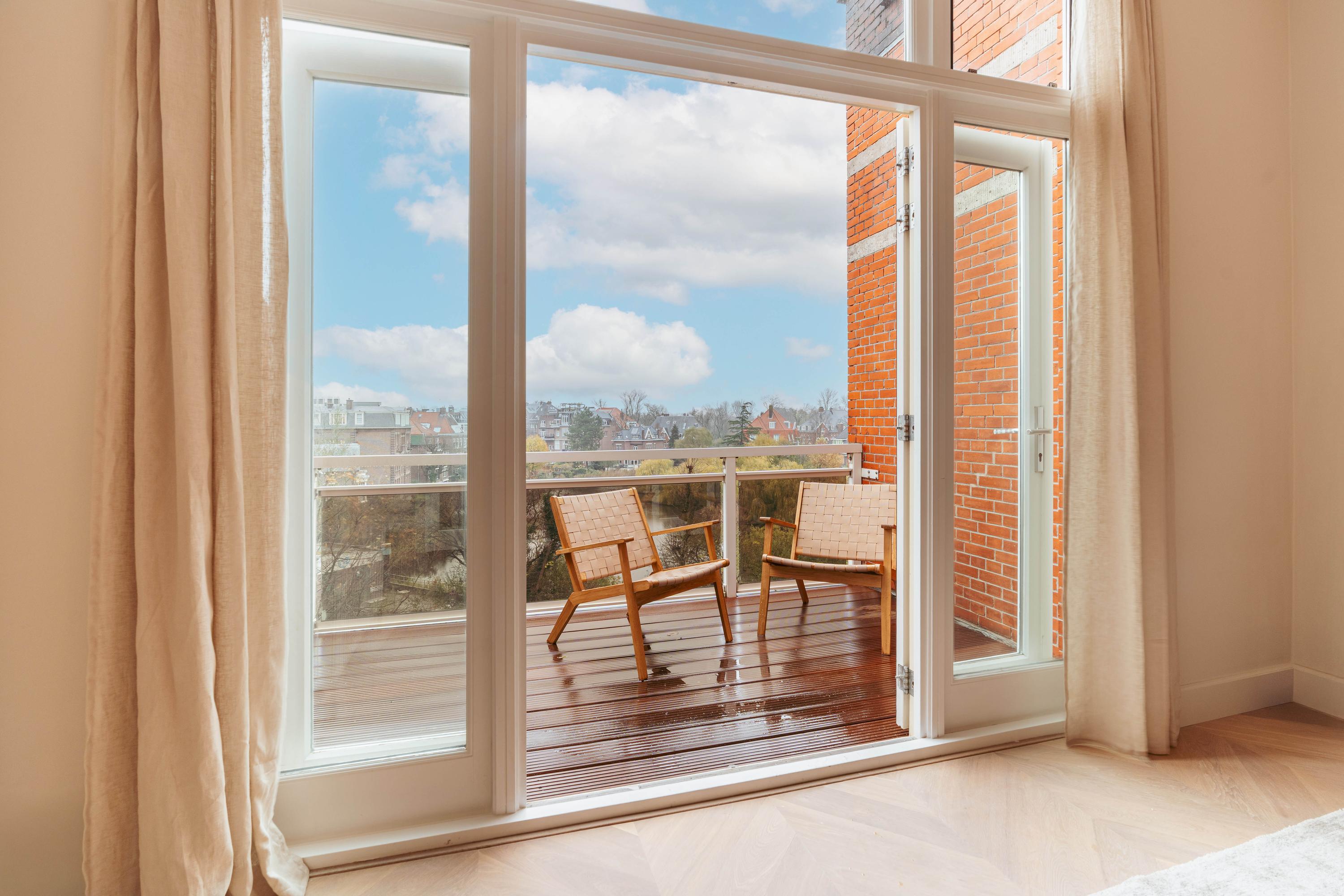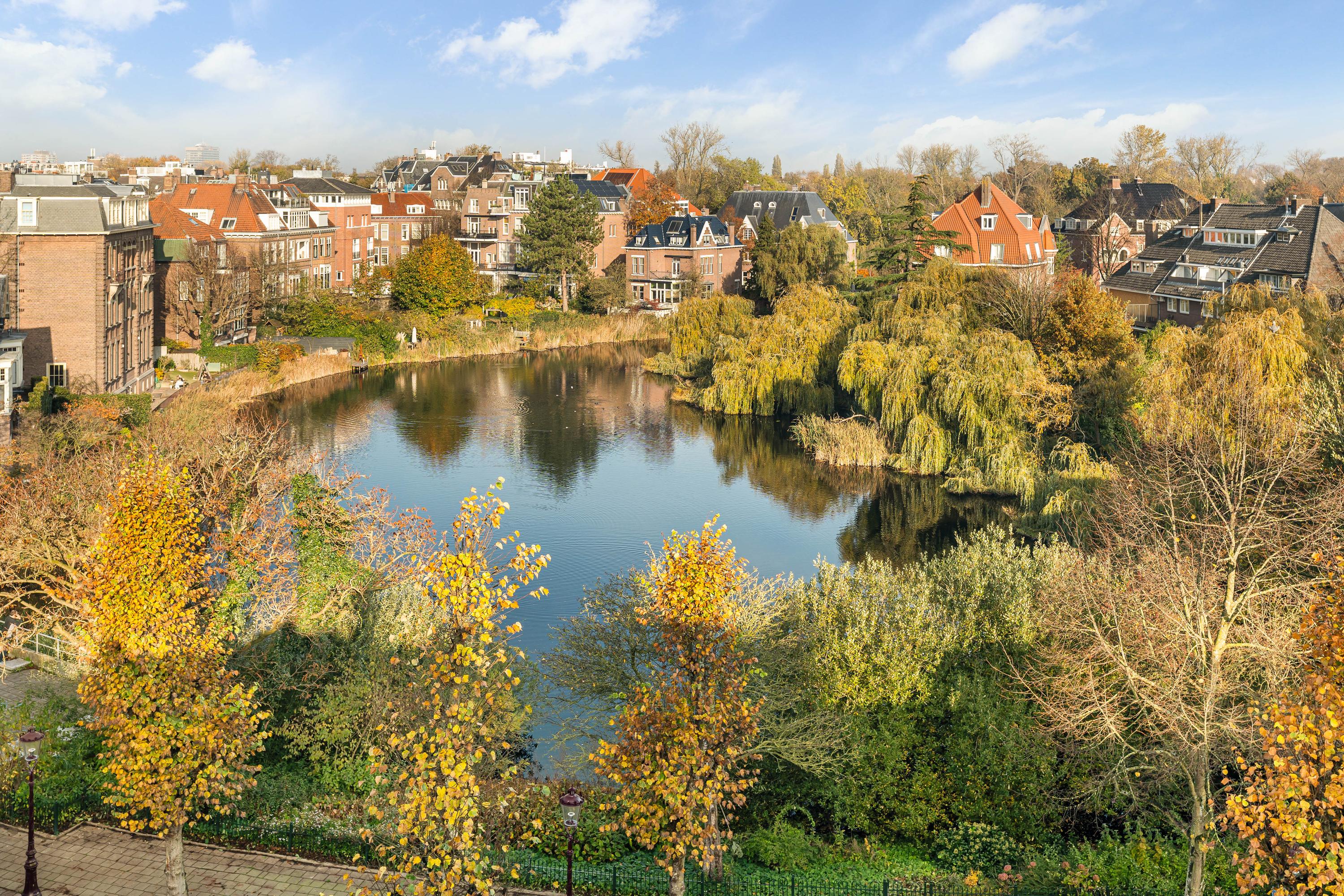 Wat meteen in het oog springt, is het unieke uitzicht over de grote vijver aan de Sophialaan, grenzend aan het Vondelpark. Dit uitzicht is door de hele ruimte zichtbaar, zelfs vanaf de keuken. Via de openslaande deuren betreedt u het diepe balkon, dat een panoramisch zicht biedt over de vijver en de woning voorziet van veel daglicht.