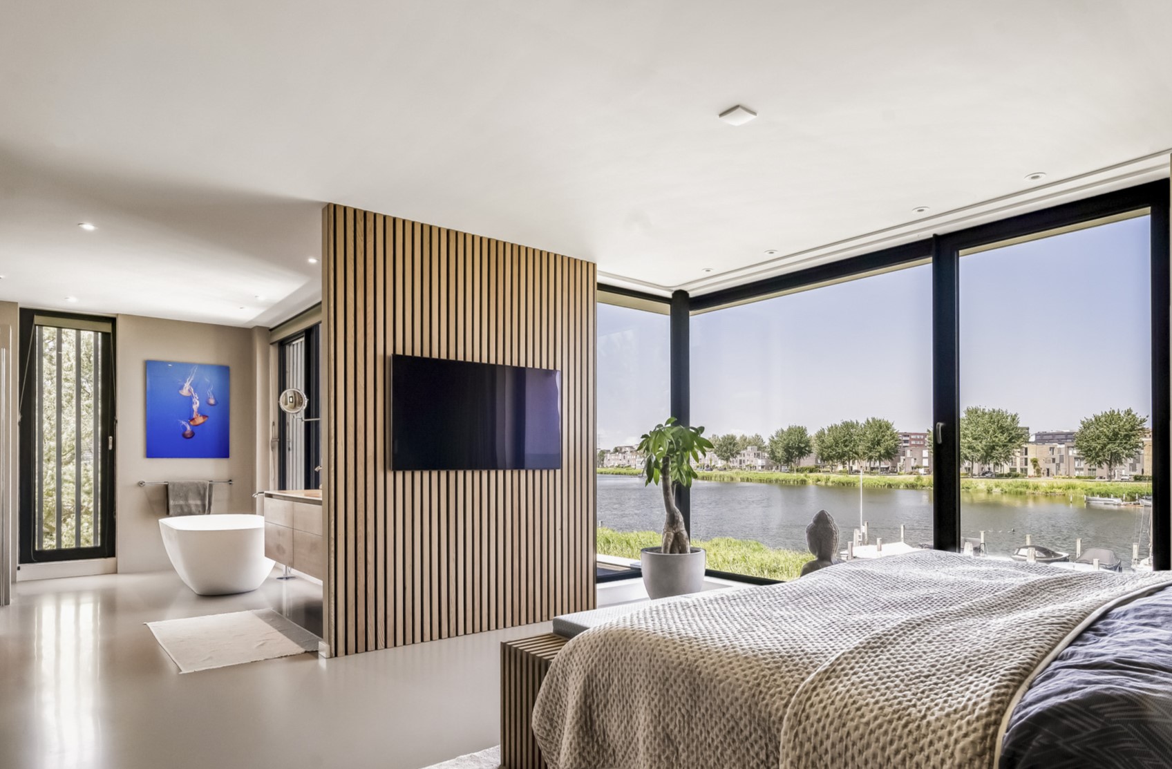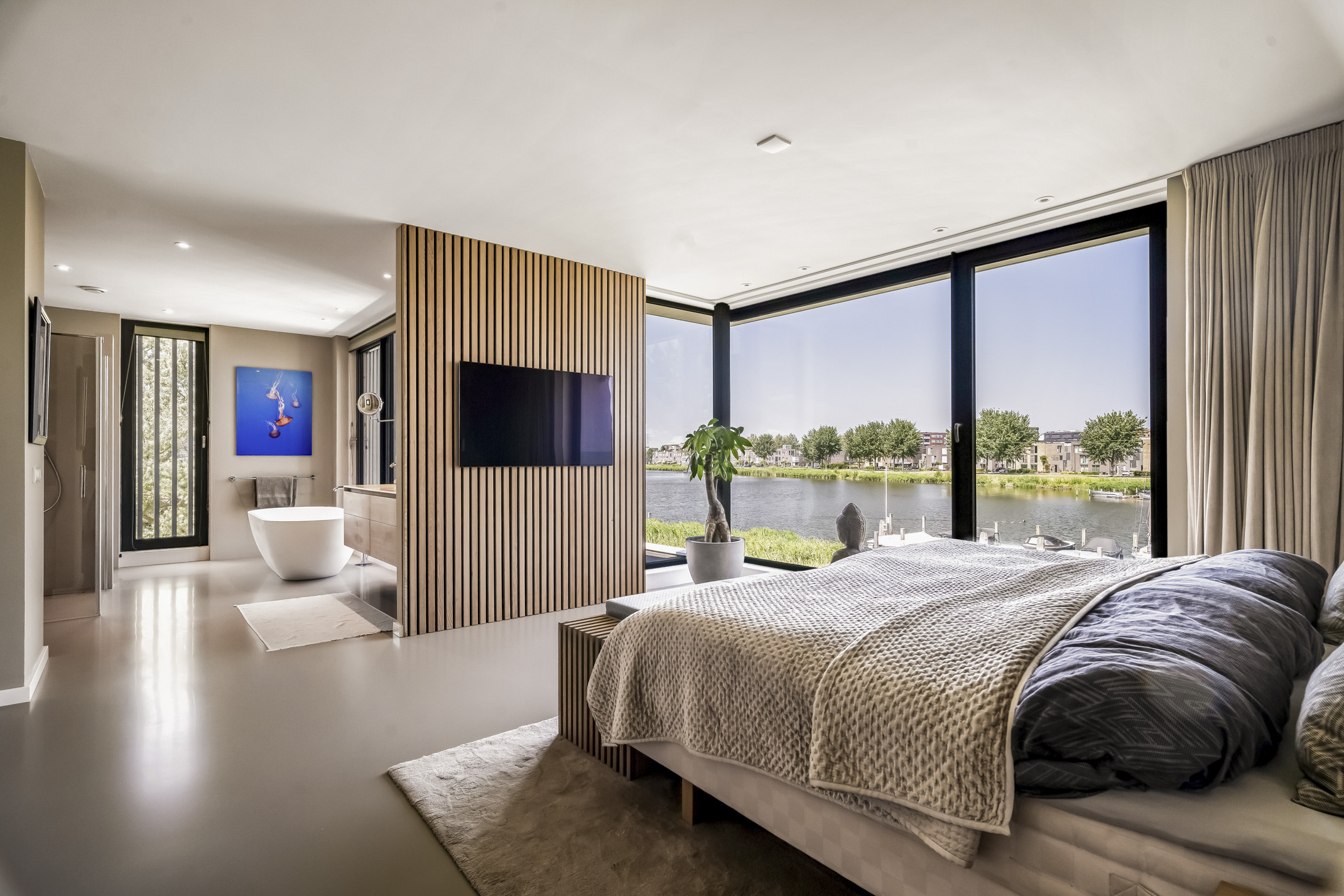 - Riante living met grote glaspartijen en fantastisch uitzicht over het water