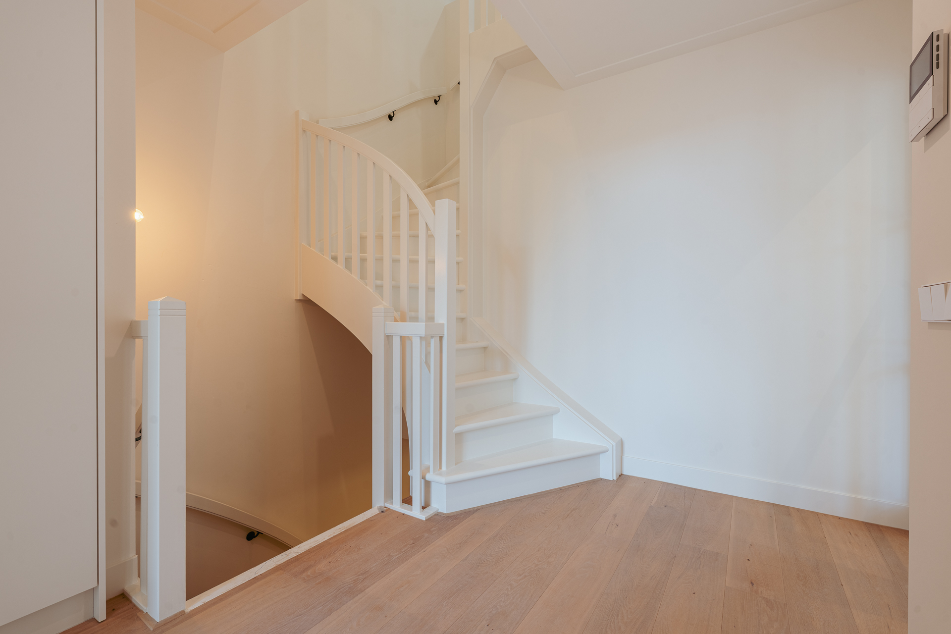 De woning beschikt over een ruime eigen entree op de begane grond. Via de hal met trapopgang bereikt u de derde verdieping, waar de woning zich bevindt. Dit zorgt voor optimale privacy en comfort.