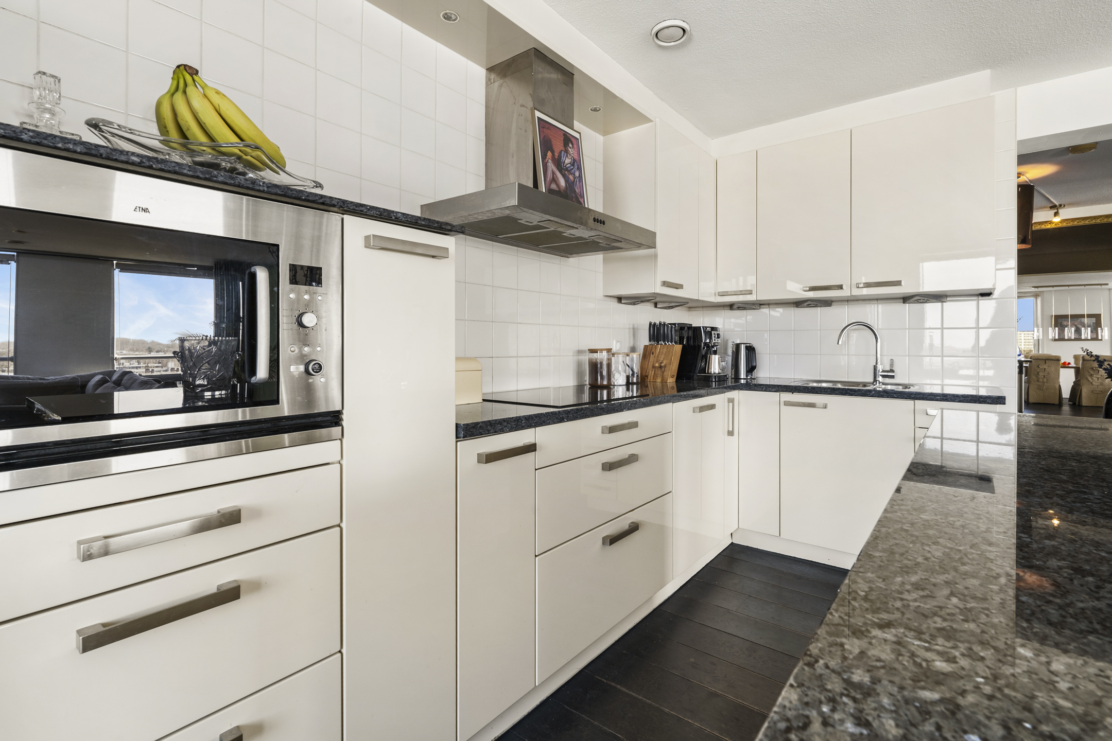 [Switch funda to English for English text]. Luxe driekamer hoekappartement van 117 m² met vrij uitzicht over het water en de skyline van de Zuidas, twee slaapkamers, luxe woonkeuken met kookeiland en eventueel een eigen parkeerplaats. Het appartement is gelegen op de zevende verdieping van het markante in 2004 opgeleverde appartementencomplex Gelderhof.