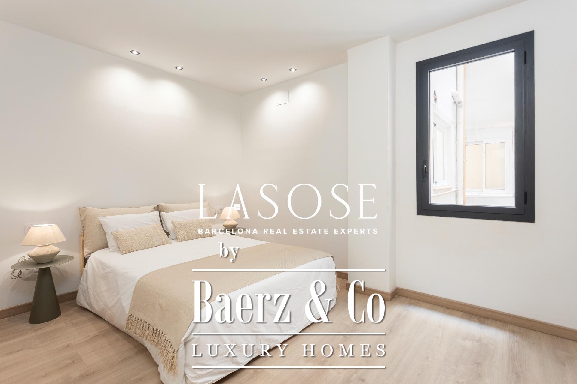 Er zijn drie slaapkamers: een mastersuite met toegang tot het terras, ingebouwde kasten en een eigen badkamer, aangevuld met een dubbele en een eenpersoonskamer. Beide badkamers zijn voorzien van geïntegreerde kranen, LED-verlichting en porseleinen details. Voorzieningen zijn onder andere een ingebouwd Mitsubishi airconditioningsysteem, geavanceerde isolatie, een aparte wasruimte en een parkeerplaats in het gebouw geschikt voor een kleine auto of motor, wat onopvallend comfort biedt in het hart van Barcelona. Dit luxe appartement te koop in Barcelona belichaamt de balans tussen modern design en stedelijk wooncomfort.