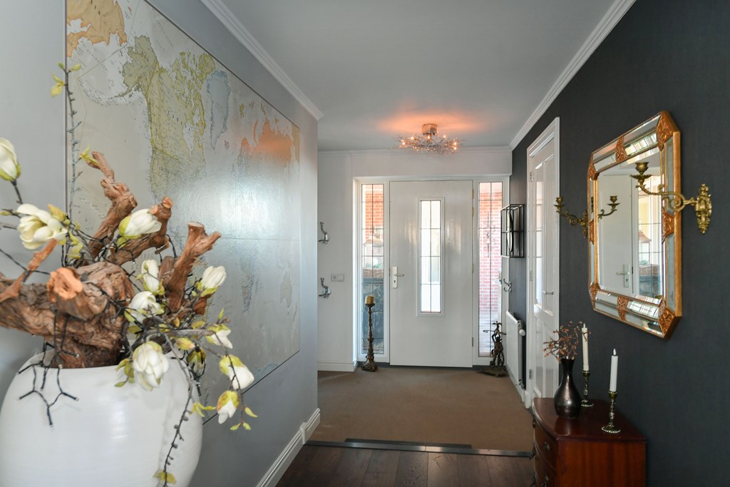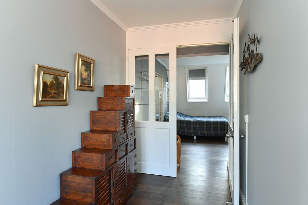 Via de overdekte entree aan de buitenzijde kom je binnen in de royale hal, die direct de hoogwaardige afwerking en het gevoel van ruimte verraadt dat dit penthouse kenmerkt.