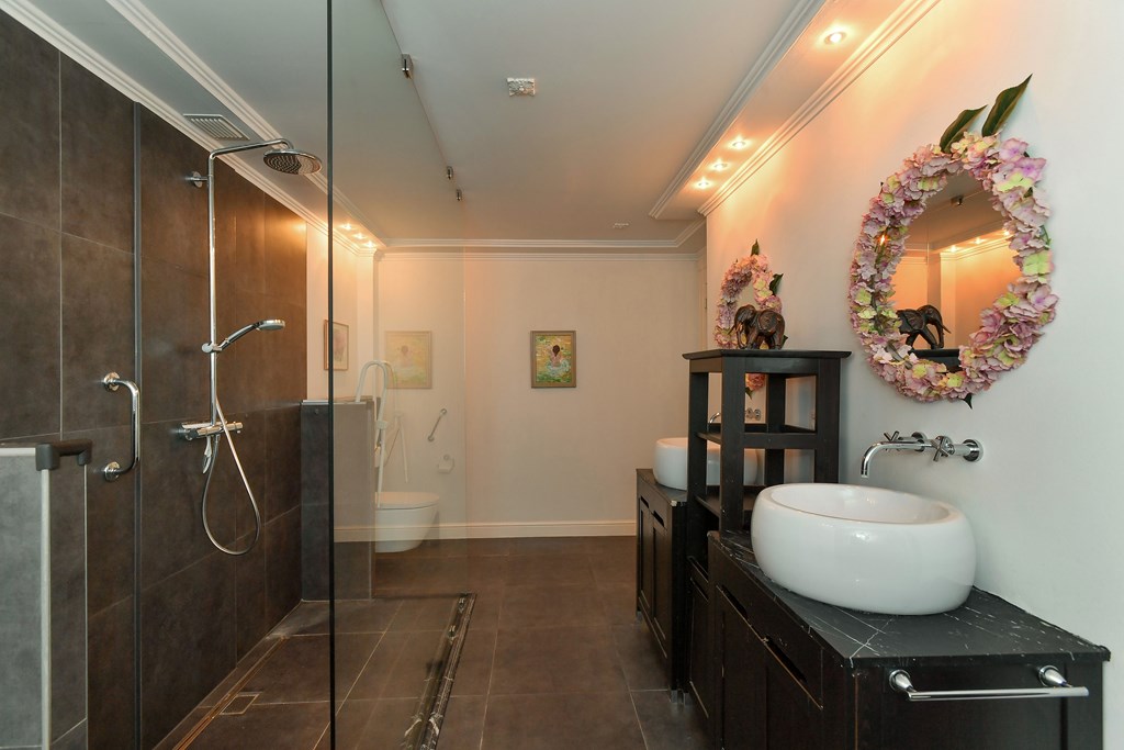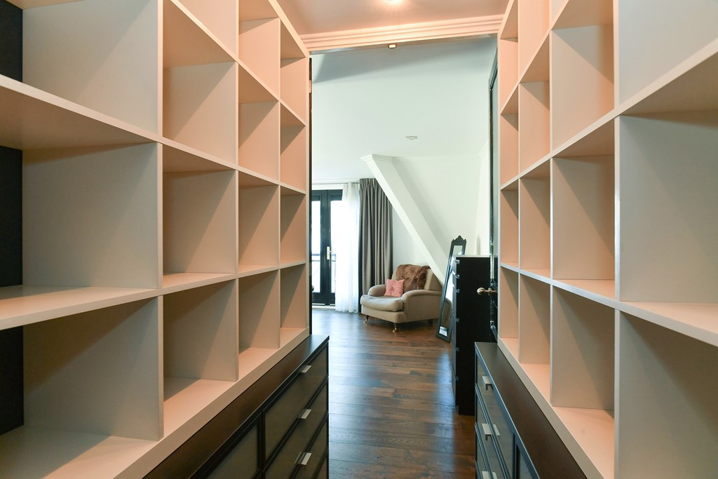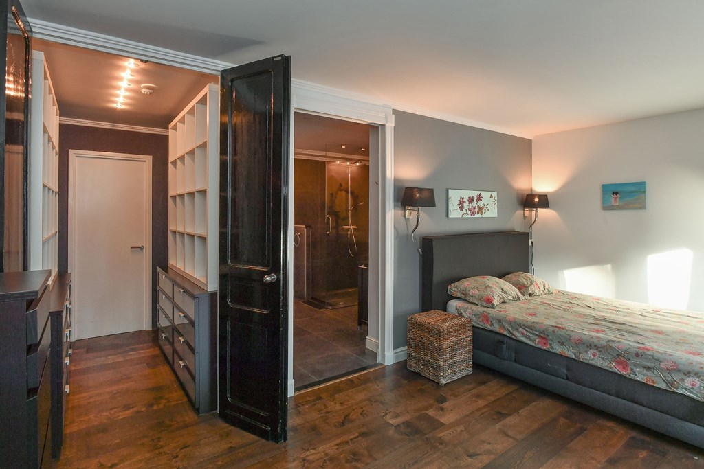 Het penthouse beschikt over een royale slaapkamer en een luxe, moderne badkamer met inloopdouche, wastafelmeubel met dubbele wastafel, volledig automatisch toilet én de mogelijkheid voor een ligbad. De ouderslaapkamer is voorzien van een aangrenzende kleedruimte en een charmant Frans balkon. Beide slaapkamers hebben directe toegang tot de badkamer en zijn ontworpen met oog voor comfort en privacy.