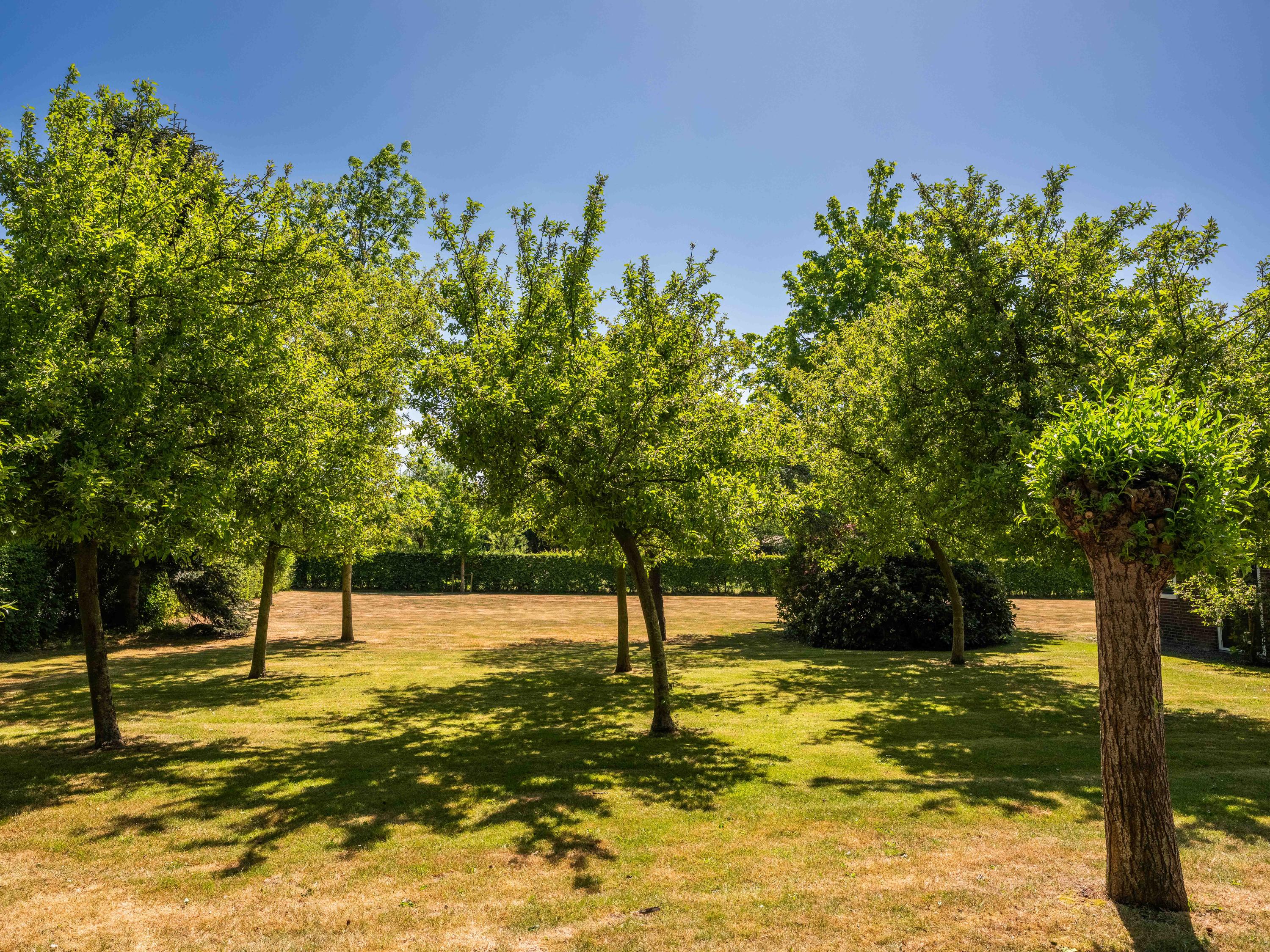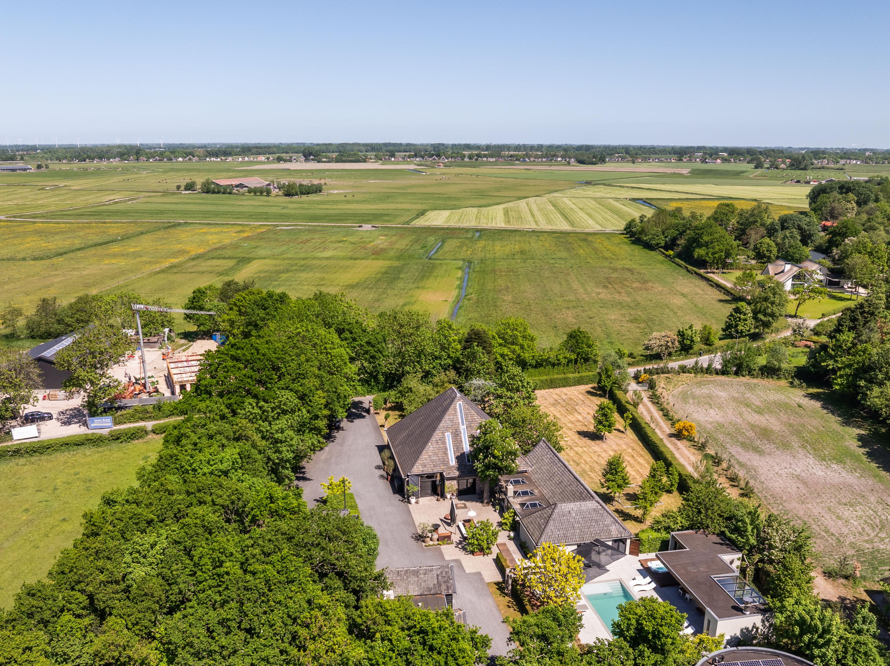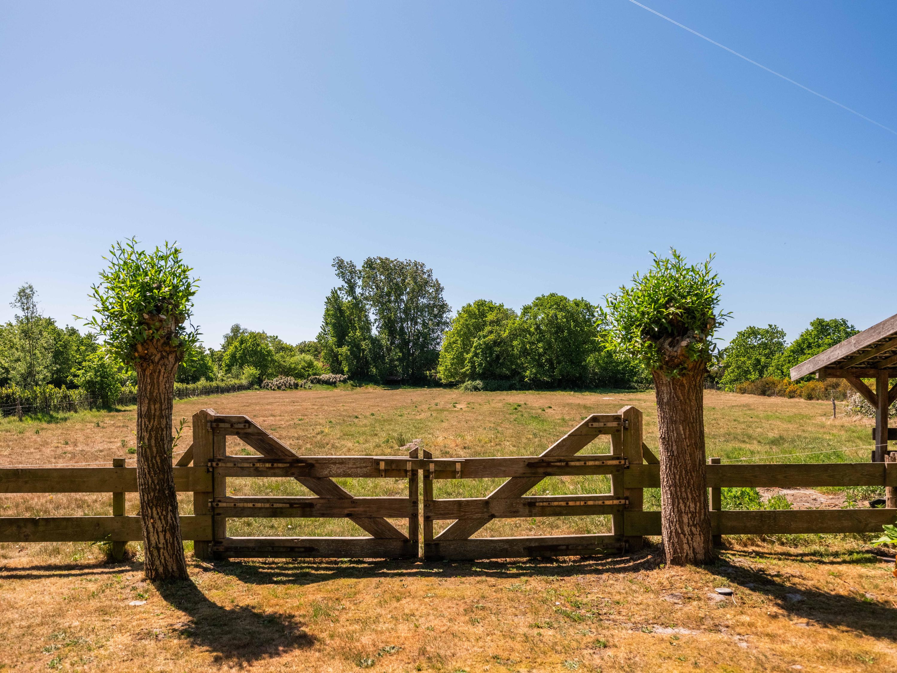 Aan de achterzijde van deze ruime kavel een eigen grote weide met schuilstal. Ideaal om bijvoorbeeld paarden vrij te kunnen laten lopen.