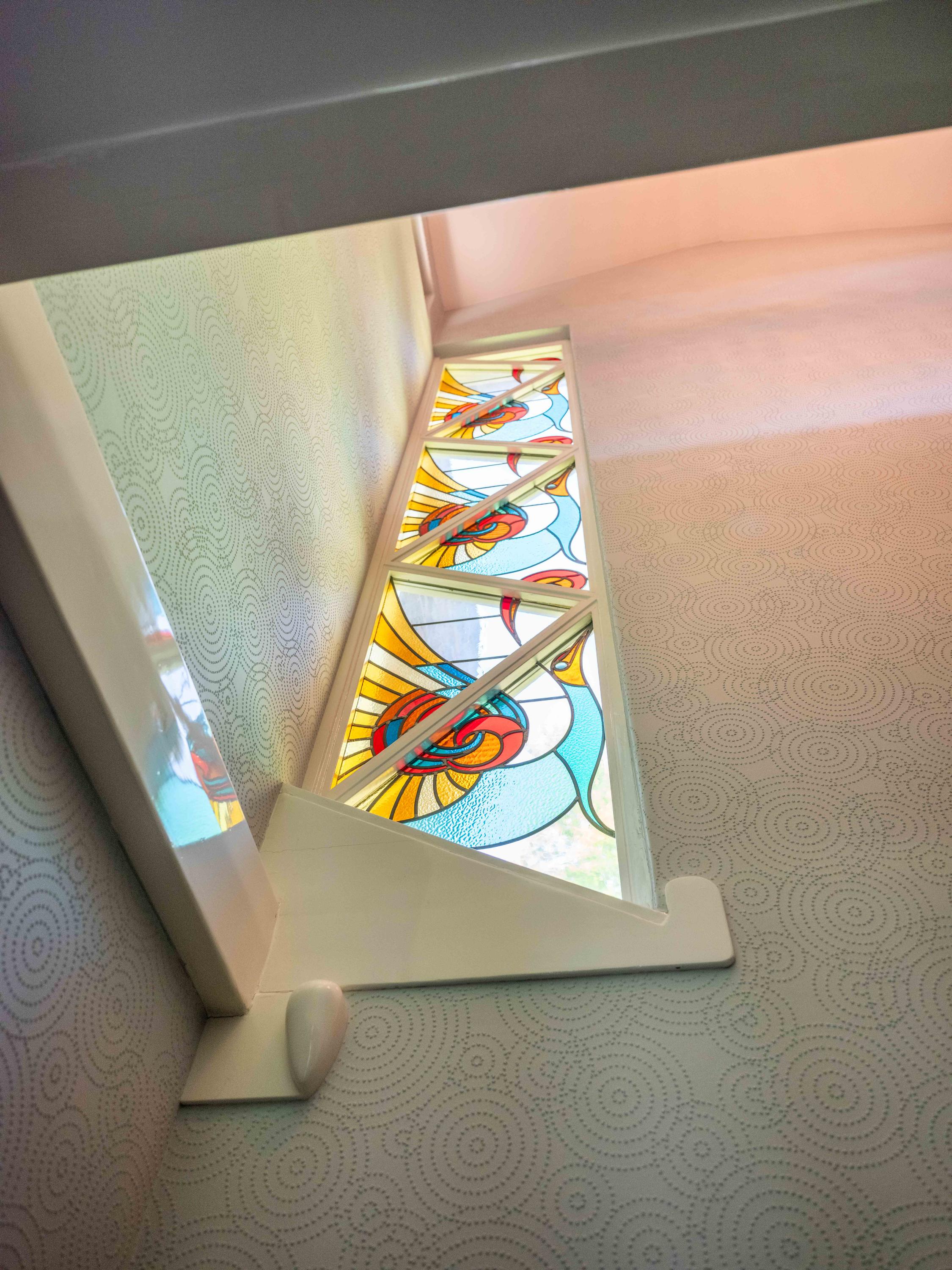 Via de trap met Amsterdamse School ornamenten en prachtig glas-in-lood raampartijen komen we op de 1e verdieping. Hier zijn 3 ruime slaapkamers gelegen waarvan de ouderslaapkamer met gashaard, inloopkast en een balkon met uitzicht op de groene tuin en de prachtige bomen. Ook op de overloop gelegen, enkele treden lager, een separaat toilet en een ruime badkamer met ligbad, douche, brede wastafel en een ruimte voor de wasmachine en droger.