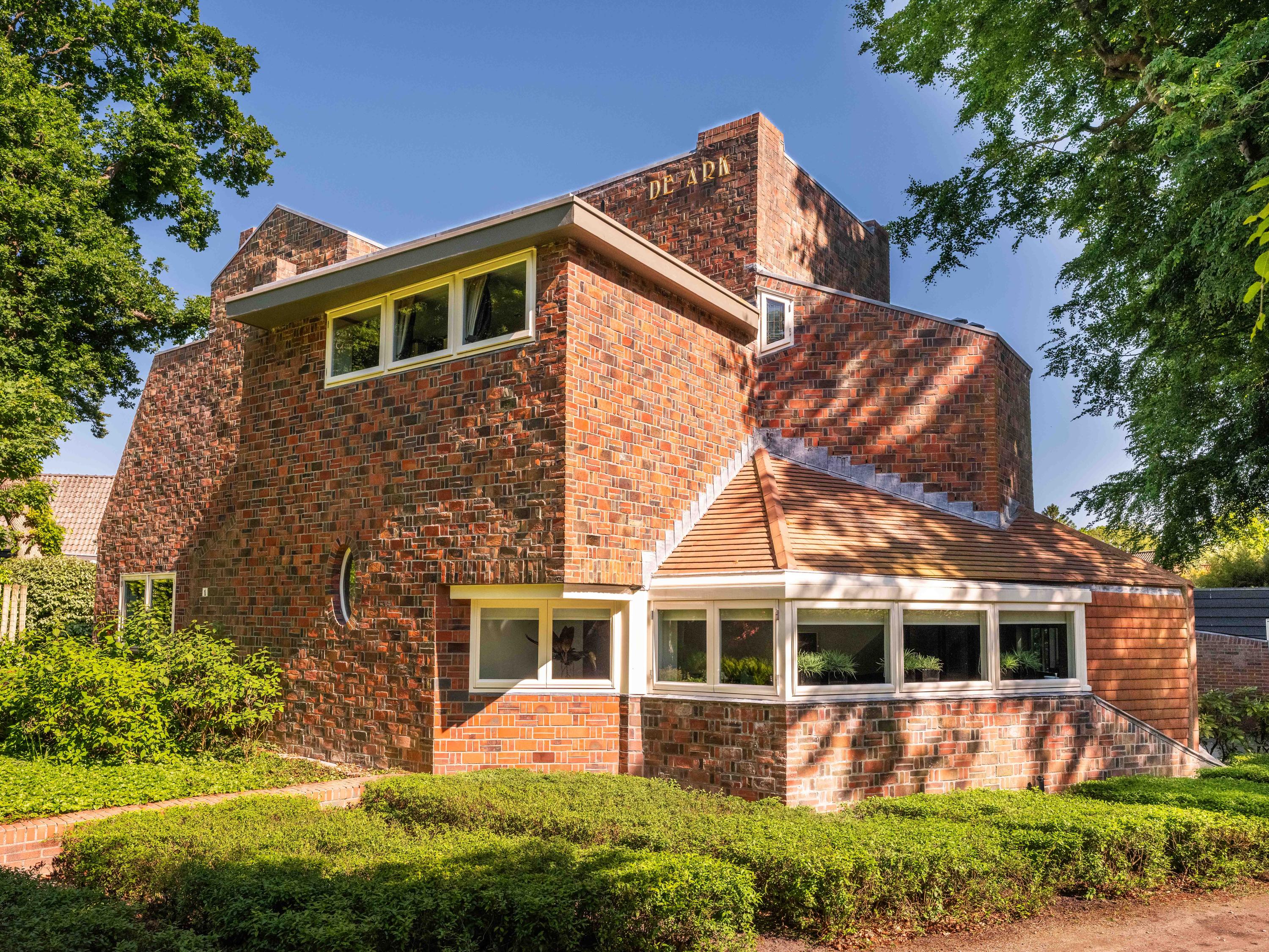 De villa en het bijhuisje zijn beiden ontworpen door architect J.F. Staal rond 1917 en voorzien van prachtig complex metselwerk, rode bakstenen, zwart gepotdekselde delen. Binnen vallen gelijk diverse ornamenten, vormen, kleur- en materiaalgebruik op met o.a. Belgisch hardsteen, hout en prachtig glas-in-lood.