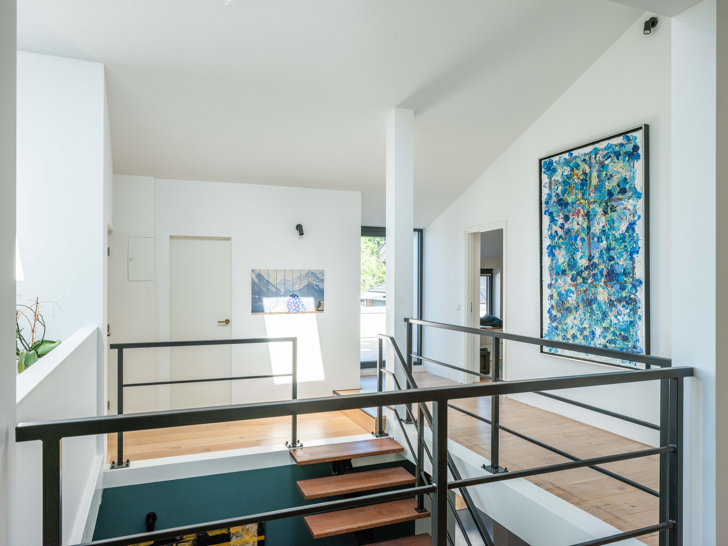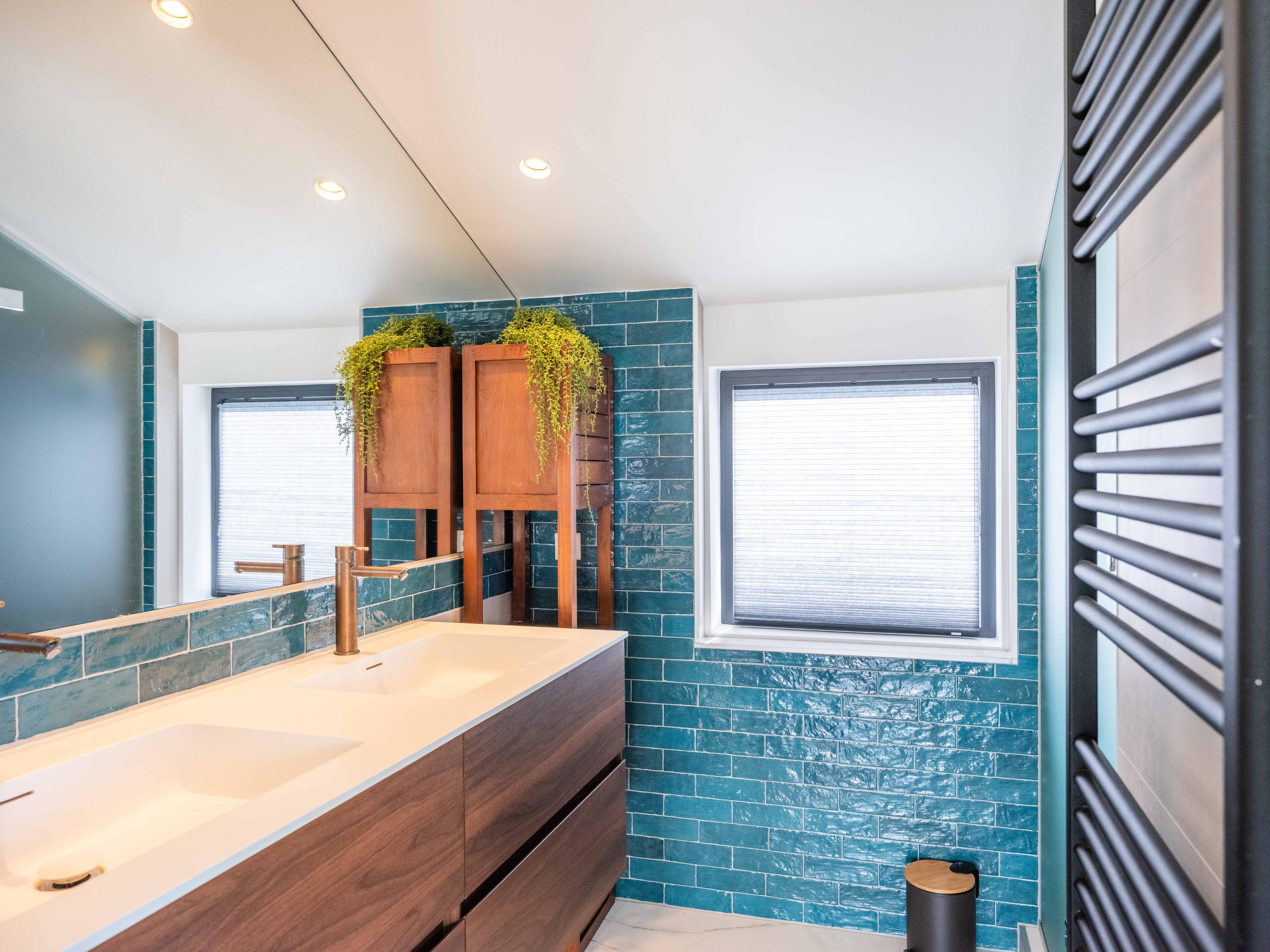 De bovenverdieping is het domein voor de kinderen en hobby's. Naast drie fijne slaapkamers, een tweede badkamer met grote inloopdouche, separaat toilet, en wasruimte, vindt u hier verrassende extra’s. Denk aan een inspirerende werkkamer met weids uitzicht, een serene yogaruimte en een speelse vide waar u zich terugtrekt met een goed boek.